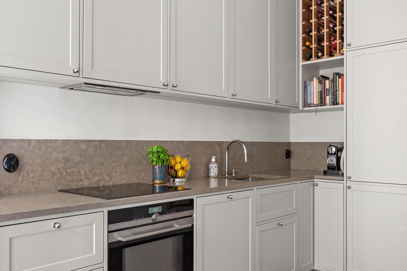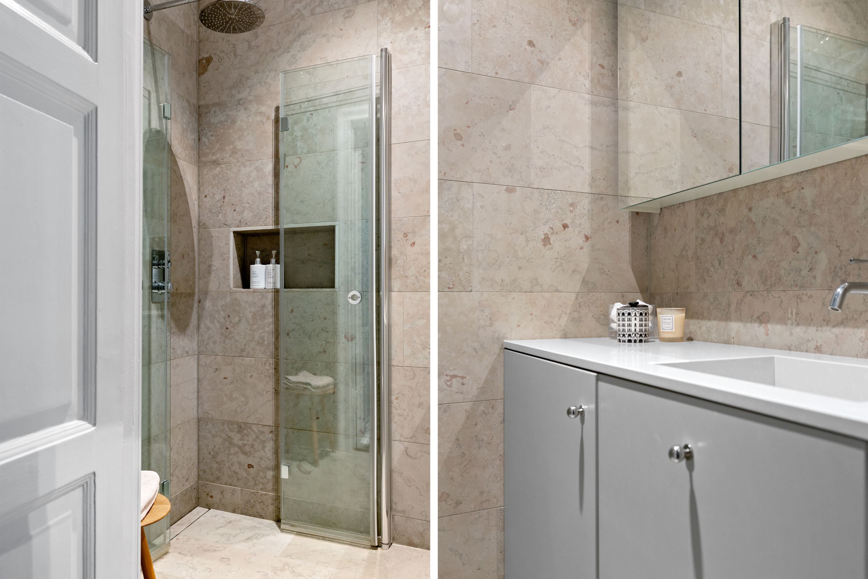 Bostaden har renoverats med känsla och stil där man har modern funktion med tidstypisk anda. Alla önskvärda tidstypiska attribut finns representerade så som en generös takhöjd om ca.3m, takrosett, stuckaturer, speglade dörrar, höga golvsocklar, trätiljor, fiskbensparkett, samt spröjsade fönster och djupa nischer.