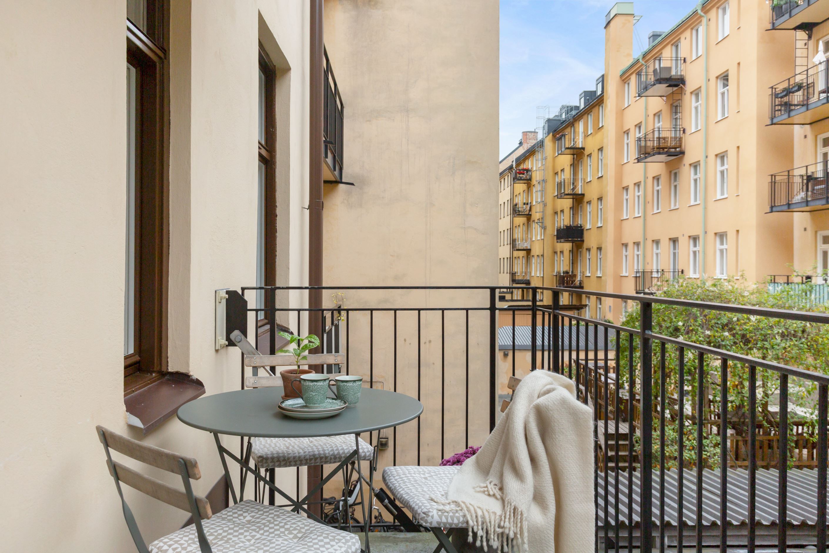 Belägen i en äkta bostadsrättsförening som äger marken. Läget är utmärkt i en lugn och rofylld del av Hagagatan med direkt närhet till service vid Vanadis och grönskande Hagaparken.