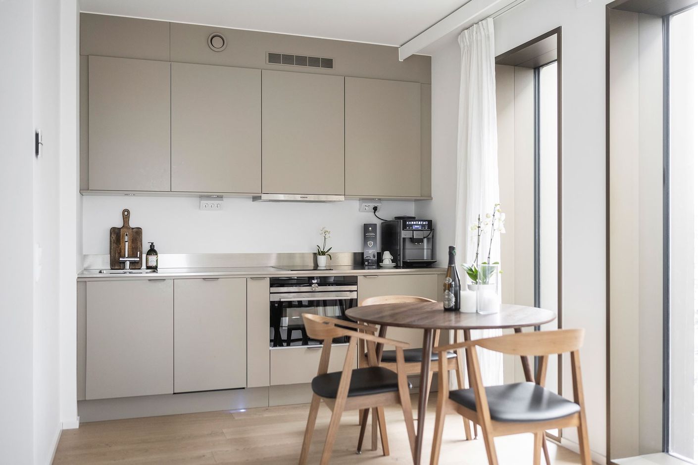 Köket är modernt och välutrustat med högkvalitativa vitvaror och generöst med förvaringsutrymme. Det erbjuder en perfekt plats för att tillaga läckra måltider samtidigt som du umgås med familj och vänner. Sovrummet är utrustad med en stilren industrivägg som skapar en oas av lugn och ro, perfekt för att återhämta sig efter en lång dag. Med tillräckligt med plats för en bekväm säng och förvaringsmöbler, erbjuder det en fristad från vardagens stress och bekymmer.
