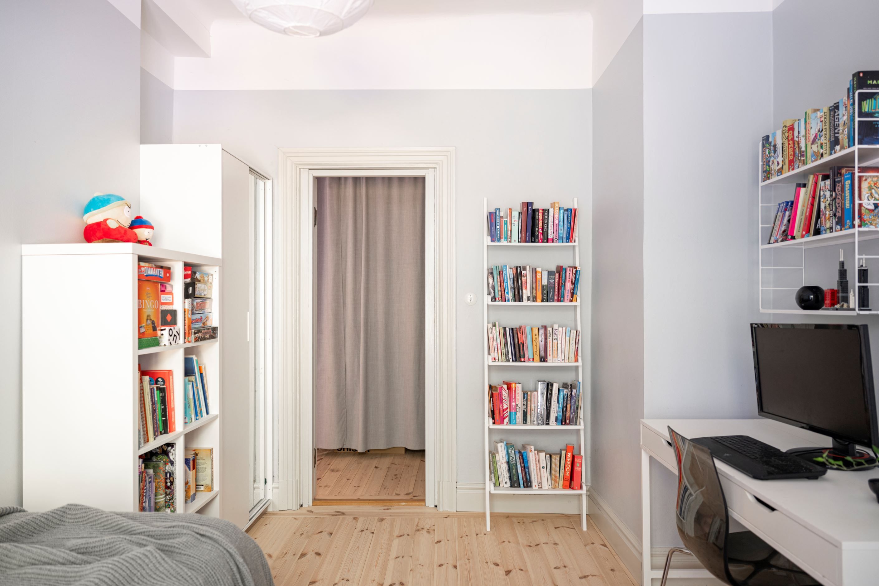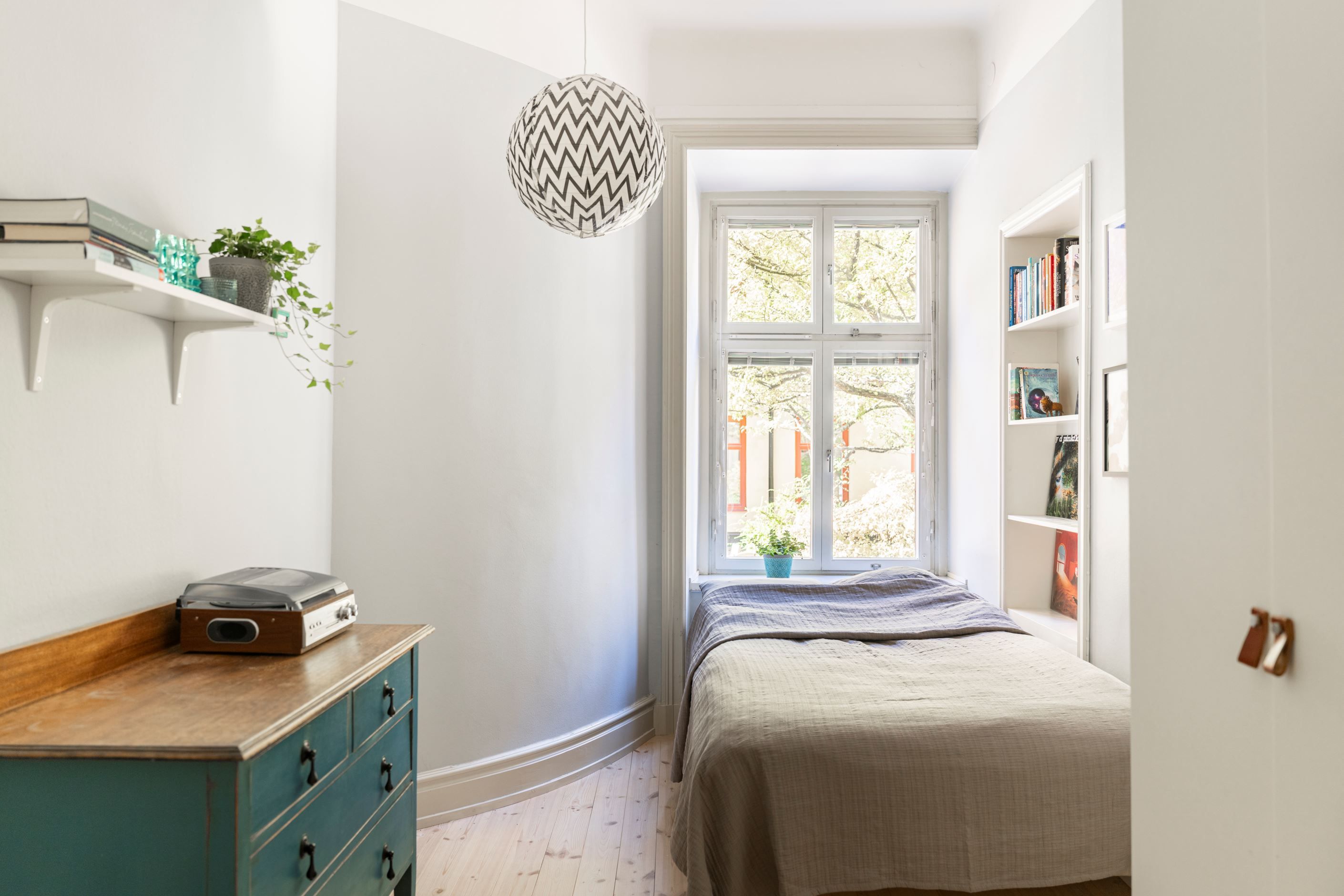 Denna vackra bostad bjuder på tidstypiska detaljer såsom stora fönster med djupa nischer, generös takhöjd och vackra trägolv. Samtliga fönster vetter mot en rofylld innergård vilket skapar en harmonisk och privat atmosfär.