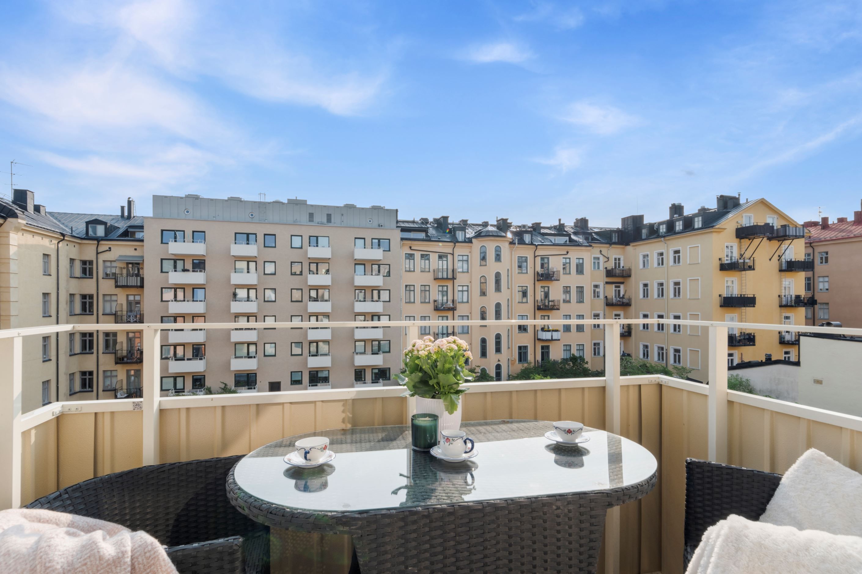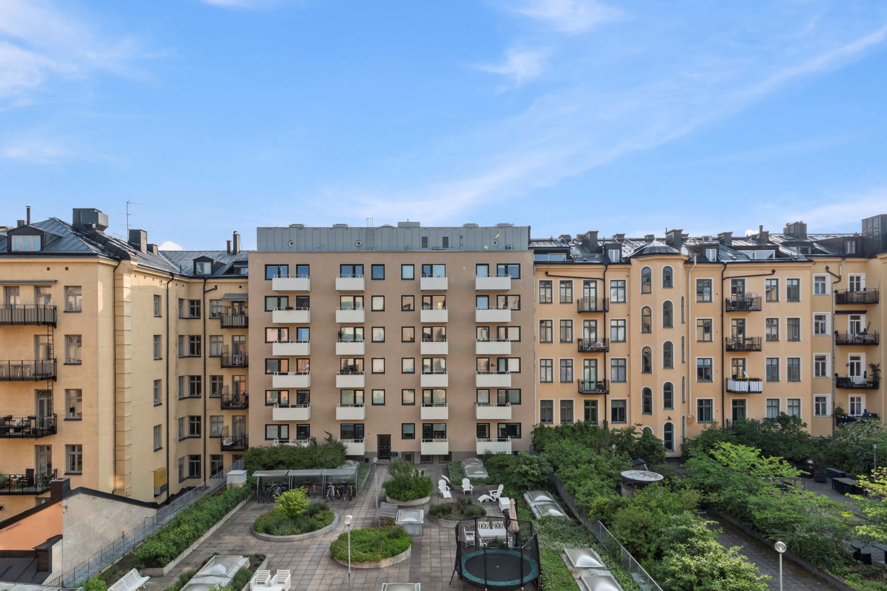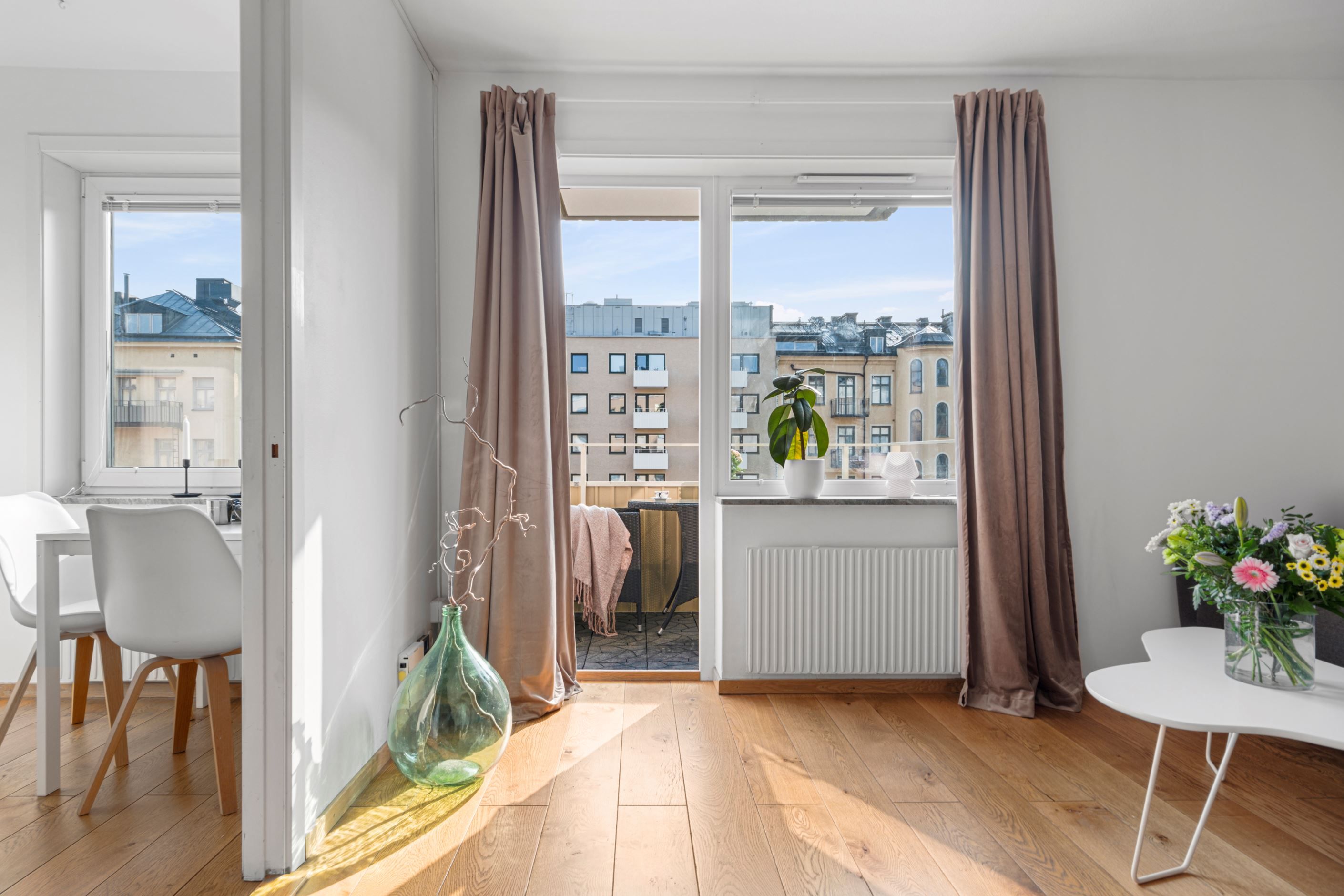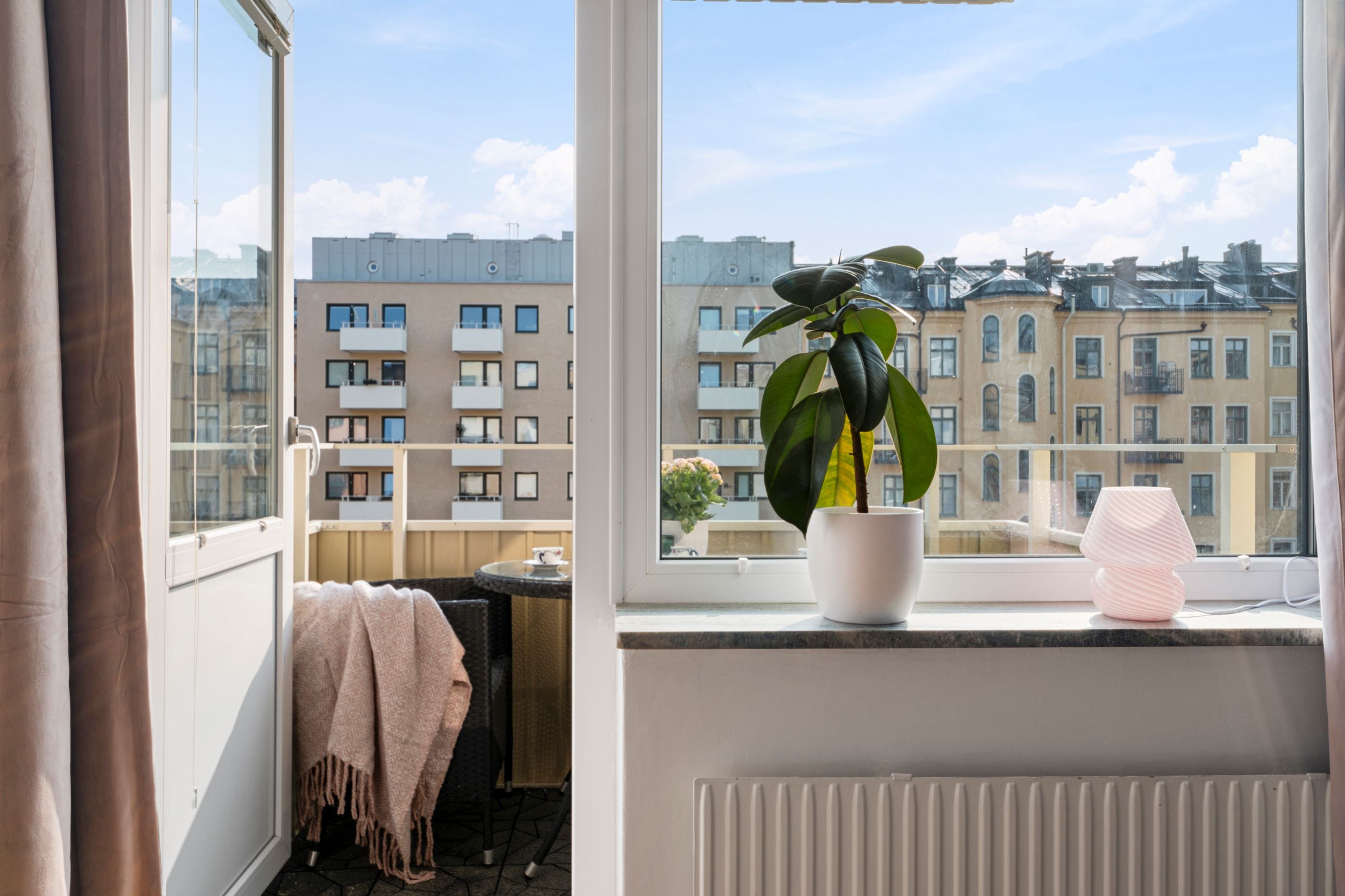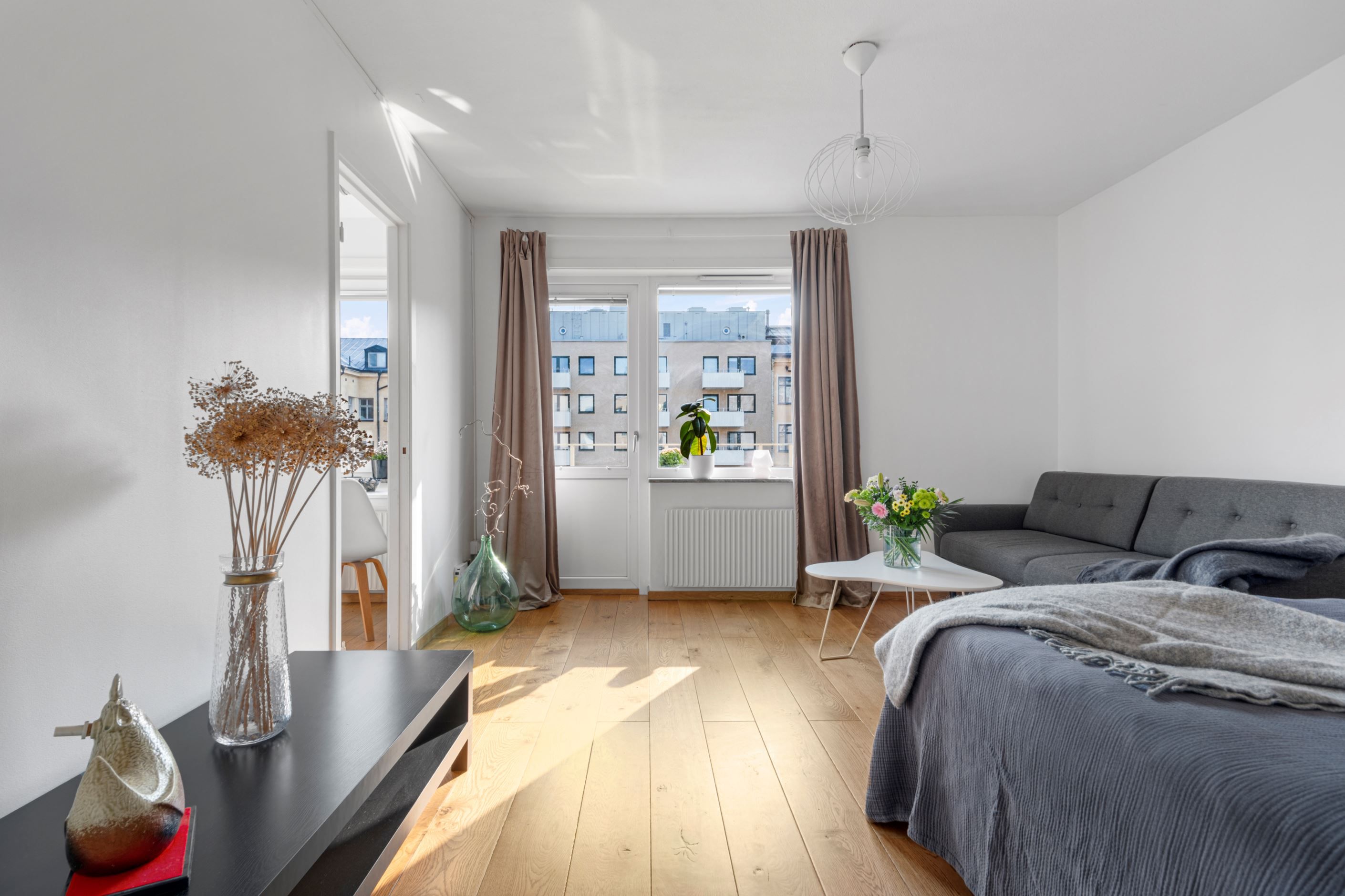 På fjärde våningen i huset hittar du denna välplanerade bostad om 29 kvm med stor potential. Tack vare den smarta planlösningen finns möjlighet att omvandla lägenheten till en effektiv minitvåa – se alternativ planritning. Här bor du med balkong i fritt läge, högt upp i huset med fin utsikt över innergårdar och bra ljusinsläpp. Helkaklat badrum med plats för tvättmaskin adderar till komforten. Ett utmärkt boende för dig som söker en stilren och yteffektiv lägenhet på en eftertraktad adress!