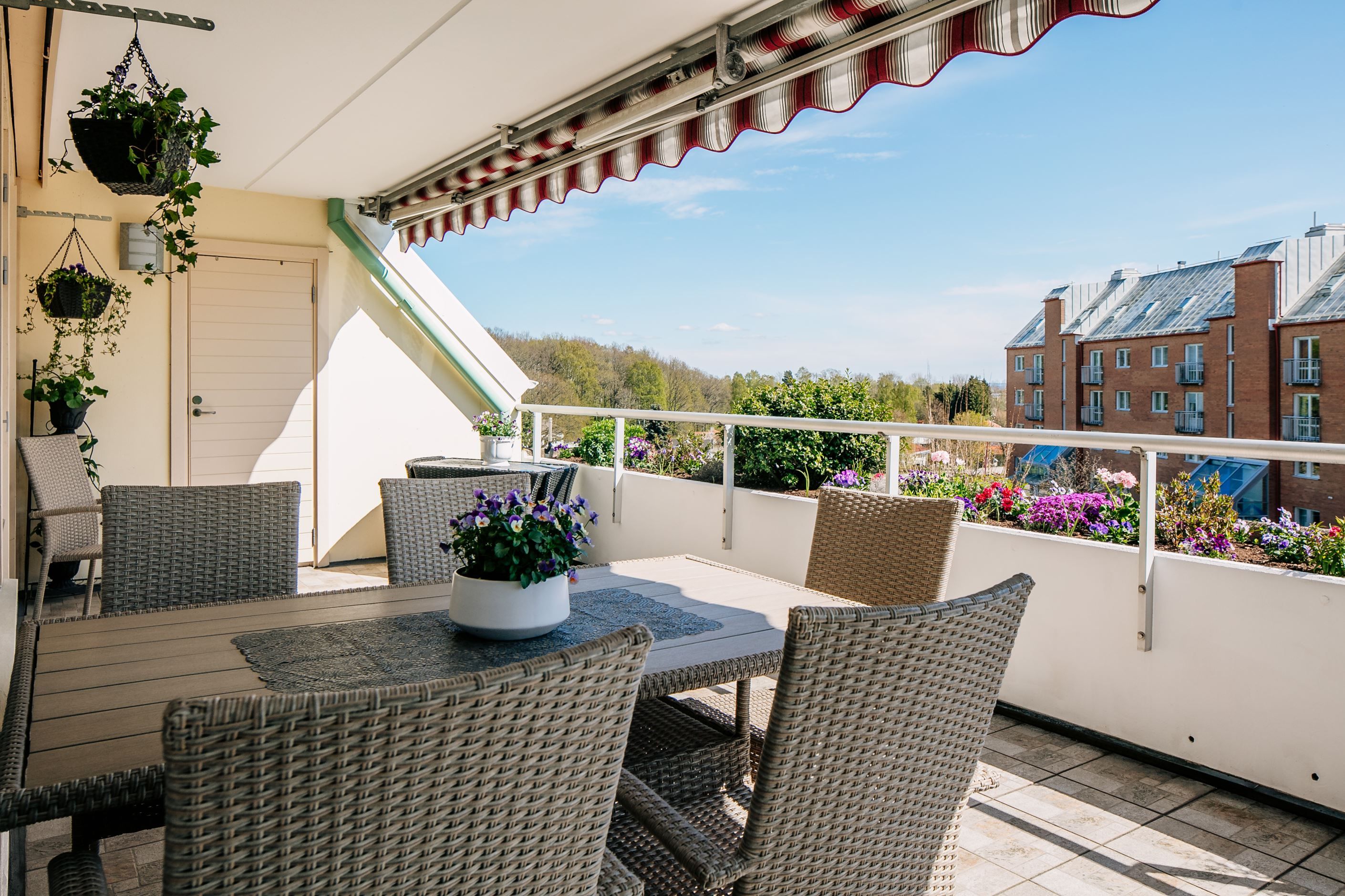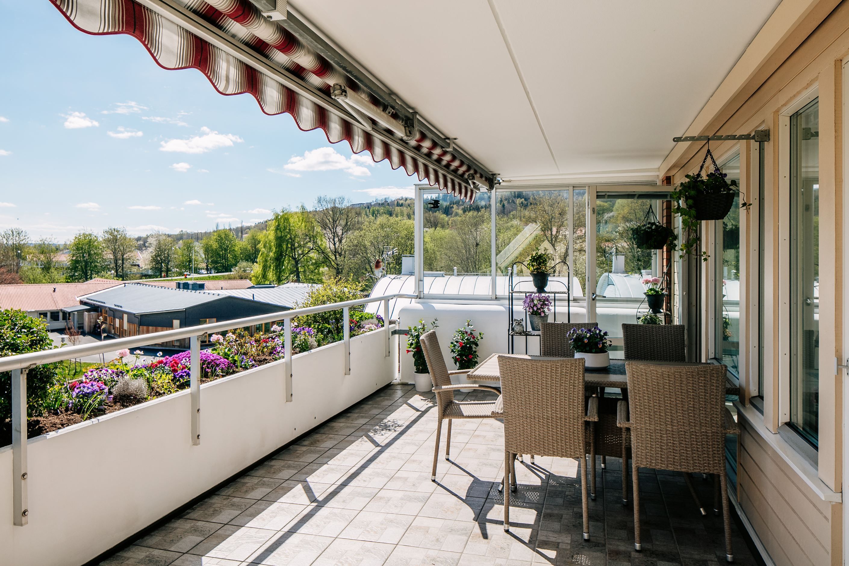 Stor och fin trea med gavelläge i populära terrasshusen i brf Dälderna. Lägenheten renoverades omfattande 2015 och är i ett mycket gott skick. Den stora terrassen ger härliga vyer mot centrum och berget. Det finns hiss i huset och den tar dig bekvämt ner till garaget. I avgiften ingår både garageplats och bredband. Varmt välkommen till visning av denna pärla!
