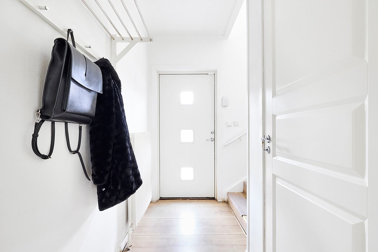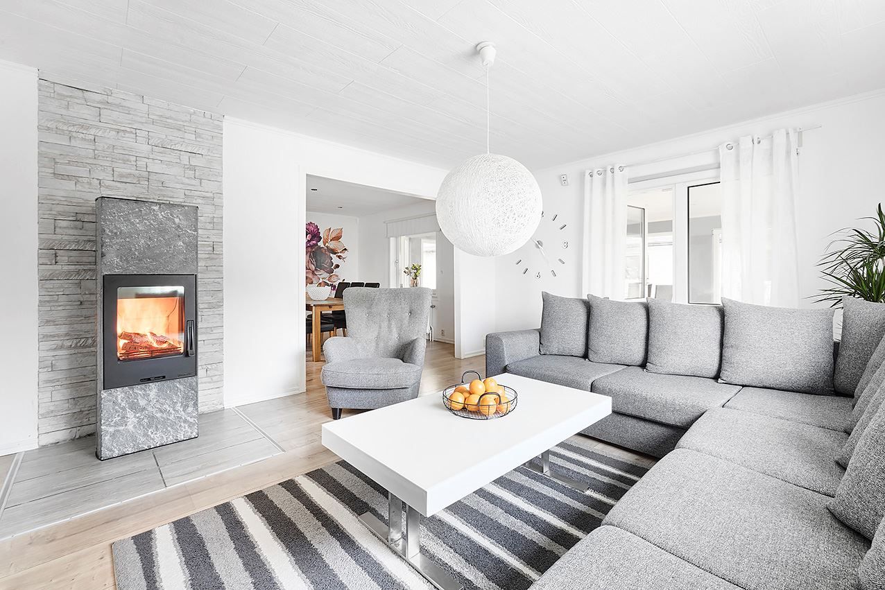 På entréplanet möts man av genomgående fräscha ytskikt som skapar en ljus och luftig känsla. Här finner man även en eldstad som bidrar till en hemtrevlig atmosfär. Det välutrustade köket bjuder in till kulinariska upplevelser och ger gott om utrymme för matlagning och samvaro.