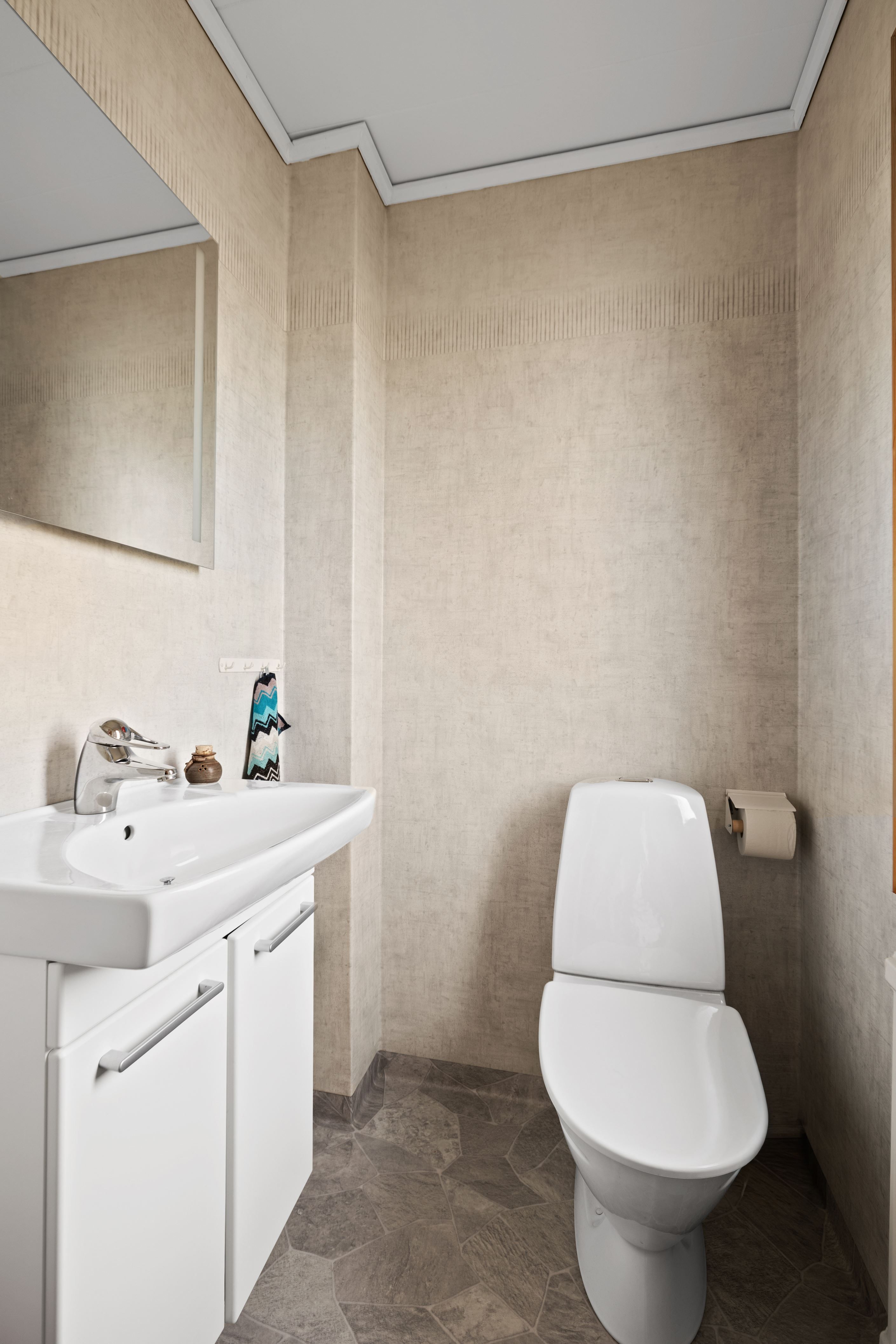 Källarplanet erbjuder gott om utrymme med både gästrum, gillestuga och stora förvaringsmöjligheter – perfekt för hobbyverksamhet, hemmakontor eller tonårsdel. Här finns även en öppen spis som skapar en mysig atmosfär, samt ett oinrett utrymme som är förberett för bastu för den som vill sätta sin egen prägel på hemmet.
