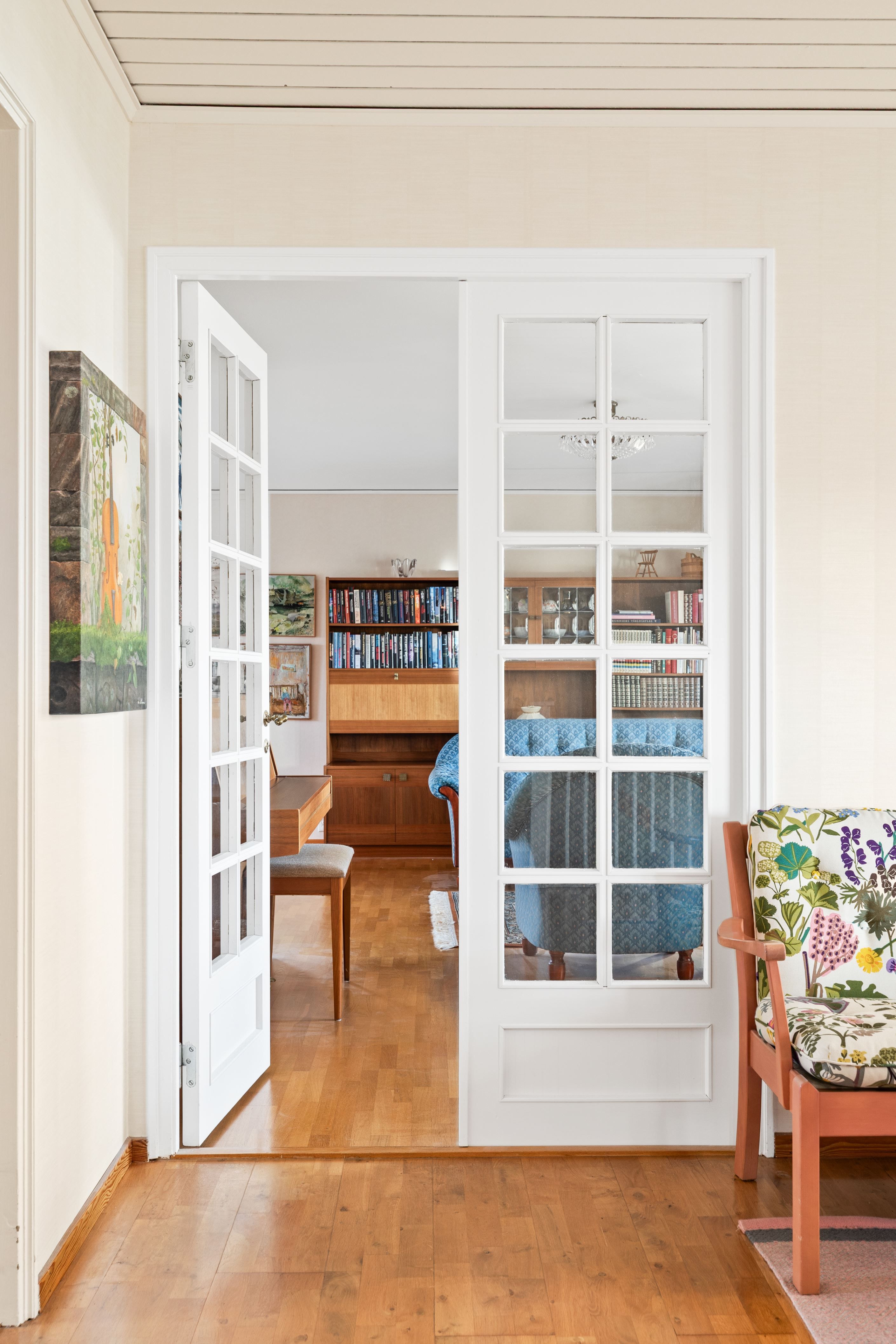 Husets hjärta utgörs av allrummet som har en öppen planlösning mot hallen – en social och välkomnande yta som binder samman hemmet. I anslutning finns även ett ljust vardagsrum med stora fönster som släpper in rikligt med dagsljus. Här finns gott om plats för både soffdel och matsalsdel, perfekt för familjeliv och umgänge. Från allrummet nås den inglasade altanen – en naturlig förlängning av hemmet där du kan njuta av alla årstider, oavsett väder.