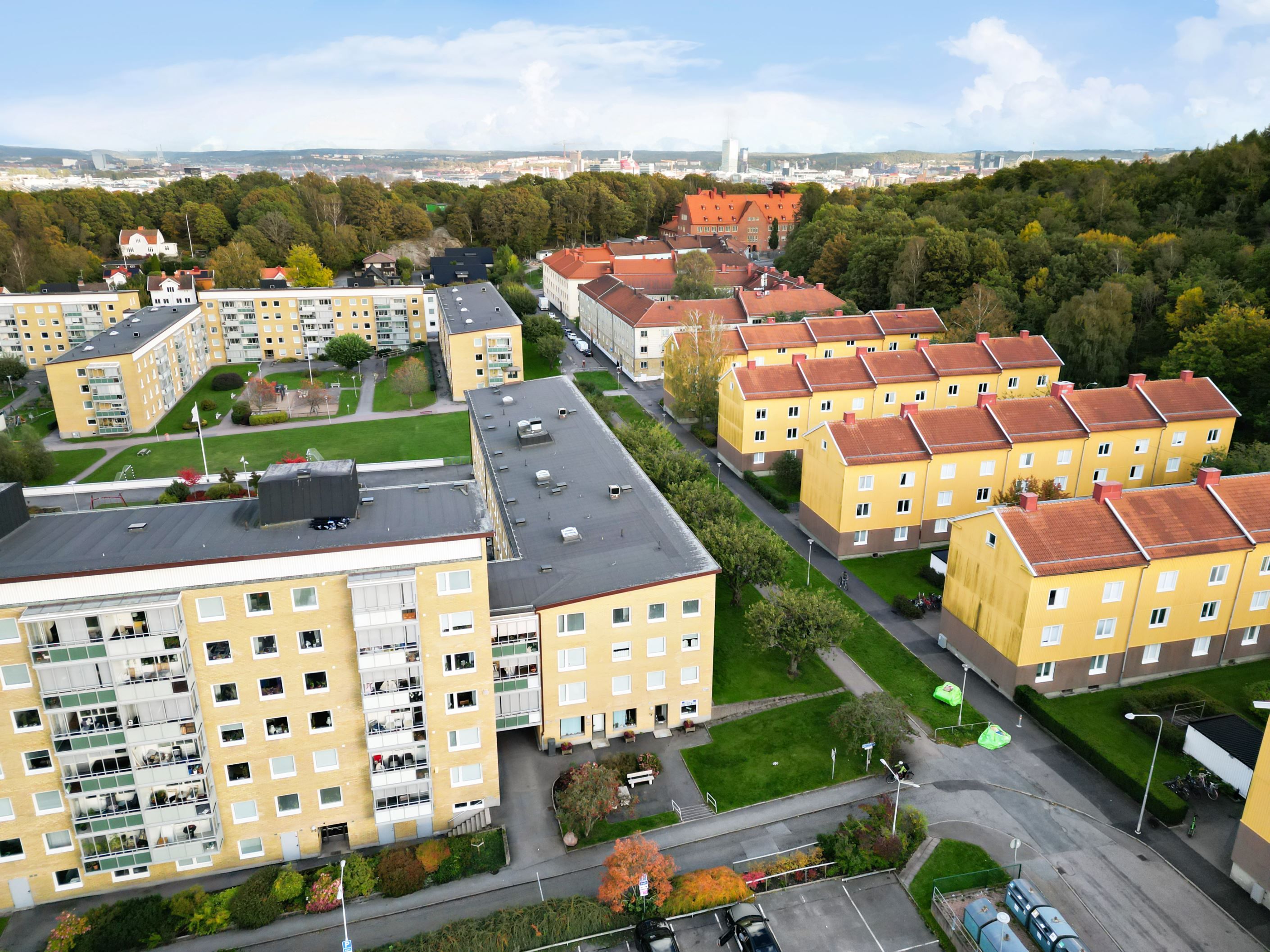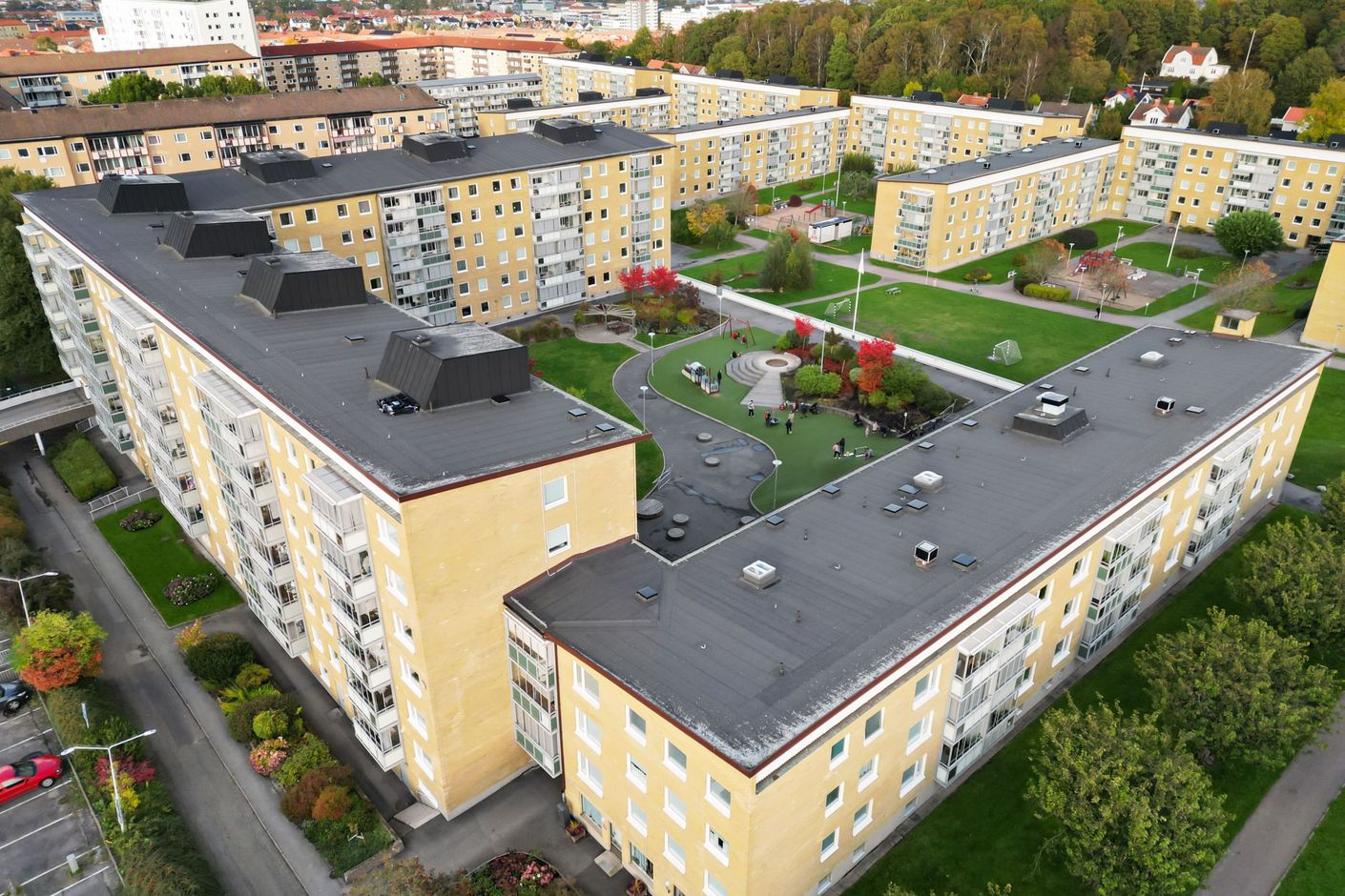 Nu har vi äran att presentera denna välplanerade gavellägenhet med fönster i alla väderstreck. Lägenhetens placering gör att ni har fri vy, och ingen insyn. Detta är en bostad som passar sig perfekt för hela familjen. Denna lägenhet är en av de största i föreningen där storleken är hela 121,1 kvm! Lägenheten är rymlig och erbjuder möblerbar hall, två helkaklade badrum, stort vardagsrum med charmig parkett och utgång till den inglasade balkongen i västerläge. Det finns idag fyra sovrum där ett av de delats av för att bli två sovrum som idag är barnrum. Köket ligger längst in i hörnet av bostaden här är det äldre med köket separat och matsalen intill. Om ni vill renovera köket går det att ta ner väggen för att göra ett stort kök. Både badrummen är renoverade sen föreningens stambyte och har dusch och badmöjlighet. Vardagsrummet är stort och flödar av ljus här ryms en stor soffa och matbord om så önskas. Härifrån når ni den inglasade balkongen i rakt västerläge. Garageplatsen som följer med lägenheten är nog den bästa, som enskild plats med inga bilar intill. Här bor ni i en stor och populär förening som erbjuder en mängd aktiviteter, gästlägenhet, boulebana, gym, pingisrum, flera lekplatser och garageplats även med el-platser. Det även ett rymligt förråd i källaren. För dig med gröna fingrar finns det en odlingsförening med pallkragar i området. Föreningen har fin ekonomi och har gjort de flesta av sina stora renoveringar, senast byttes alla fönster i bostaden. Närhet till skola, förskola, shopping på Backaplan och bra kommunikationer in till stan.