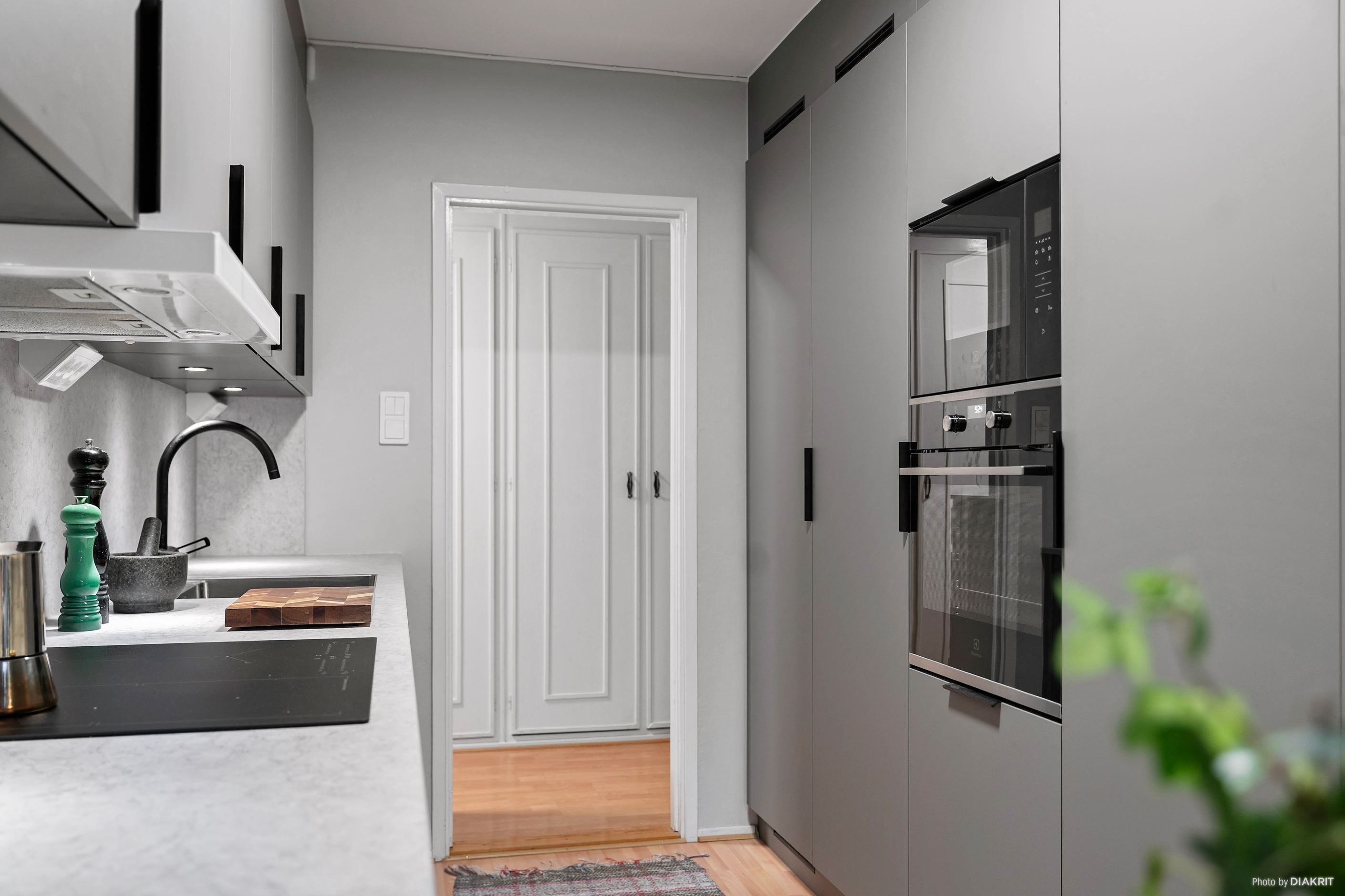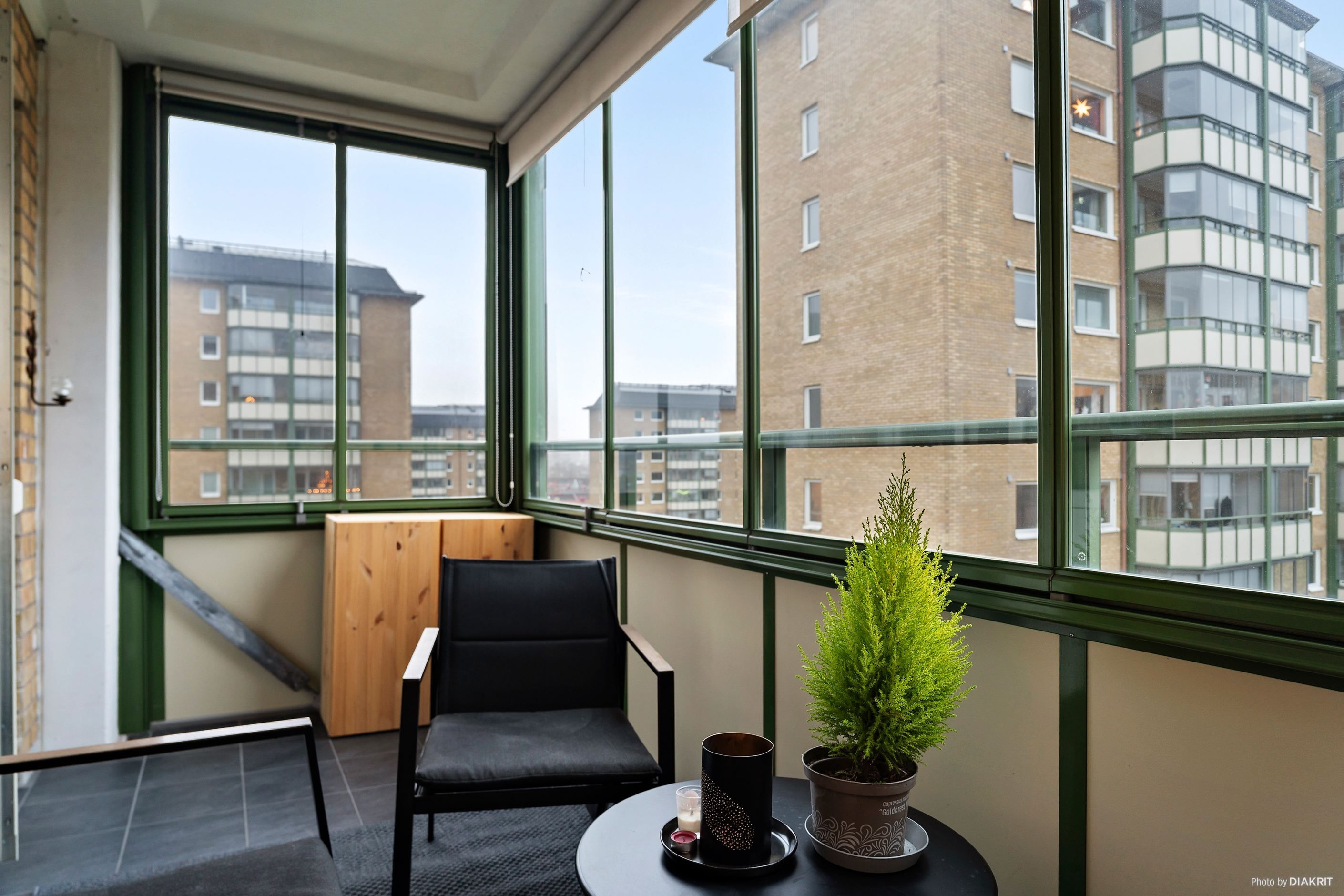 Här erbjuds en trea med härlig vy och inglasad balkong! Lägenheten om 66 kvadratmeter fördelat på 3 rum och kök erbjuder ett renoverat kök i stilren modernt färgsättning. Här är det nya maskiner genomgående och här finns allt ni behöver för att njuta av matlagningen varje dag. Köket erbjuder även gott om förvaring och avlastningsytor, här finns plats för ett matbord intill fönstret. Badrummet finner ni med ingång från hallen, här är självklart helkaklat och det finns plats för en toppmatad tvättmaskin om så önskas. Vardagsrummet är rymligt och erbjuder på ett enkelt sätt plats för både soffa och matbord. Här blir det mycket ljus tack vare att lägenheten ligger i sydostläge. Det största sovrummet ligger med ingång från vardagsrummet, här finner ni även utgång till den inglasade balkongen med fri grönskande utsikt. Här bor ni lugnt och skönt men otroligt centralt med endast ett par minuter till kommunikationer, caféer, restauranger och in till city. Föreningen erbjuder gästlägenhet, lokal att hyra, odlingslotter och mycket mer.