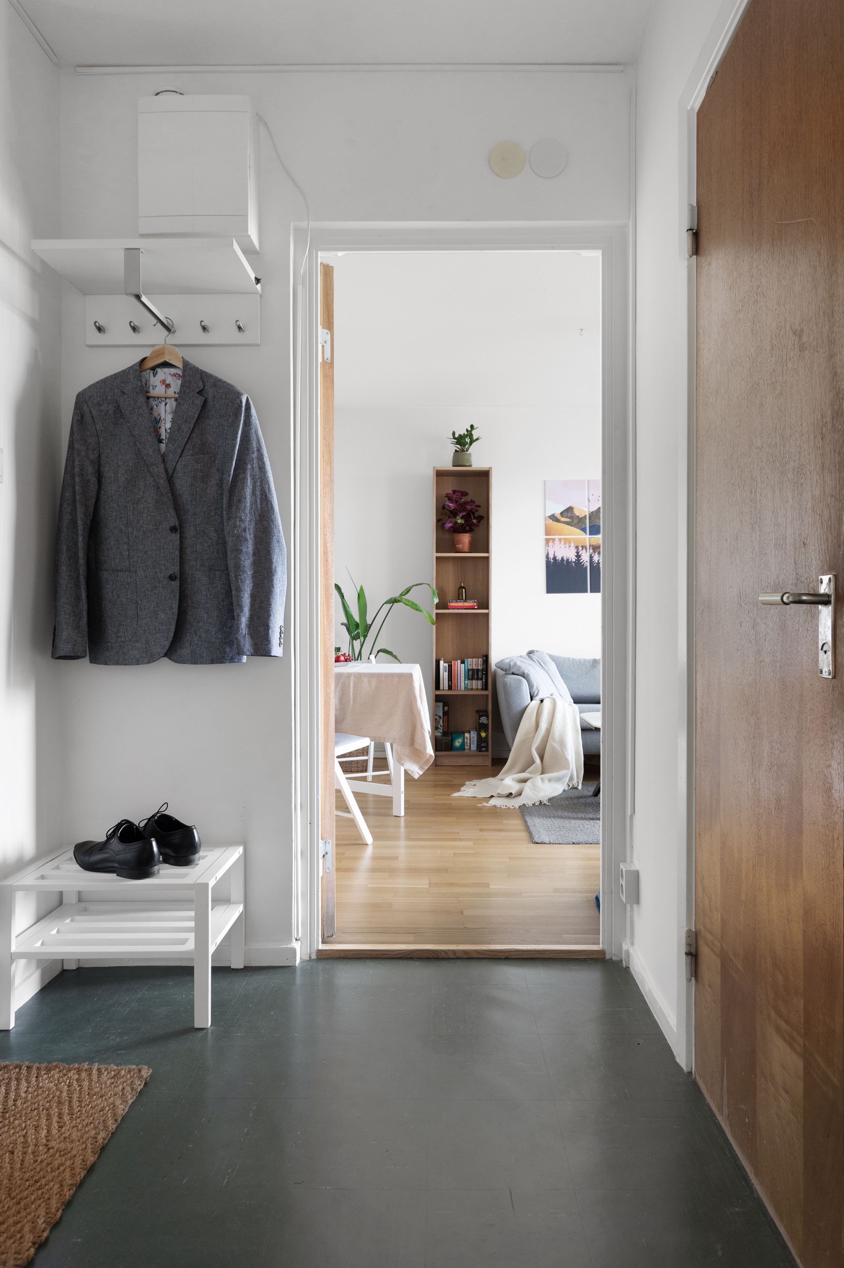 Förvaring är genomtänkt – i hallen finns en stor klädkammare som löser mycket av vardagens behov.