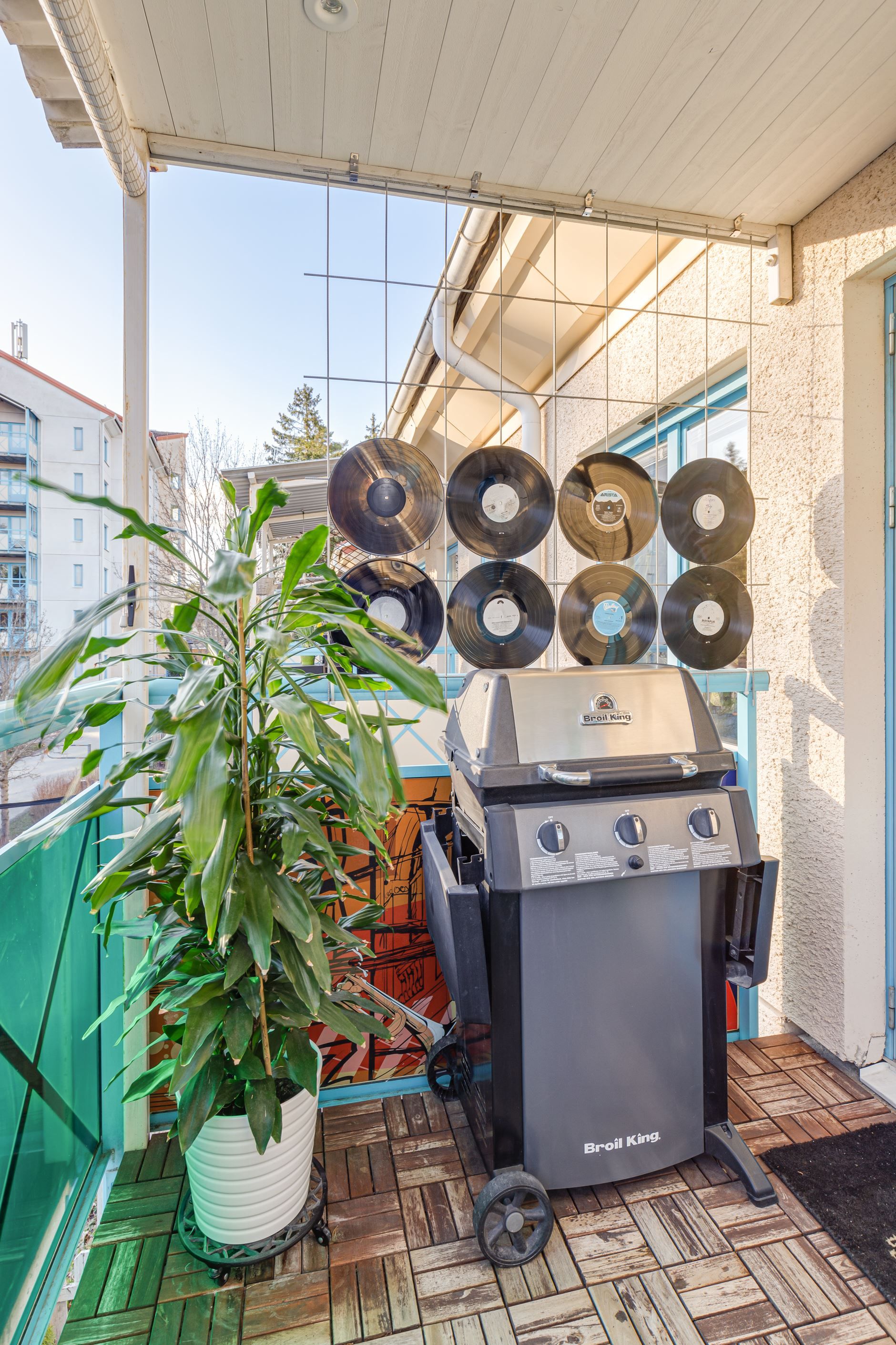 Äntligen finner ni denna välplanerade och fint rustade trea ute på bostadsmarknaden. Bostaden fördelar sig på en rymlig hall med god förvaring i fina garderober och förråd, renoverat kök från Marbodal/electrolux med matplats för 6-8 personer, två fina sovrum, helkaklat badrum med tvättmaskin och torktumlare samt ett rymligt och fint vardagsrum. Köket erbjuder såväl diskmaskin som helstor kyl och frys, ugn, mikro och förvaring i över- och underskåp. Vardagsrummet erbjuder en hemmabioanläggning perfekt för er som är filmälskare samt ett fint sängskåp som erbjuder en extra sängplats när och om ni inte vill nyttja föreningens övernattningsrum när ni blir fler. Från vardagsrummet når ni bostadens balkong med kvälls- och eftermiddagssol. Här får ni plats med utemöbler, växter och annat tillbehör efter egen tycke och smak, perfekt för att avnjuta god mat och dryck med nära och kära. På balkongens räckväggar sitter nu även högupplösta, musikinspirerade dekalbilder som skapar en trevlig känsla samtidigt som de även skapar en mer insynsskyddad miljö.