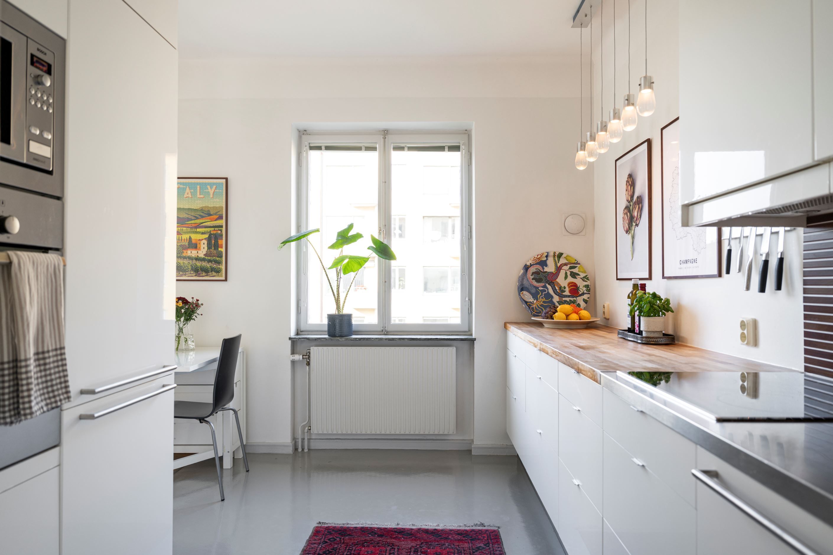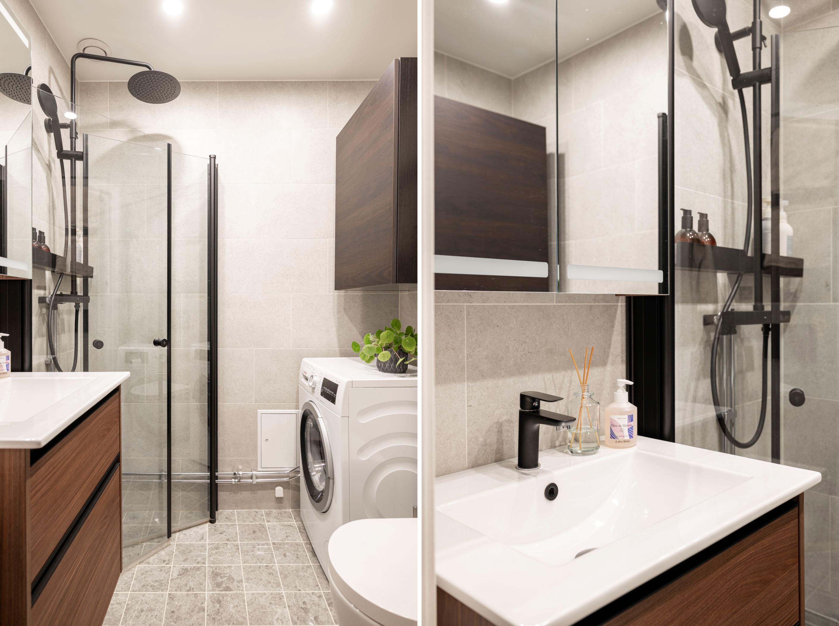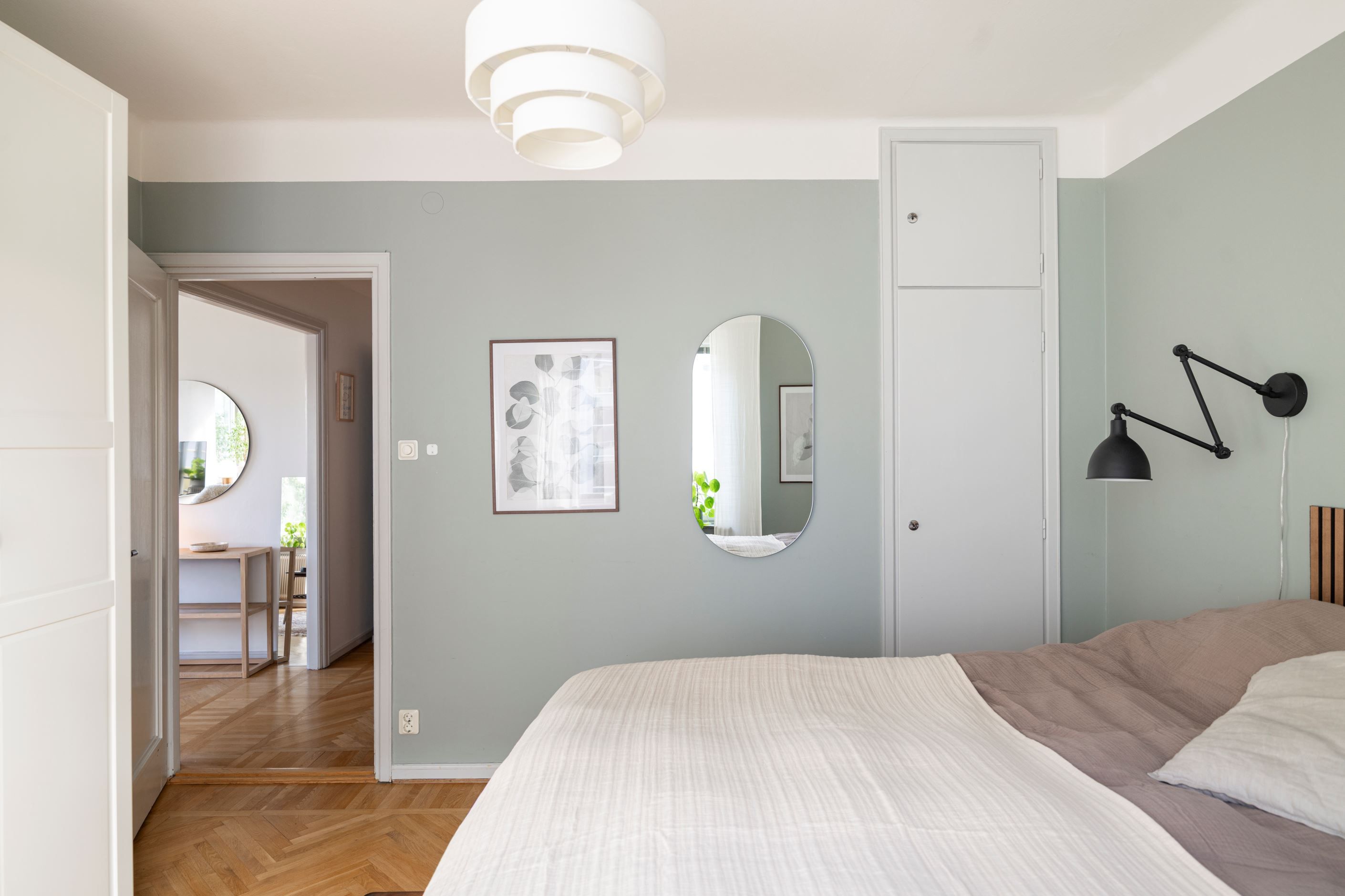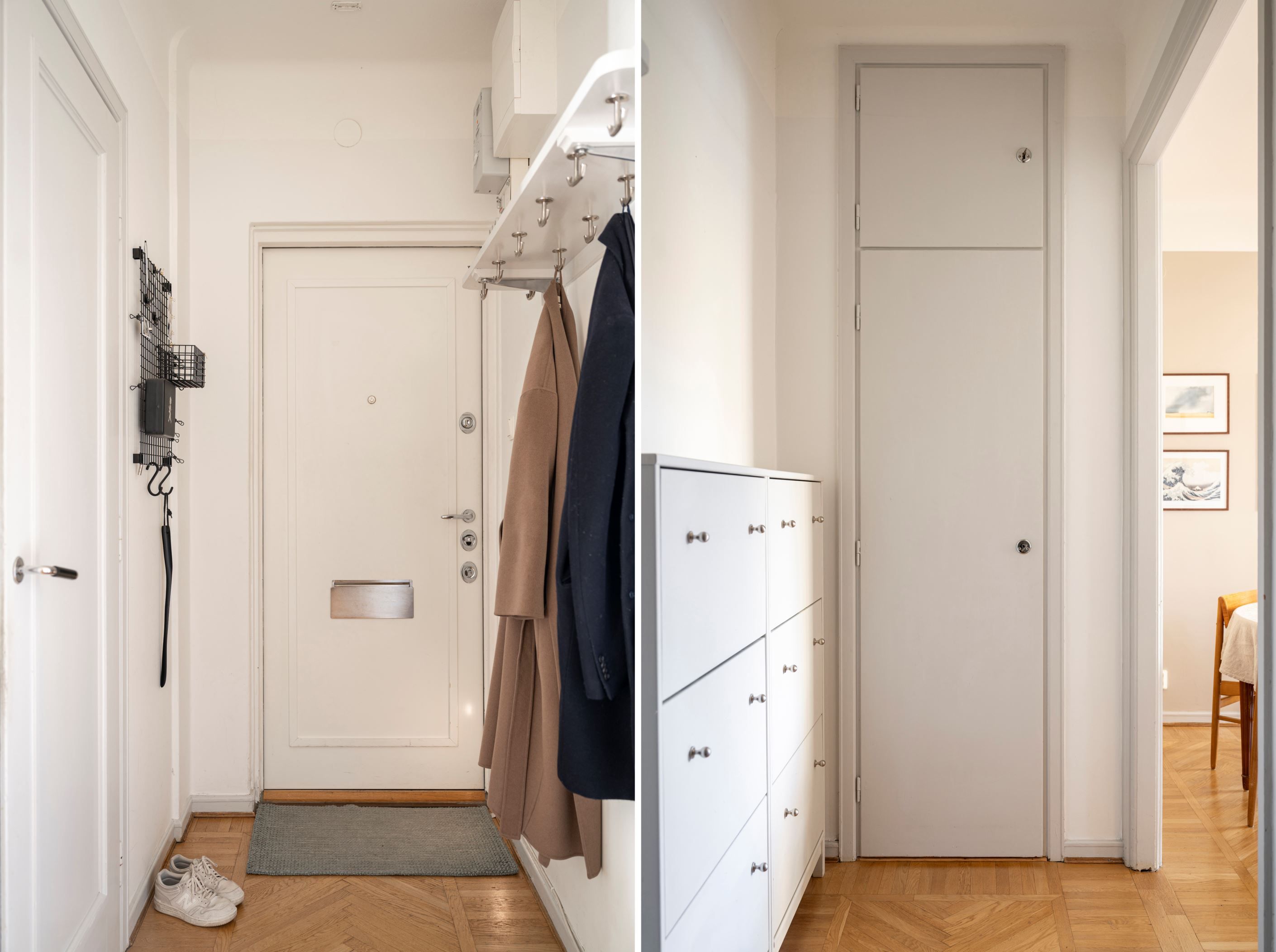 Invid vardagsrum och kök nås ett separat matrum som med enkelhet rymmer ett större matbord – perfekt för middagar för stora sällskap. Det nyrenoverade badrummet är smakfullt inrett i stilrena materialval och utrustat med dusch, wc, handfatskommod, tvättmaskin och smart förvaring. Hela bostaden har goda förvaringsmöjligheter tack vare två inbyggda garderober samt en garderobsvägg i sovrummet.