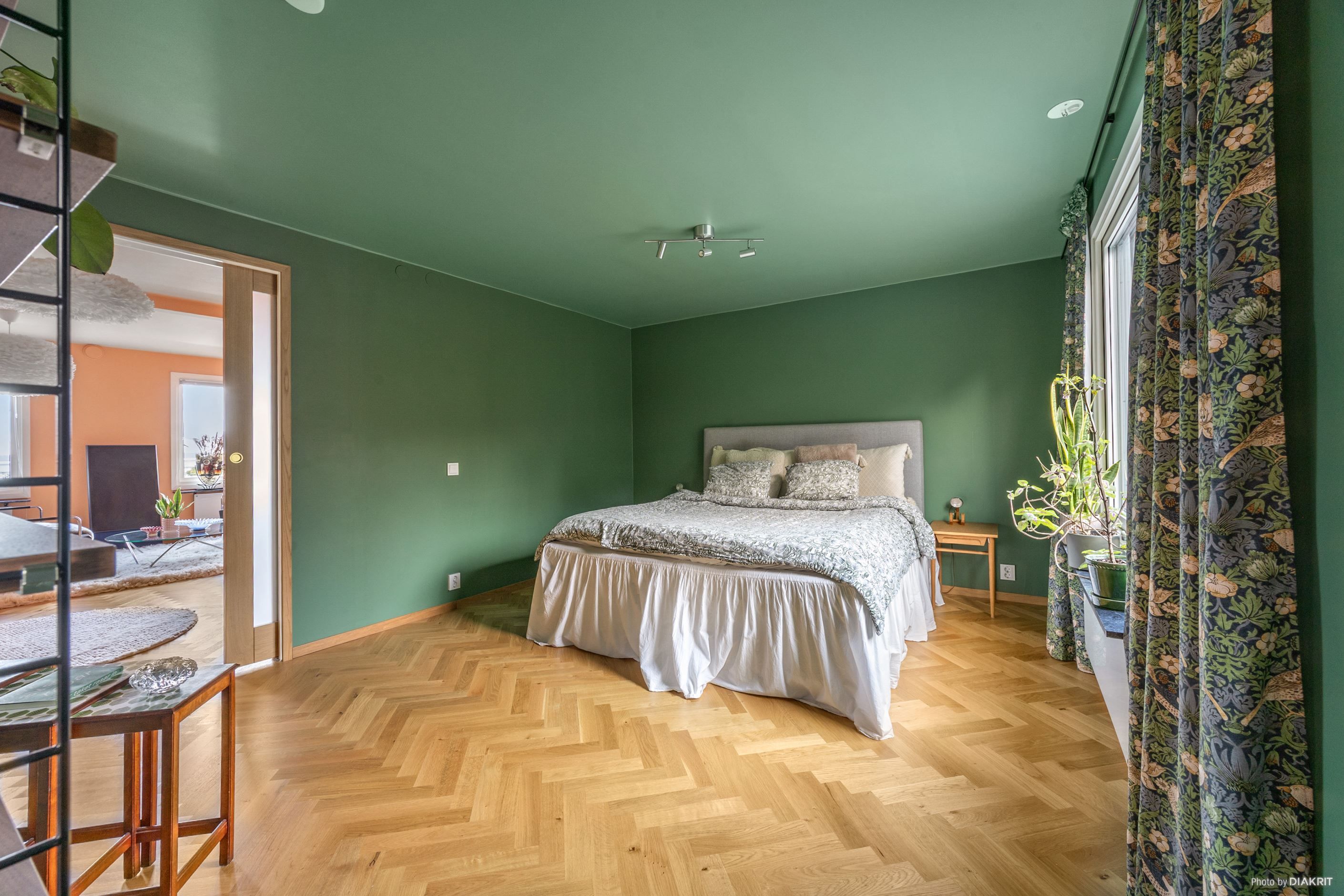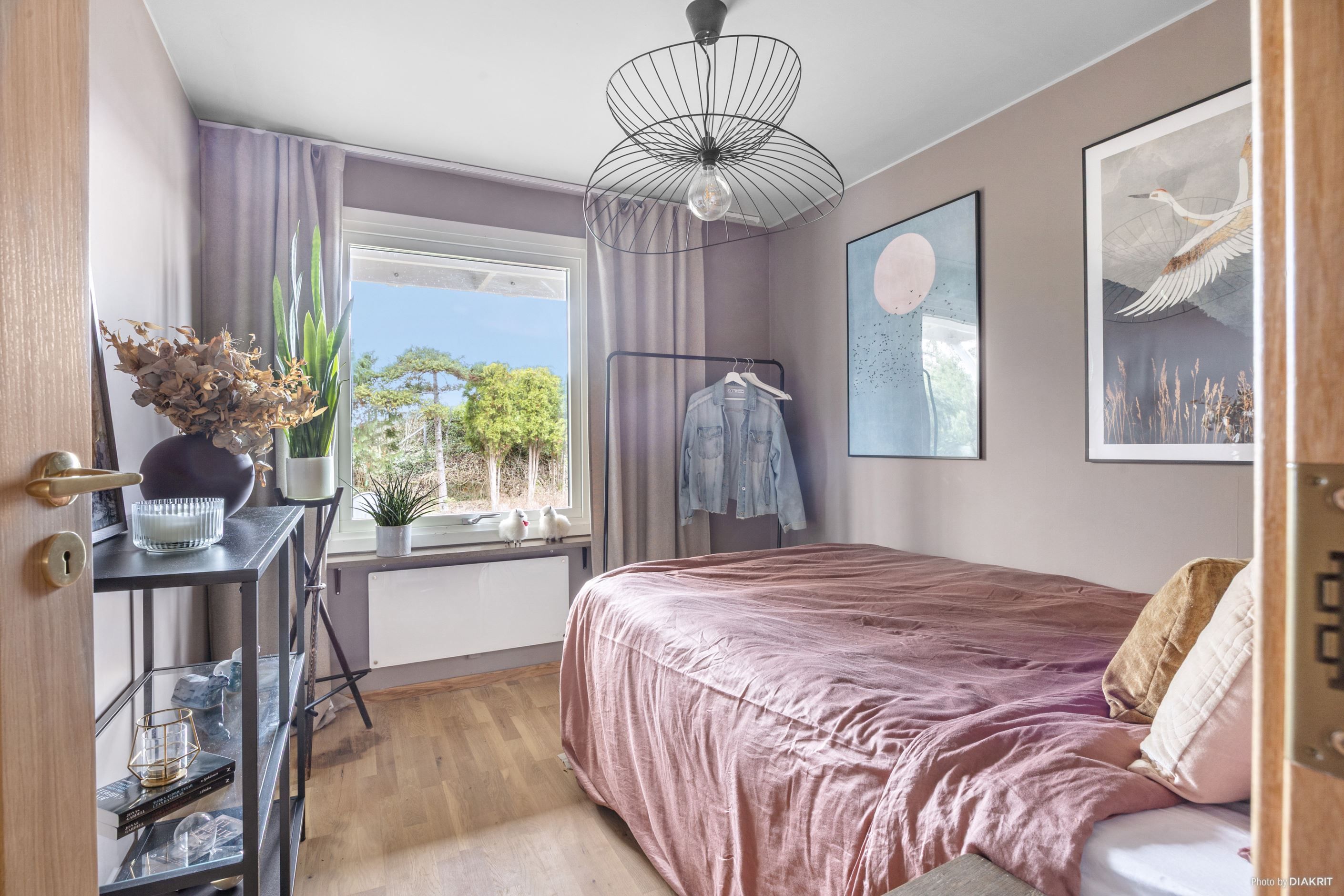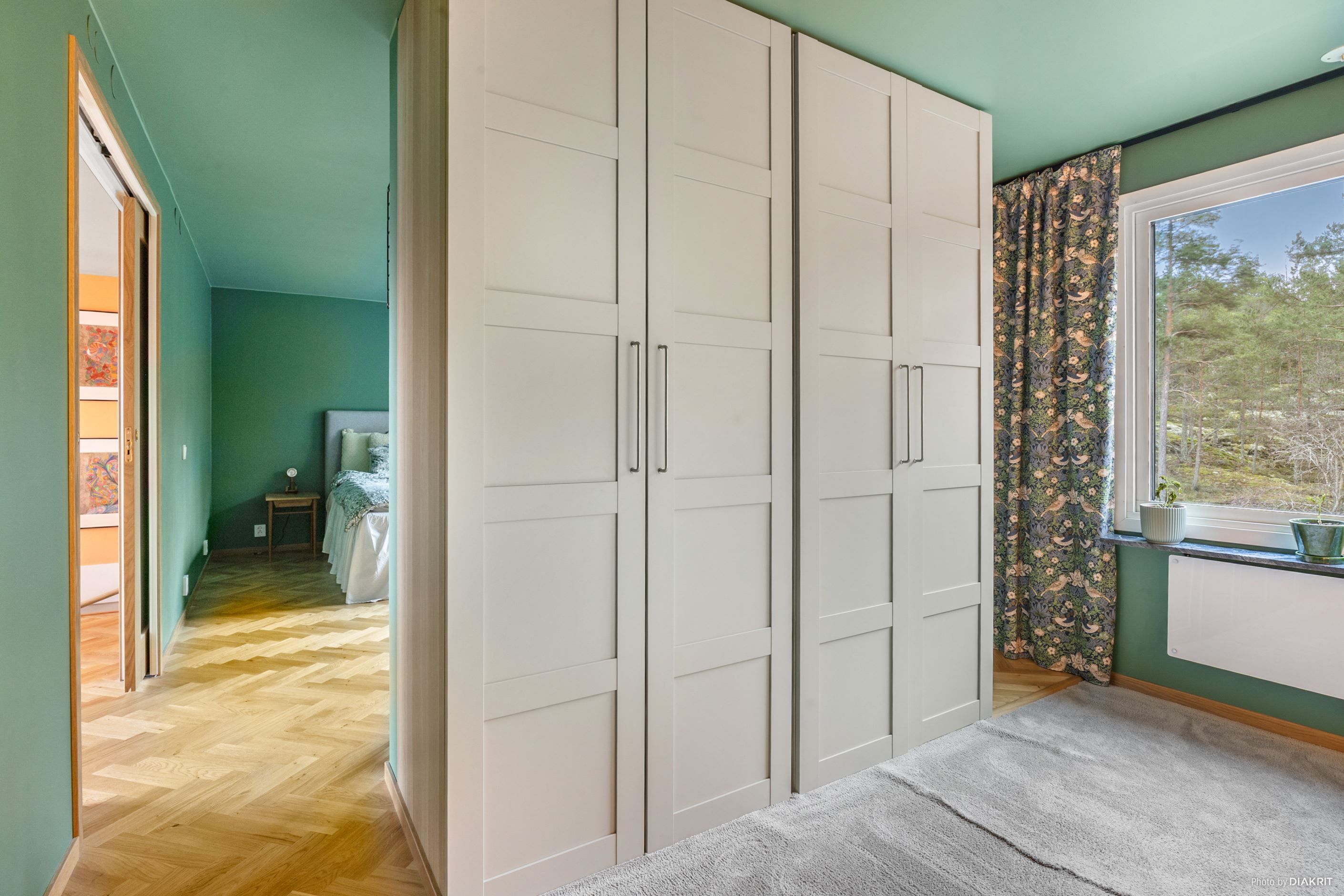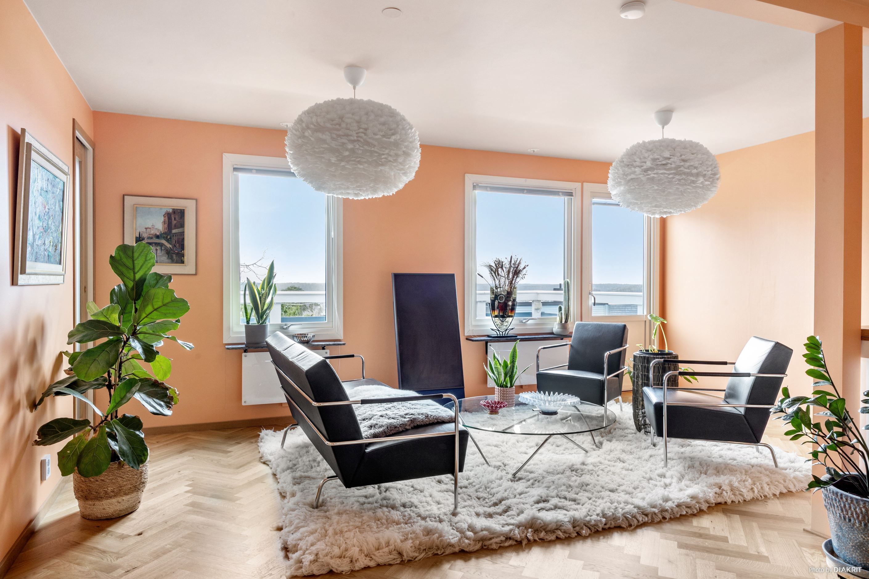 På övre plan väntar ett rofyllt master bedroom med tillhörande walk-in closet, ett luftigt allrum med direkt utgång till balkong och en magisk utsikt över Mälaren. Här finns även ett helkaklat badrum med moderna bekvämligheter samt ytterligare ett sovrum/kontor. Här ges även möjligheten att enkelt kunna omvandla allrummet till ytterligare 1-2 sovrum om behovet finns.
