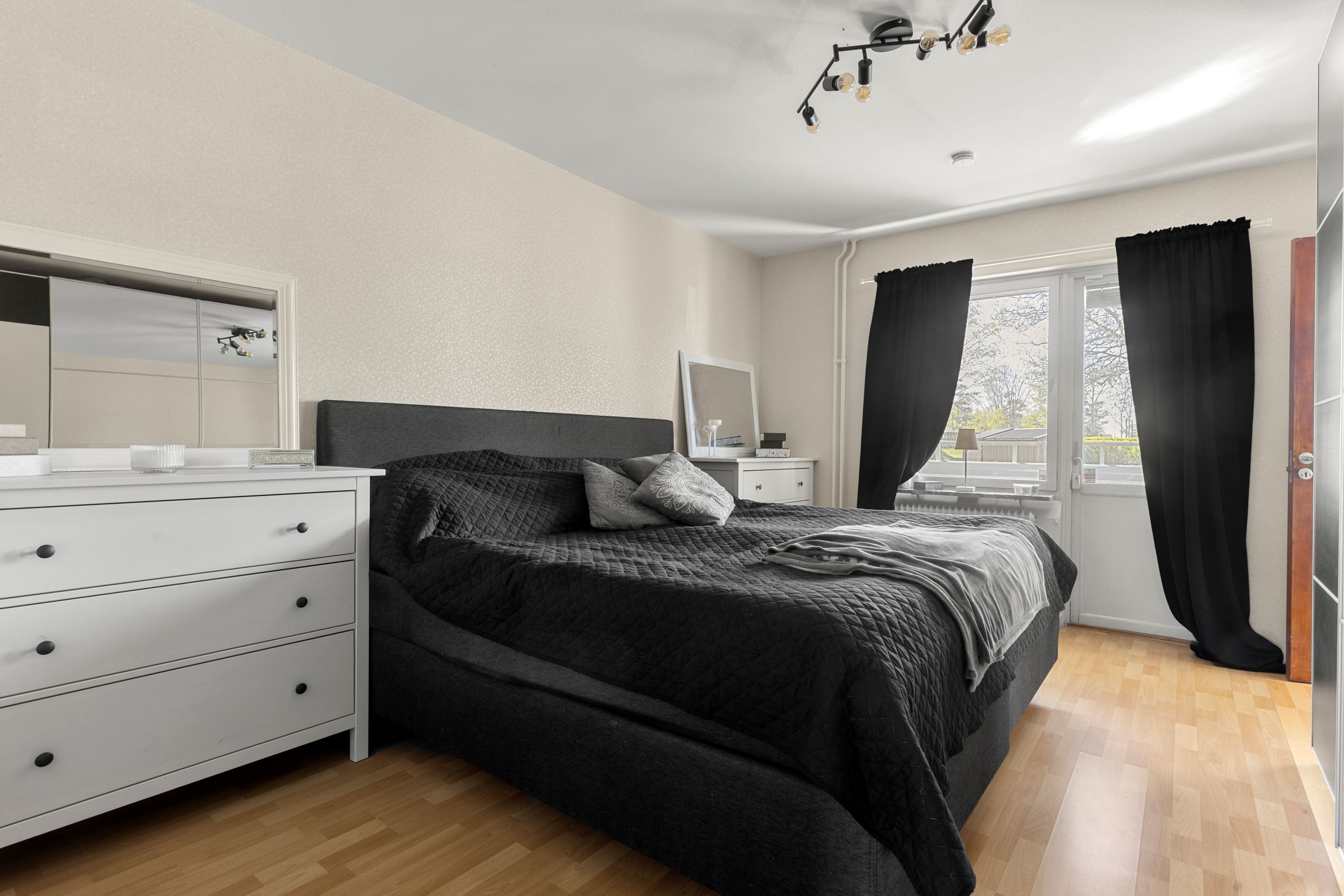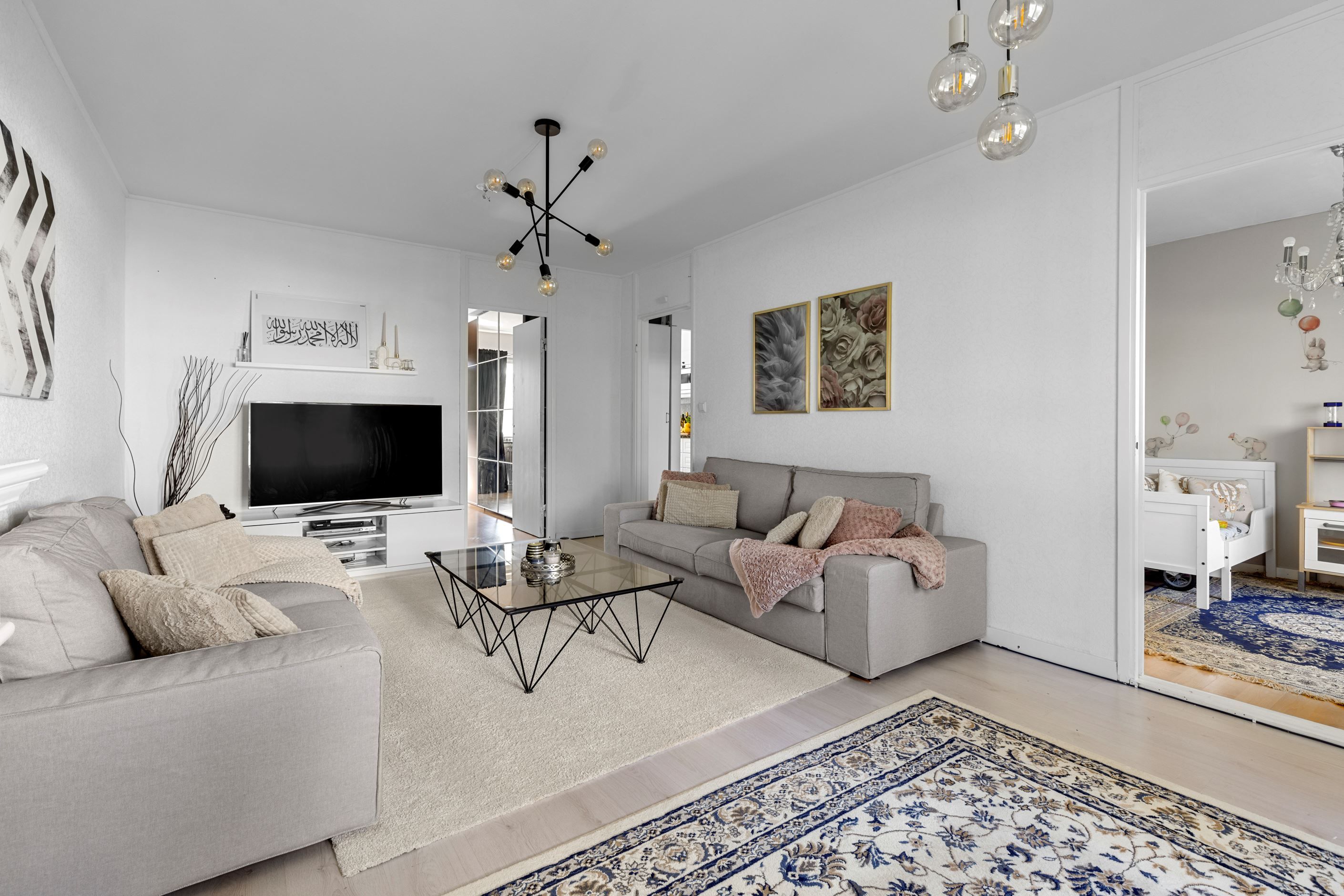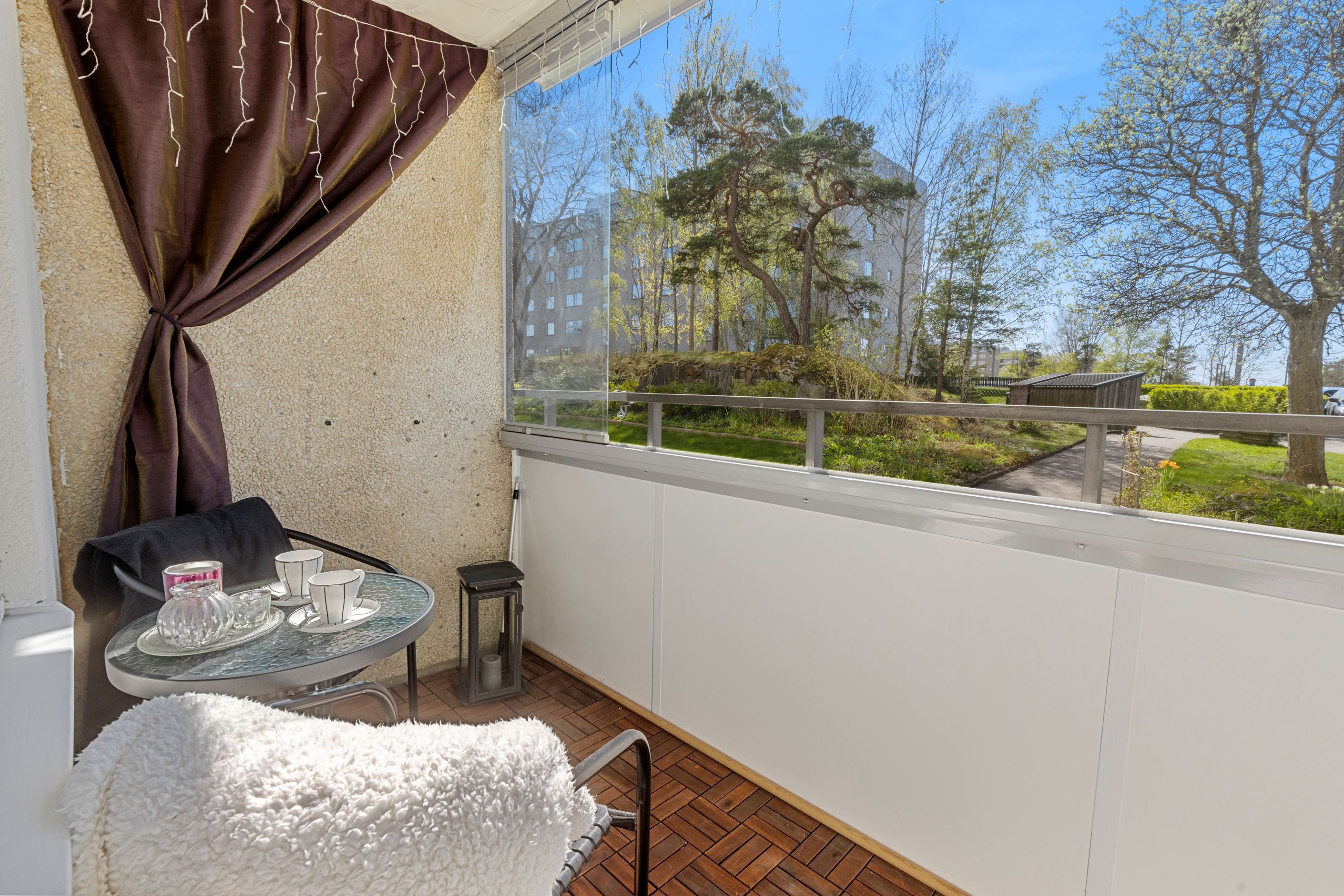 Vidare in i bostaden möts du av det dubbelsidiga köket med goda arbetsytor och förvaringsmöjligheter via vita köksluckor. Här får ni även plats med ett matbord för 6 personer. Lättmöblerat vardagsrum där du får plats med större soffgrupp, tv-bänk, bord och annat möblemang. Härligt med ljusinsläpp via de väl tilltagna fönsterpartierna i ett fritt läge med grönskande utsikt och en inglasad balkong som erbjuder eftermiddagssol!