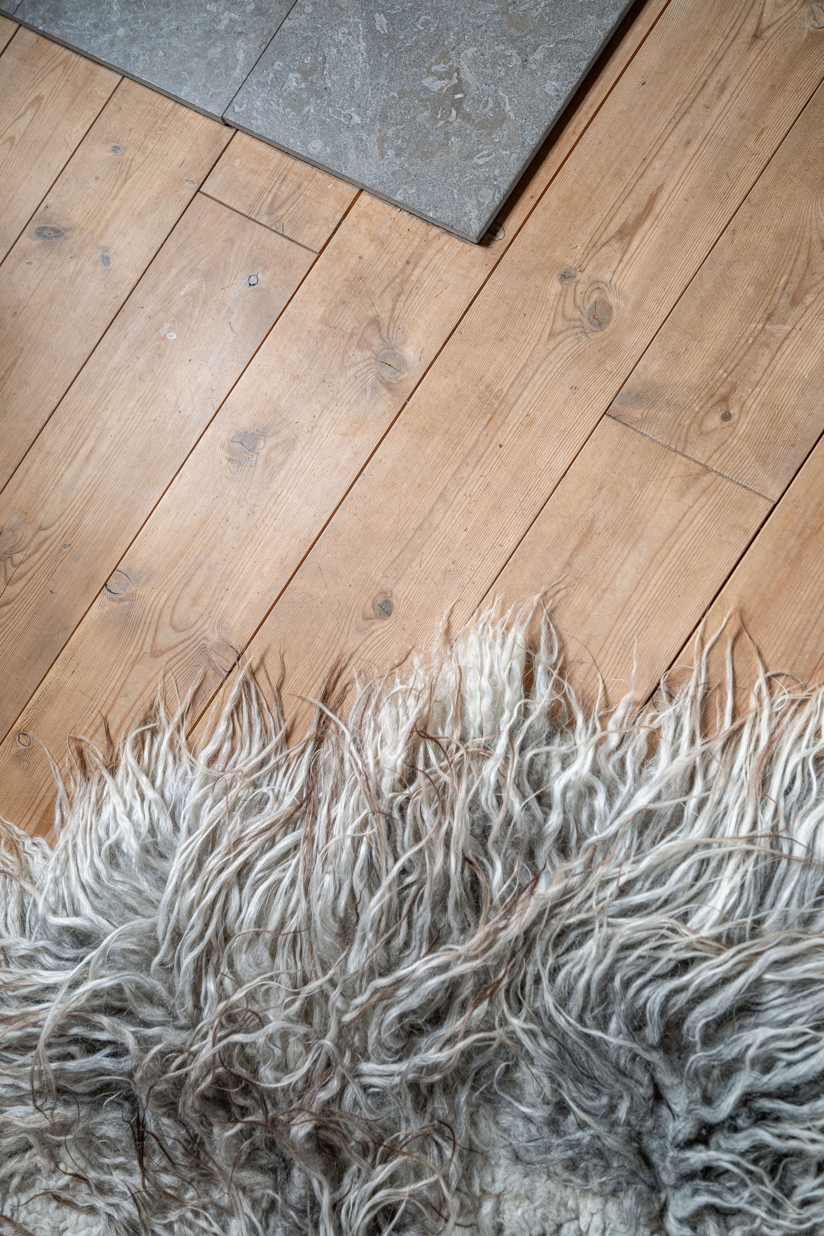 -Entré via inglasat uterum till trevligt och ljust vardagsrum med målat trägolv och vita väggar.Här finns plats för såväl soffa som matgrupp och här finns även fastighetens ena eldstad. Detta rum kan delas av till ett sovrum om så önskas.