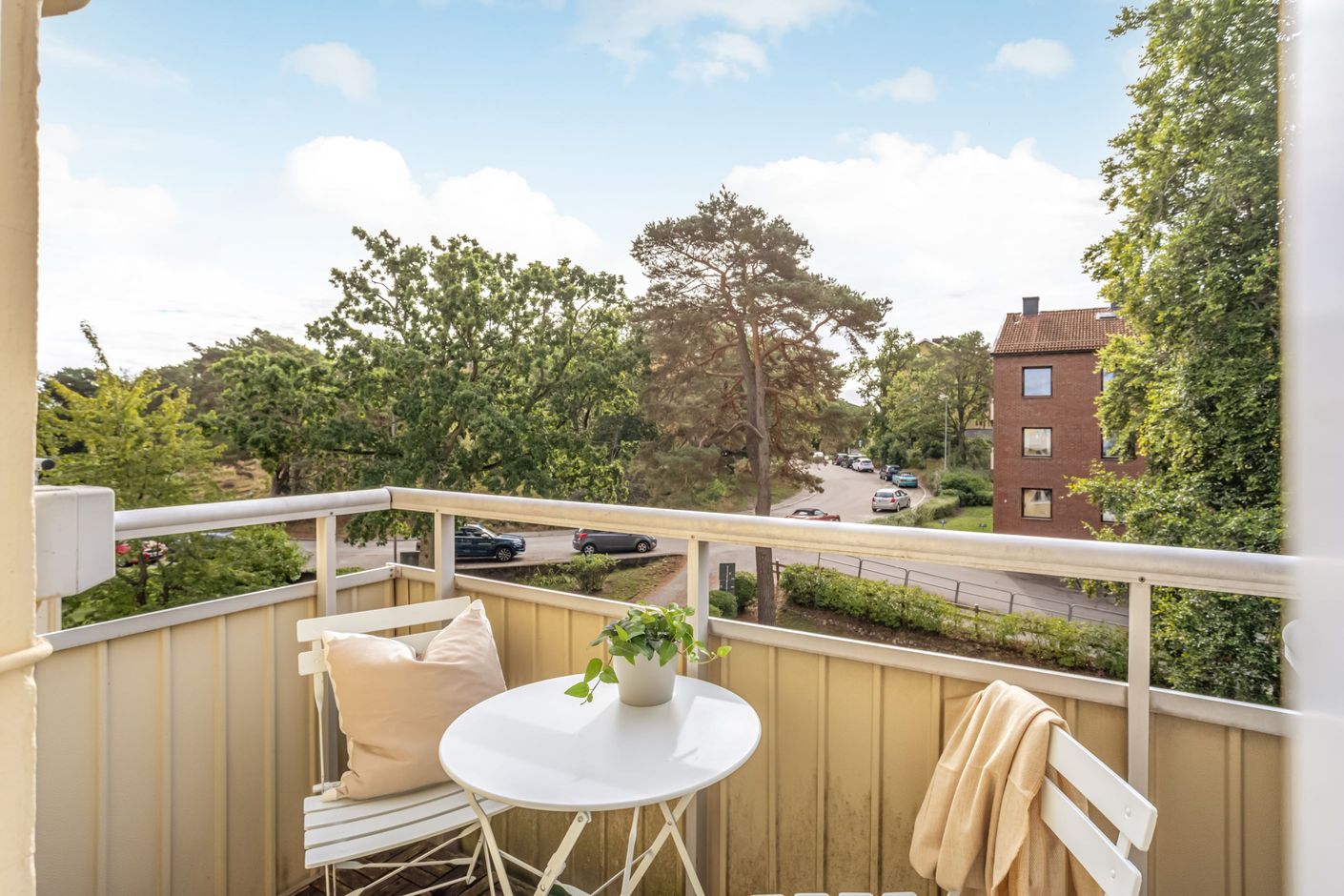 Högt belägen, genomgående och med ett fantastiskt ljusflöde – den här tvåan bjuder på ett boende utöver det vanliga. Från fönstren blickar du ut över grönskande tallar och öppna ytor. Grannhusen ligger på behagligt avstånd vilket ger ett privat och lugnt läge utan insyn.