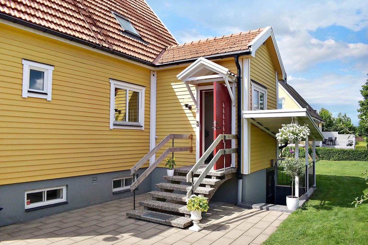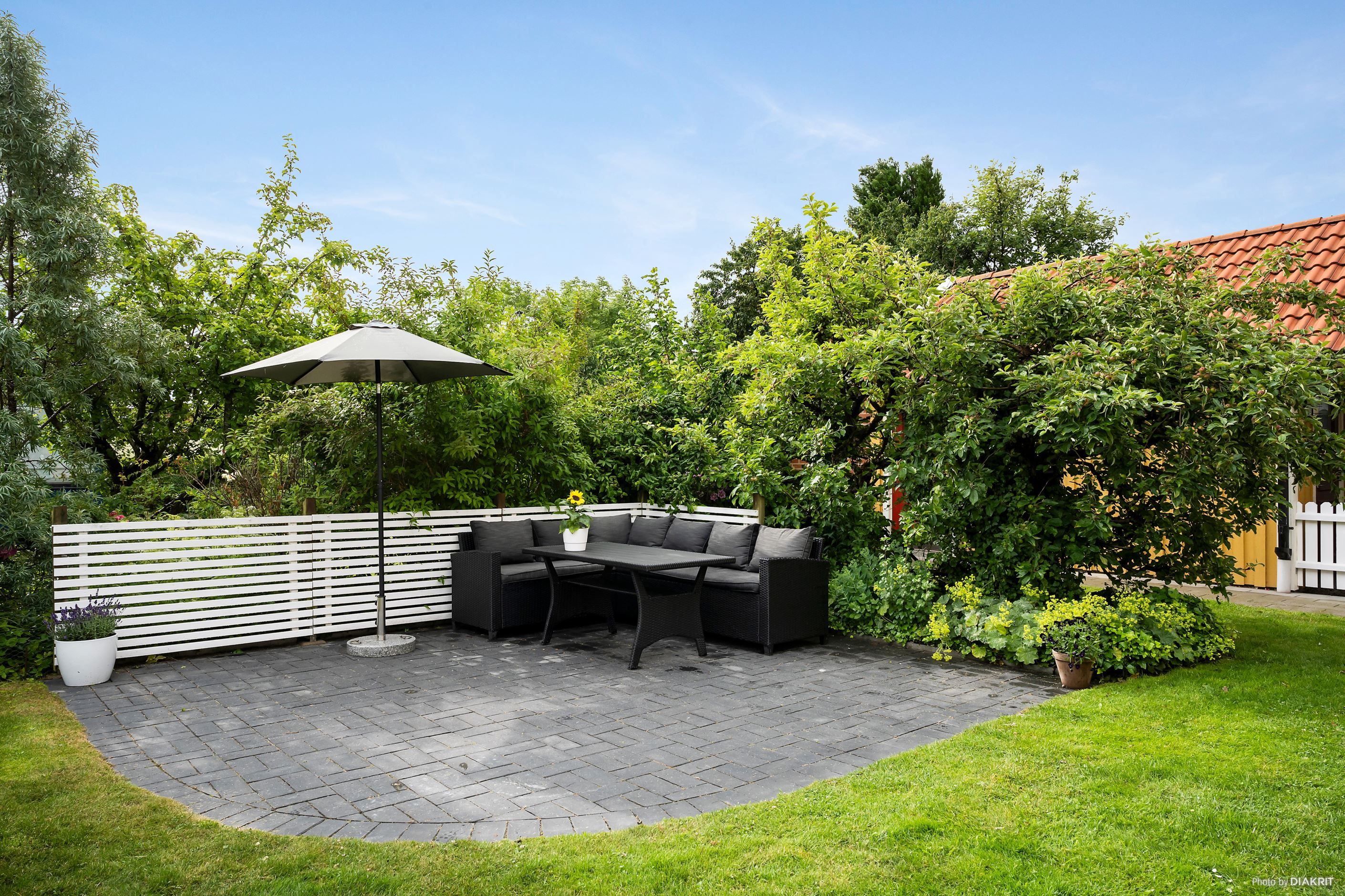 Utemiljön bjuder på flera uteplatser, både trädäck och stensatt uteplats, som förlänger sommarhalvåret och skapar härliga platser för grillkvällar, lek och avkoppling. Tomten är inhägnad, vilket gör den perfekt för både barn och fyrbenta familjemedlemmar. På den stora uppfarten finns en carport och gott om plats för flera bilar.