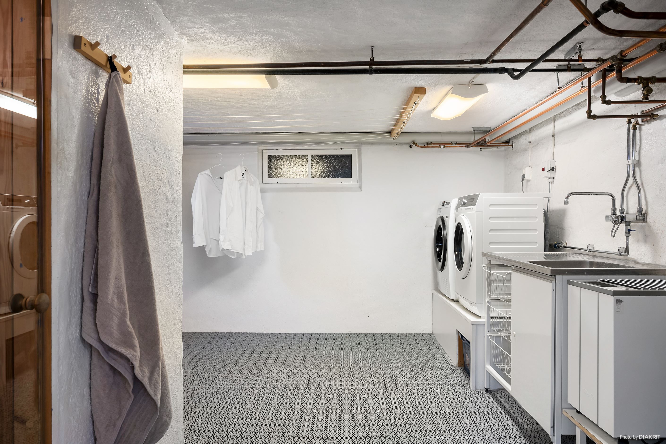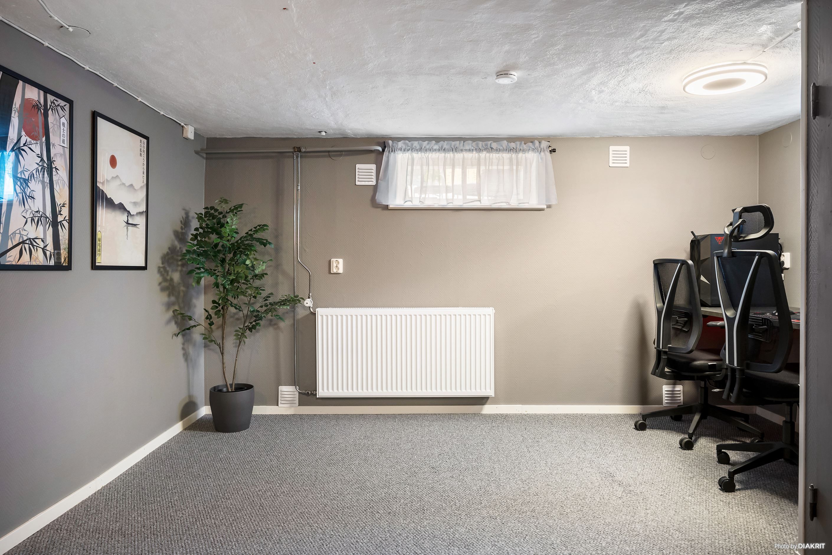 Källaren är ett extra plus, med rymlig tvättstuga, träningsrum och ett flexibelt hobbyrum eller hemmakontor – utrymme för både aktivitet och avkoppling.