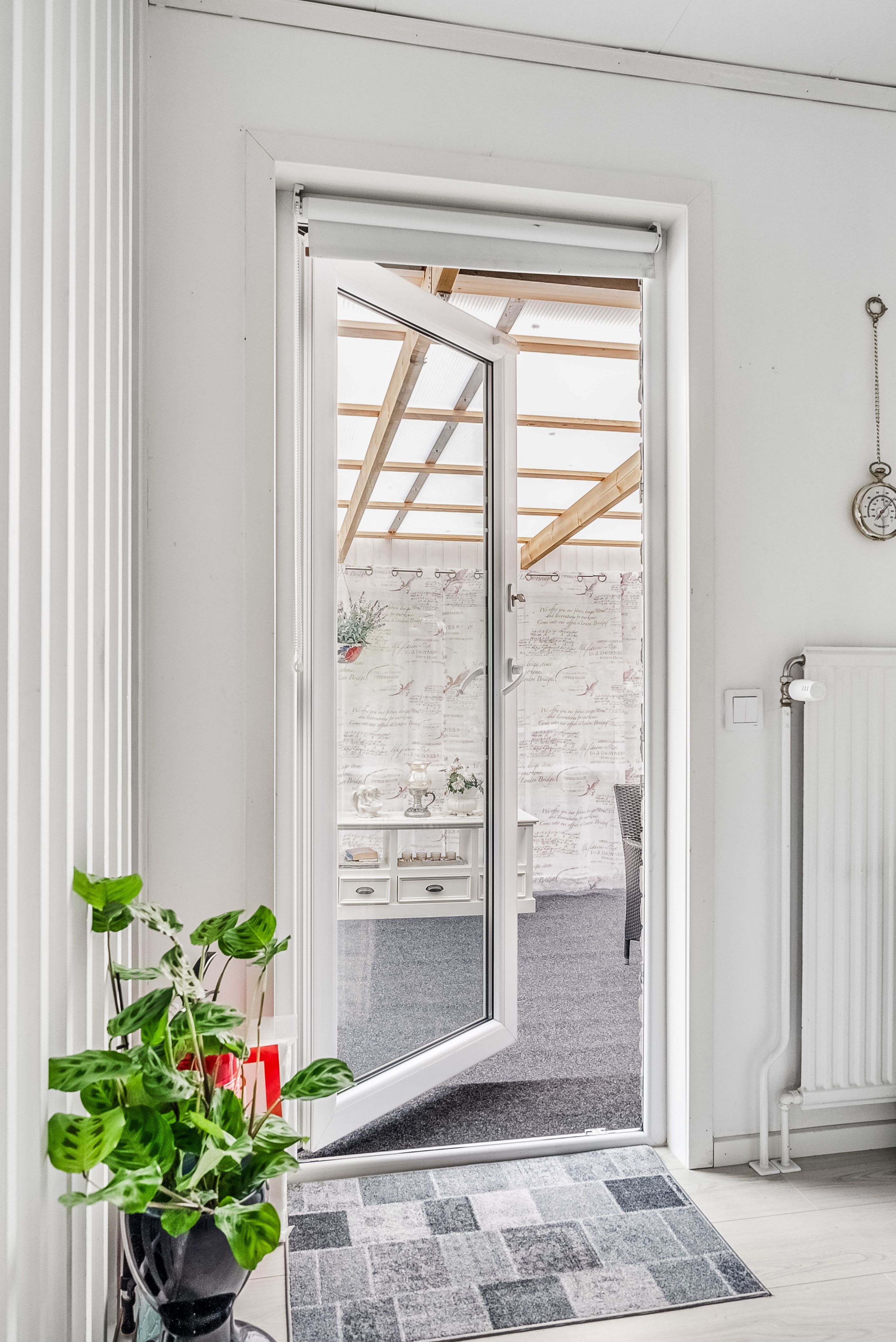 Ett allrum erbjuder utgång till en balkong på framsidan av huset samt en rymlig altan på baksidan. Här kan du njuta av både morgon- och kvällssol, och med den stora altanen med pool kan du förvandla din trädgård till ett eget lilla paradis.