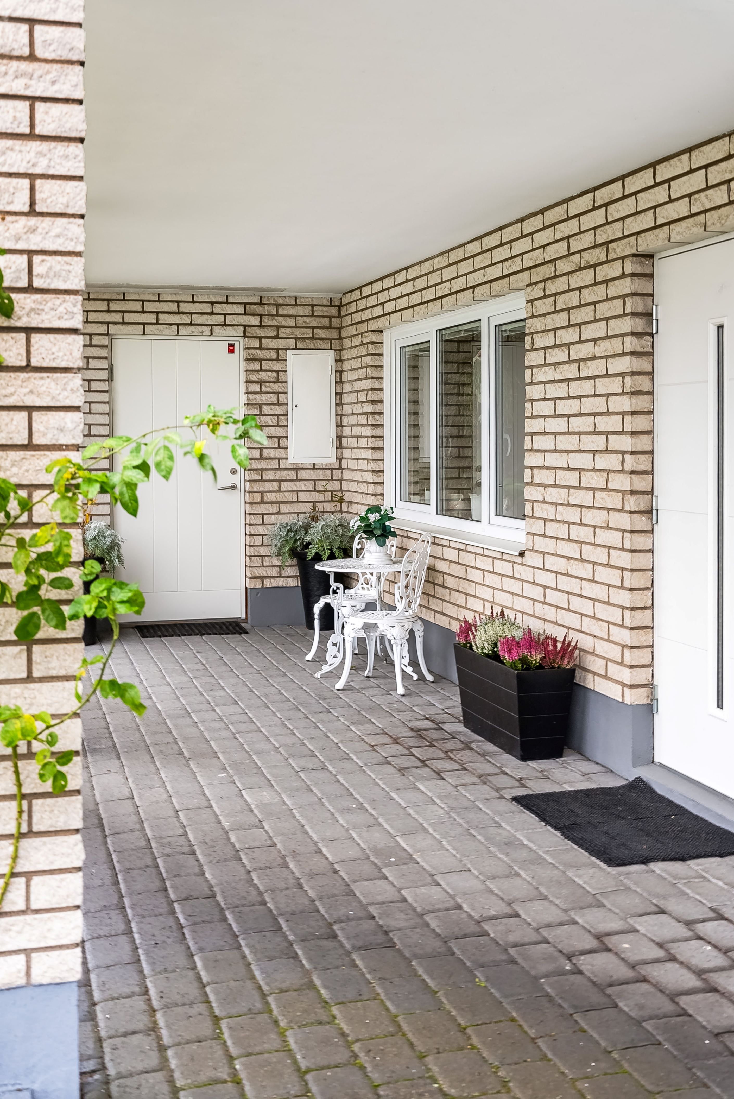 Huset har en underhållsfri tegelfasad och är fyllt med moderna uppdateringar. Allt från fönster till tak, kök och badrum har blivit omsorgsfullt renoverade, vilket ger dig en bostad som är redo att flytta in i utan några stora projekt.