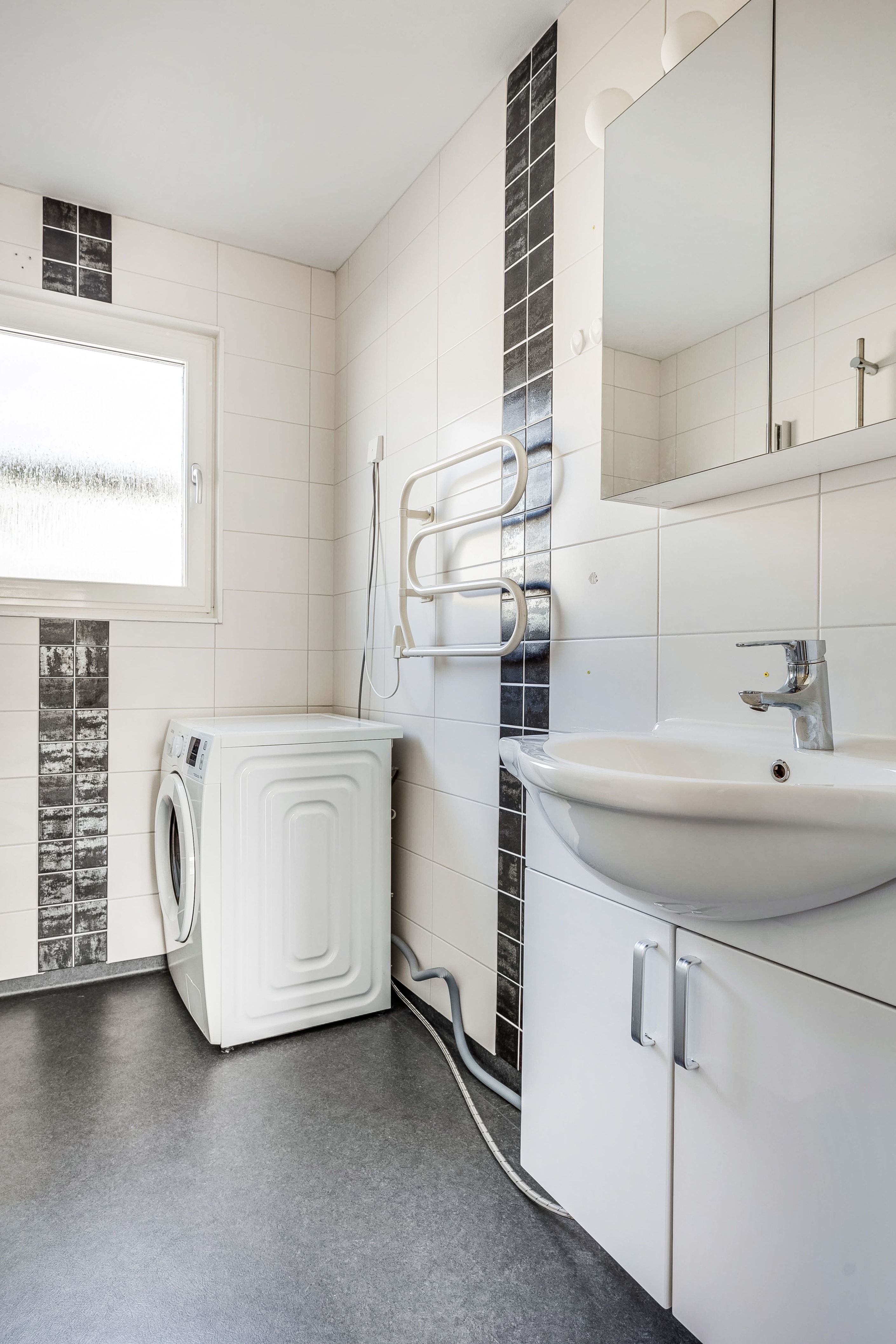 Lägenheten disponeras med ett ljust och fint kök, här finns gott om förvaringsutrymmen och bänkytor och invid det stora fönsterpartiet har matbordet en naturlig plats. Badrummet är helkaklat och ger ett modernt och smakfullt intryck och i badrummet finns också tvättmöjligheter i tvättmaskin. I lägenheten finns också en separat gäst-wc för allas bekvämlighet. Vardagsrummet är luftigt och här kan både soffgrupp, tv-möbel och matsalsbord med enkelhet samsas. Vidare finns tre bra sovrum varav det ena sovrummet har utgång till balkongen. Till lägenheten följer två förråd.