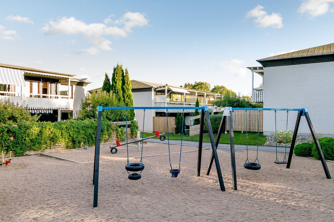 Vidare finns tre bra sovrum samt ytterligare en uteplats på framsidan i form av ett stort trädäck med inramande häck för en privat atmosfär. Markis finns. Till lägenheten följer ett källarförråd. Strax utanför huskroppen ligger föreningens övernattningsrum samt stor och fräsch tvättstuga.