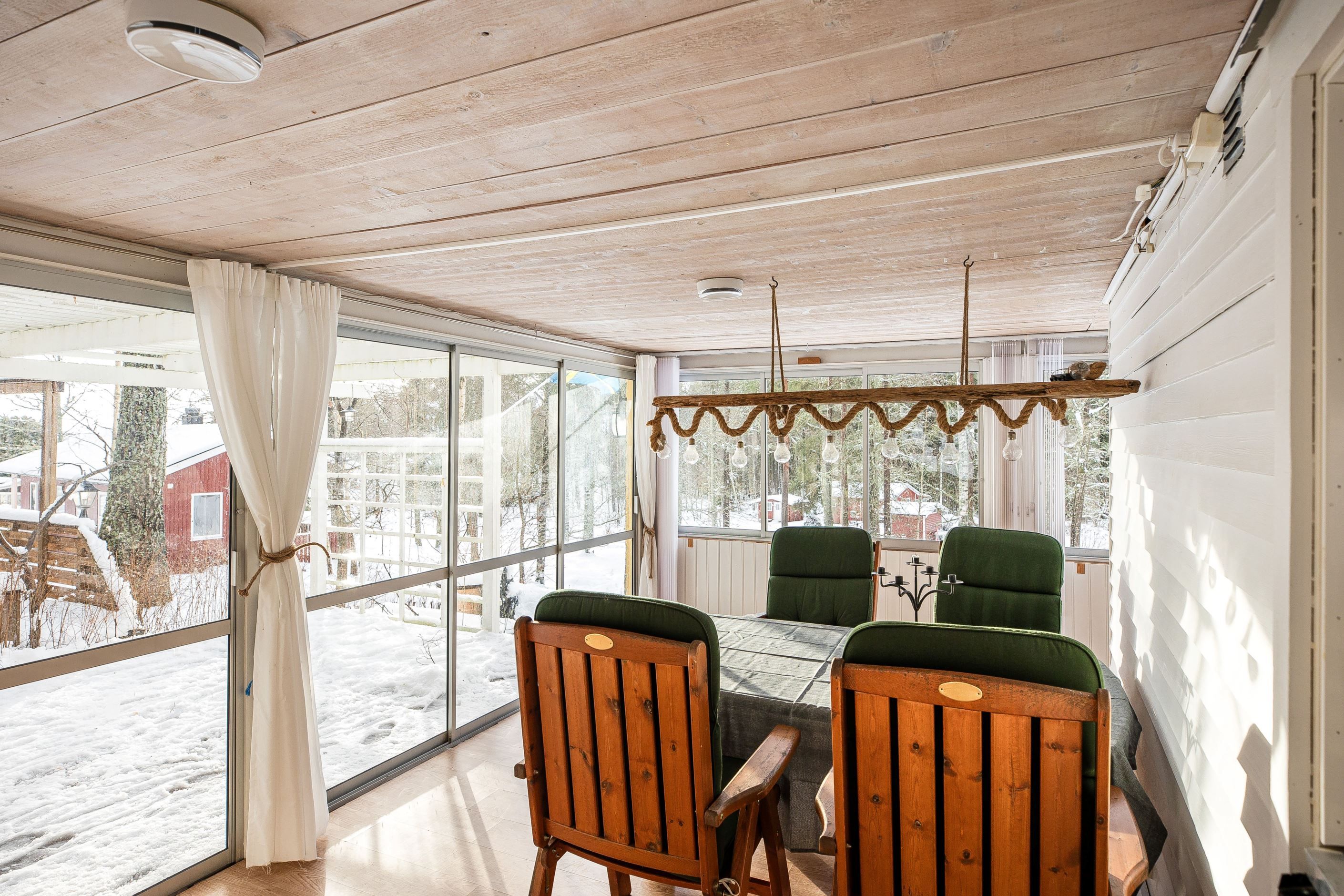 Vidare från köket nås vardagsrummet som även det har en härlig eldstad som ger hög mysfaktor! Från vardagsrummet kommer du ut till ett stort inglasat uterum om hela 35 kvm. Här kan du på sommarahalvåret njuta av naturens växlingar på nära håll med utsikt mot sjön Roxen.