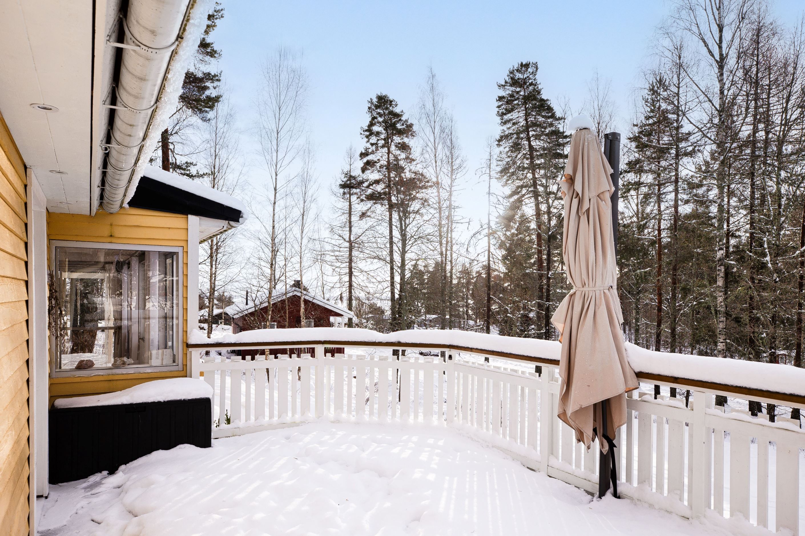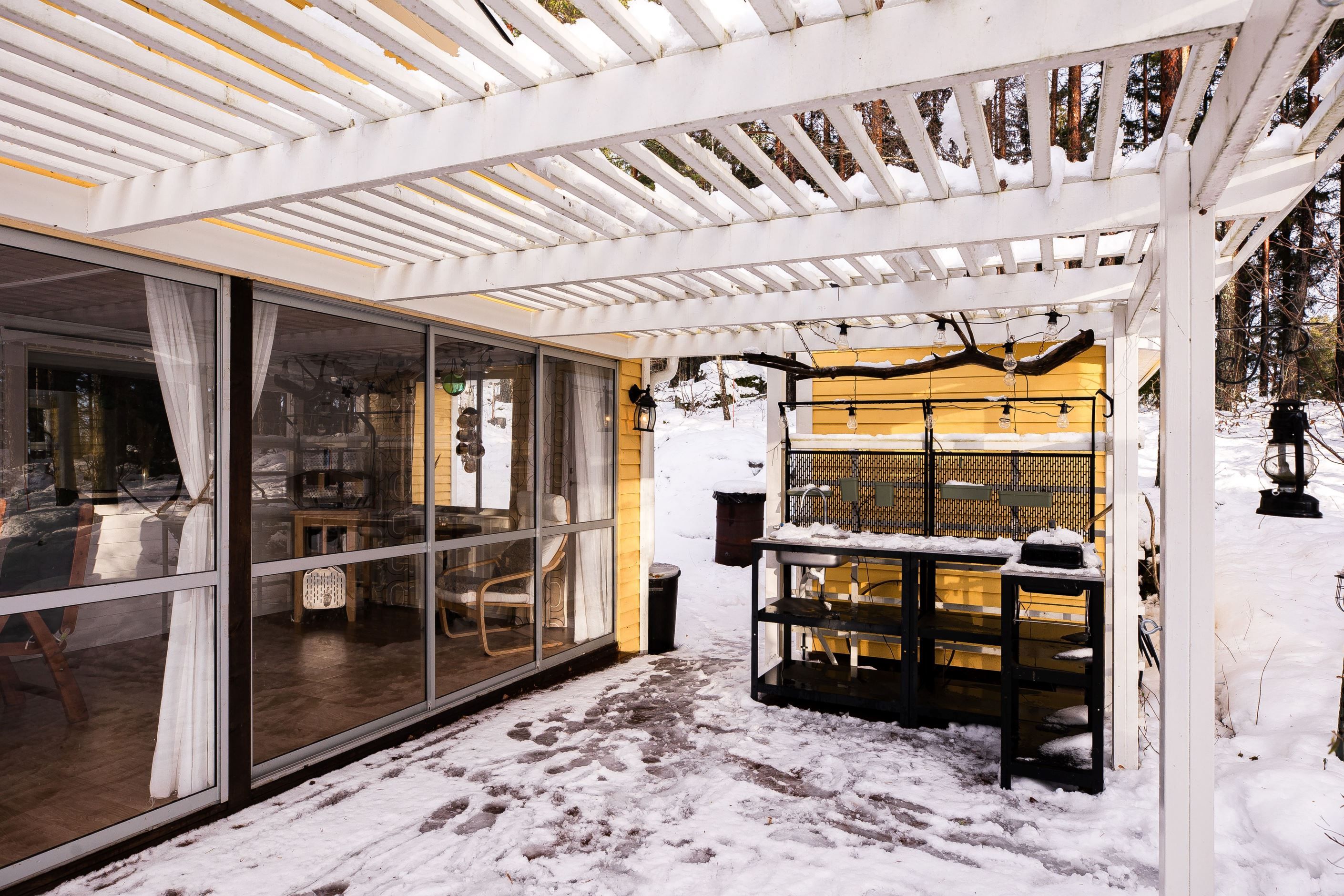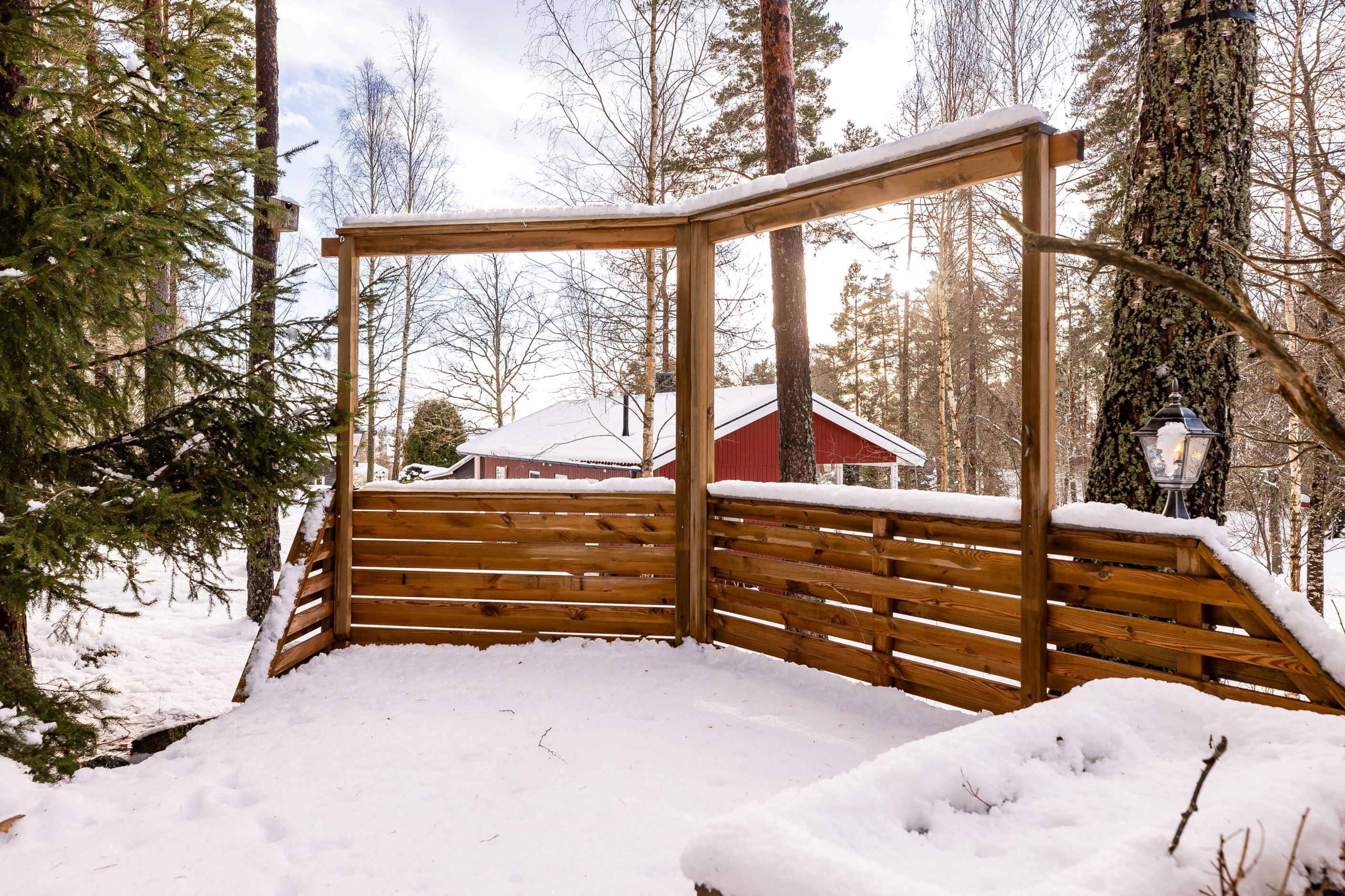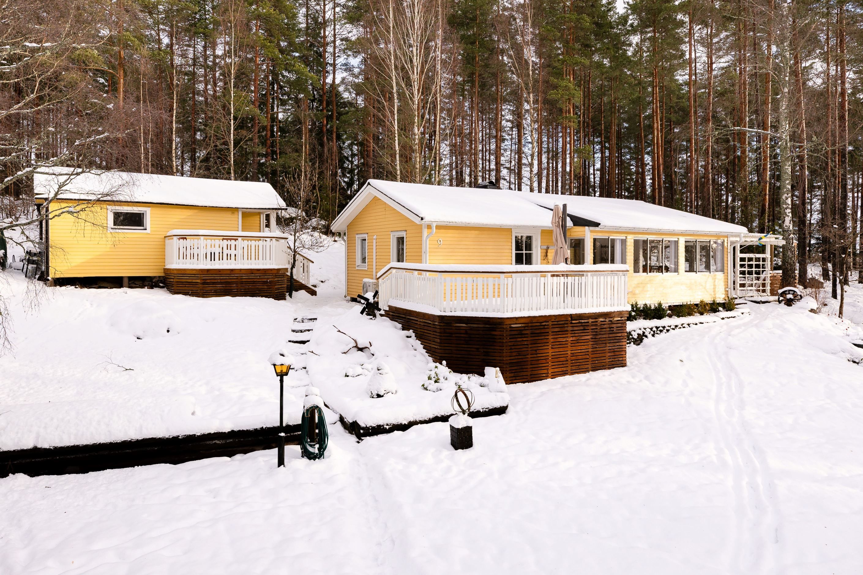 Utöver huvudbyggnaden så finns också också en inredd gäststuga med eget altandäck och i bakkant av byggnaden finns duschrum och förbränningstoalett. Här finns också en vedbod som för den bastufrälste skulle kunna få en ny funktion. I anslutning till det inglasade uterummet finns både altandäck med utekök och ett däck för en bubbelpool.