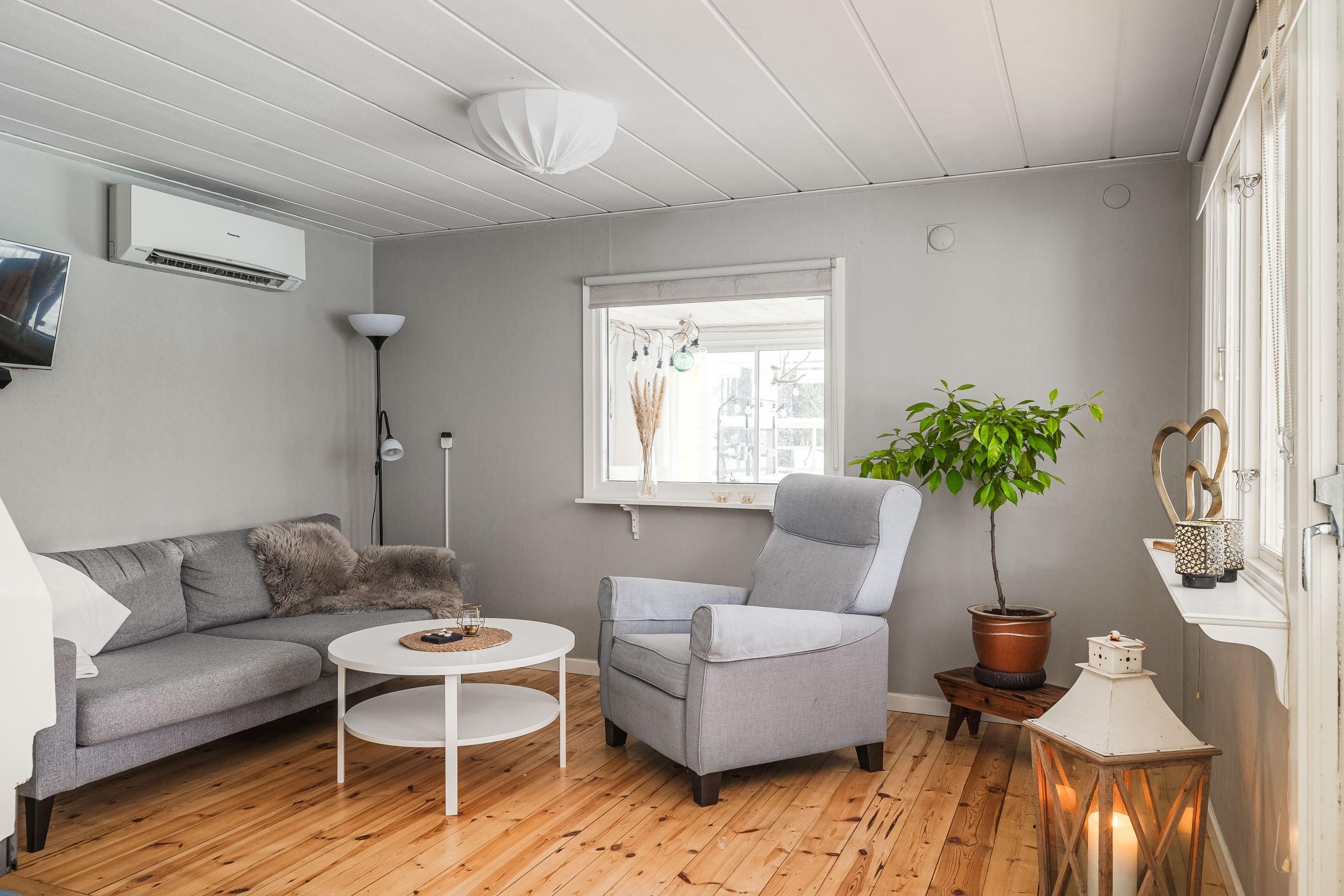 Huvudbyggnaden som renoverats stilfullt senaste åren är vinterbonad och disponerad på 51 kvm med en modern och samtidigt charmig interiör. Här möter fina plankgolv ljusa väggytskikt i harmoni med karaktäristisk liggande träpanel som bidrar till stugans röda tråd. I stugan finns två kaminer samt två luftvärmepumpar som bidrar till ett mycket behagligt inomhusklimat och tillser att du som ägare av Sandvik 9 kan uppehålla dig här både sommar- och vinterhalvåret.