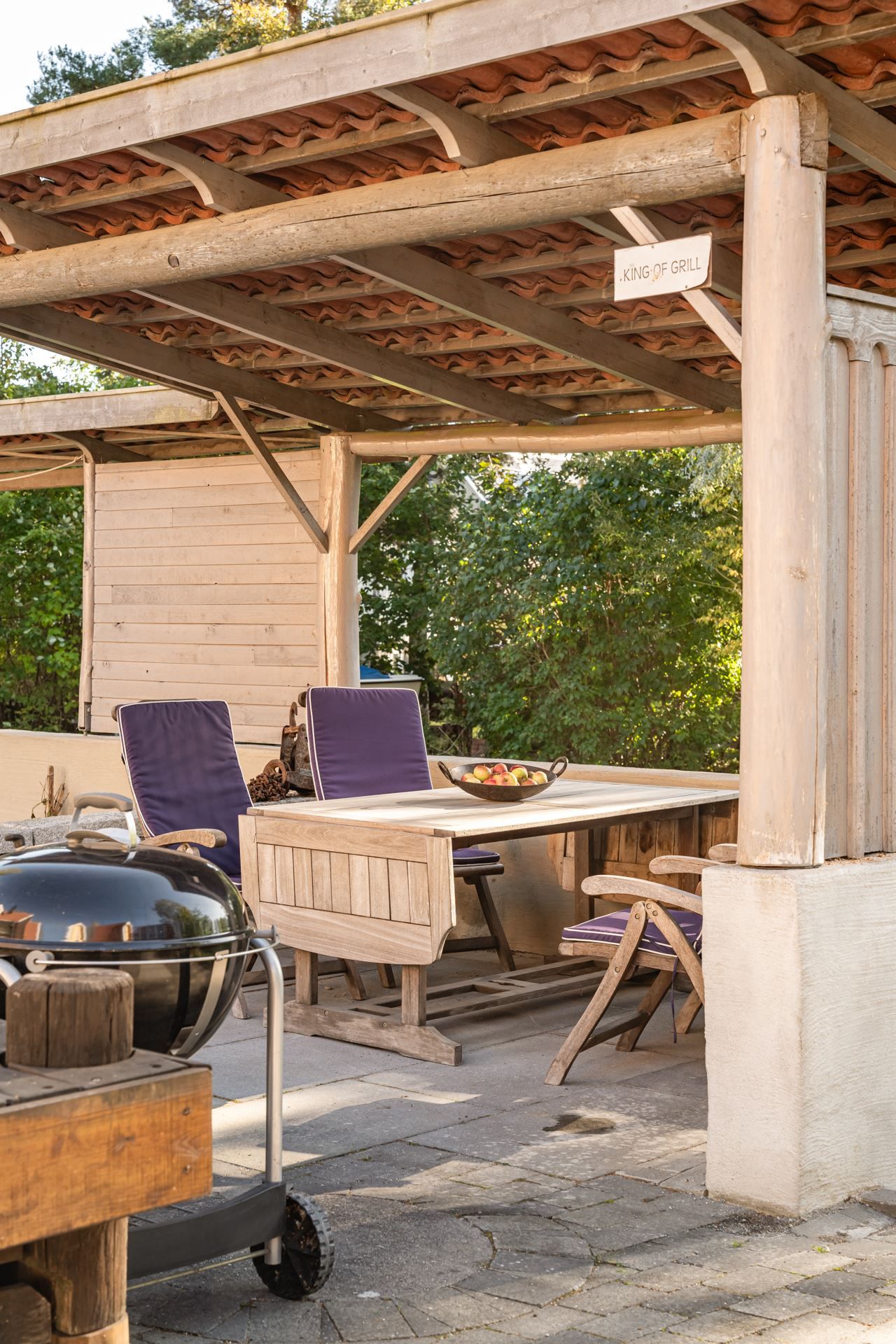 Garaget är rymligt, perfekt för den som vill mecka. Här finns nämligen en platsbyggd arbetsbänk med ho (varmt och kallt vatten) samt garderober med gott om förvaringsutrymme. Ovanpå garaget, med separat ingång, finns en inredd våning, som enkelt kan användas som rum för tonåringen eller hemmakontoret där du kan arbeta ostört.