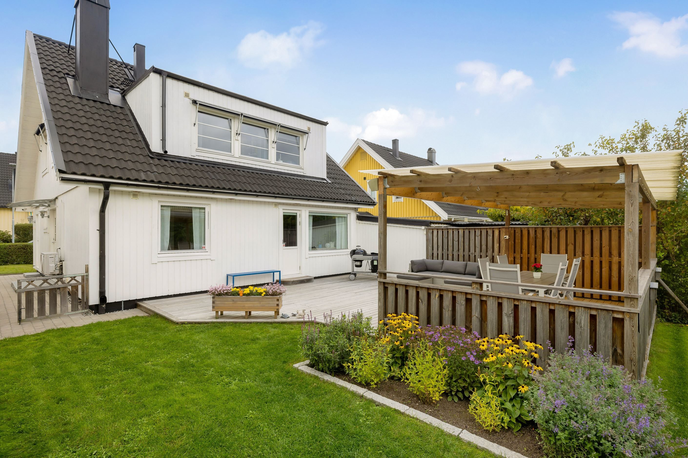 Rymligt och välbeläget kedjehus med stor trädgårdstomt och egen biluppfart, garage!