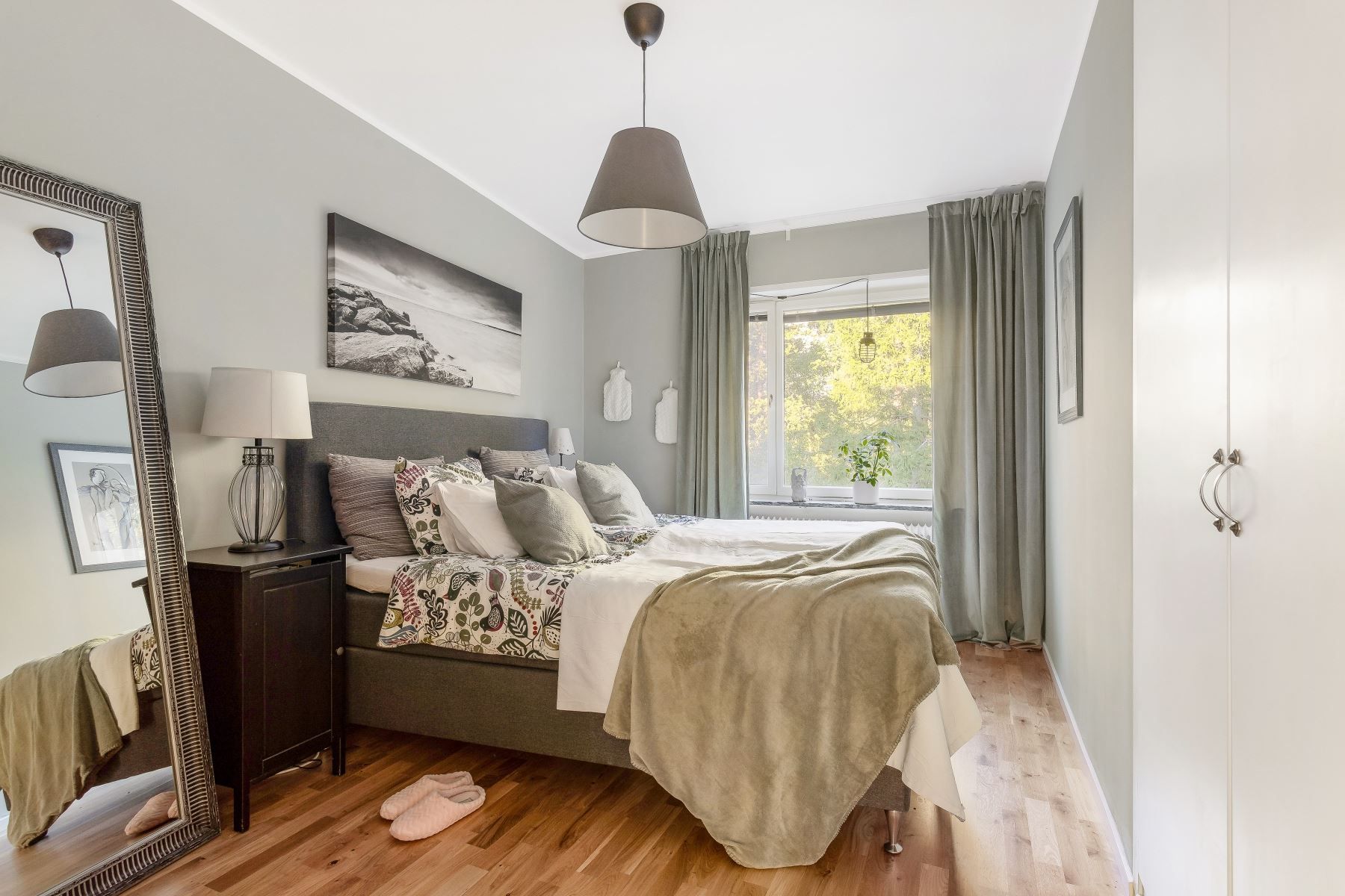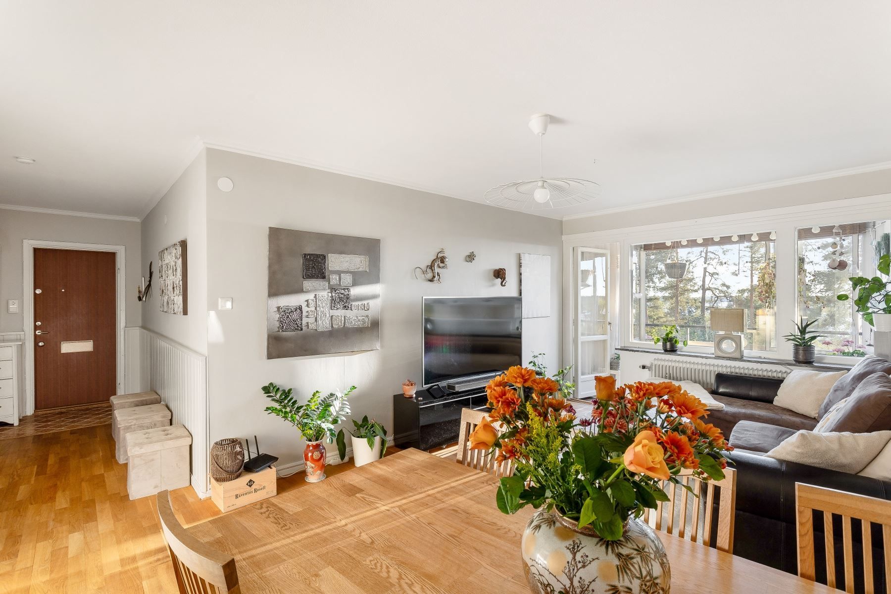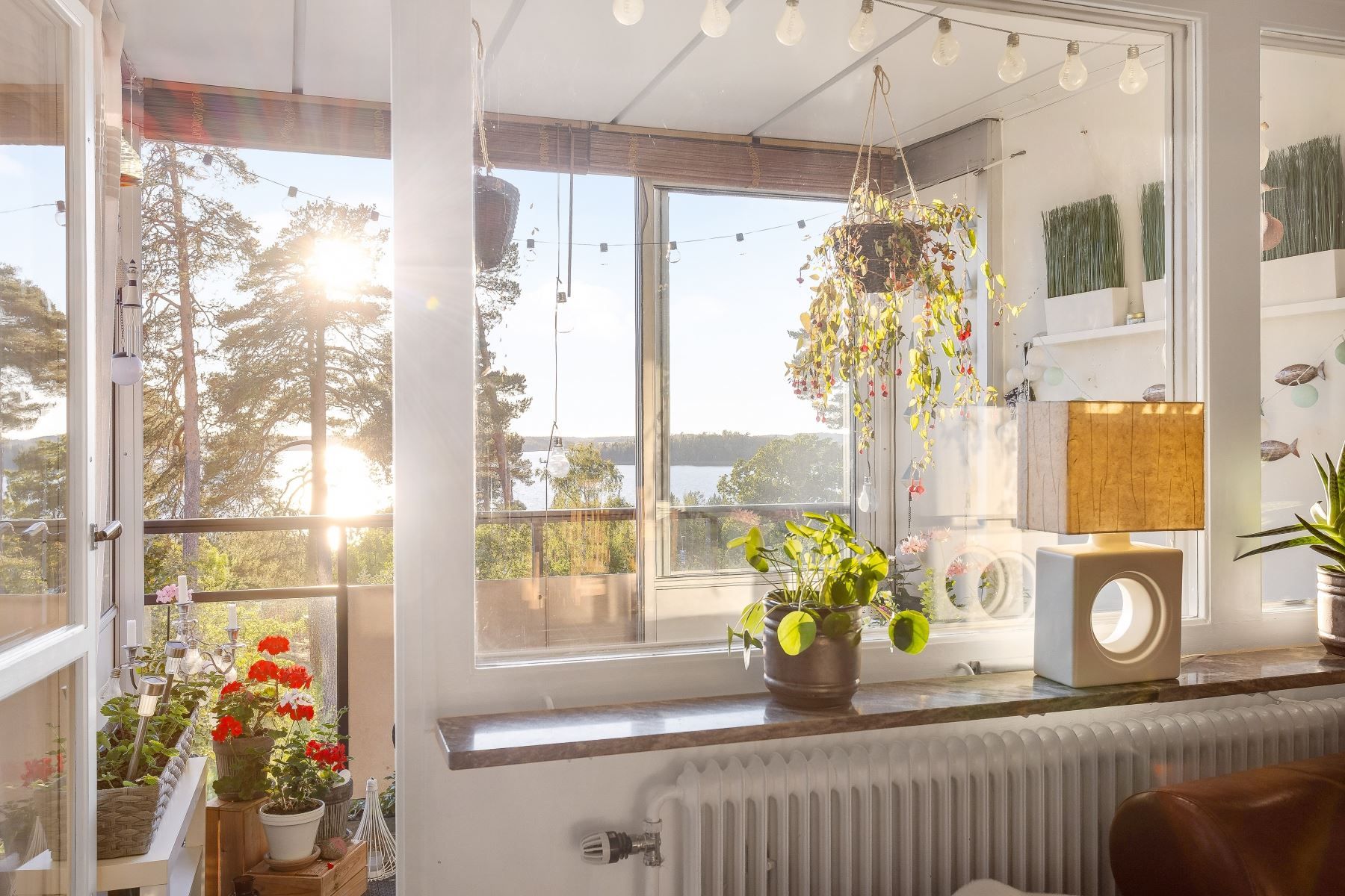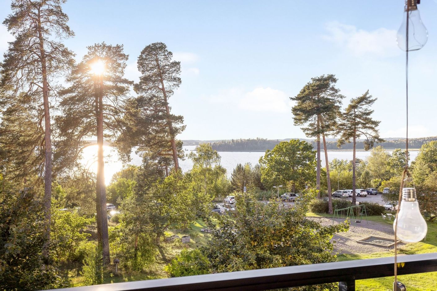 Det är lätt att förstå att folk väntar på att en lägenhet just här på Smedvägen jämna nummer ska bli till salu. Längan är nämligen belägen längst ner i området på återvändsgata med en strålande utsikt över Mälarens glittrande vatten och solnedgångens alla färger. Bostaden är genomgående och har baksidan mot lugn grönska. Tack vare inglasningen av balkongen fungerar den som ett extrarum från de tidiga vårsolstrålarna som skänker en behaglig temperatur, till långt in på hösten och tidig vår. På sommardagarna bjuder du enkelt över vännerna på grillafton, det finns gott om plats på föreningens innergård att grilla, eller om ni hellre går ner och sätter er vid klipporna vid vattnet som bara ligger några minuter bort. Till strandpromenaden är det endast ca 200m, där finns klippor där du gärna kan ta kvällsdoppet. Invändigt bjuder lägenheten på en rymlig hall med förvaring, två sovrum av bra storlek, kök med matplats, vardagsrum och badrum. Givetvis har du en vacker utsikt över Mälarens glittrande vatten även inifrån vardagsrummet. De generösa fönsterna ramar in naturen och Mälarutsikten tack vare bostadens fria läge.