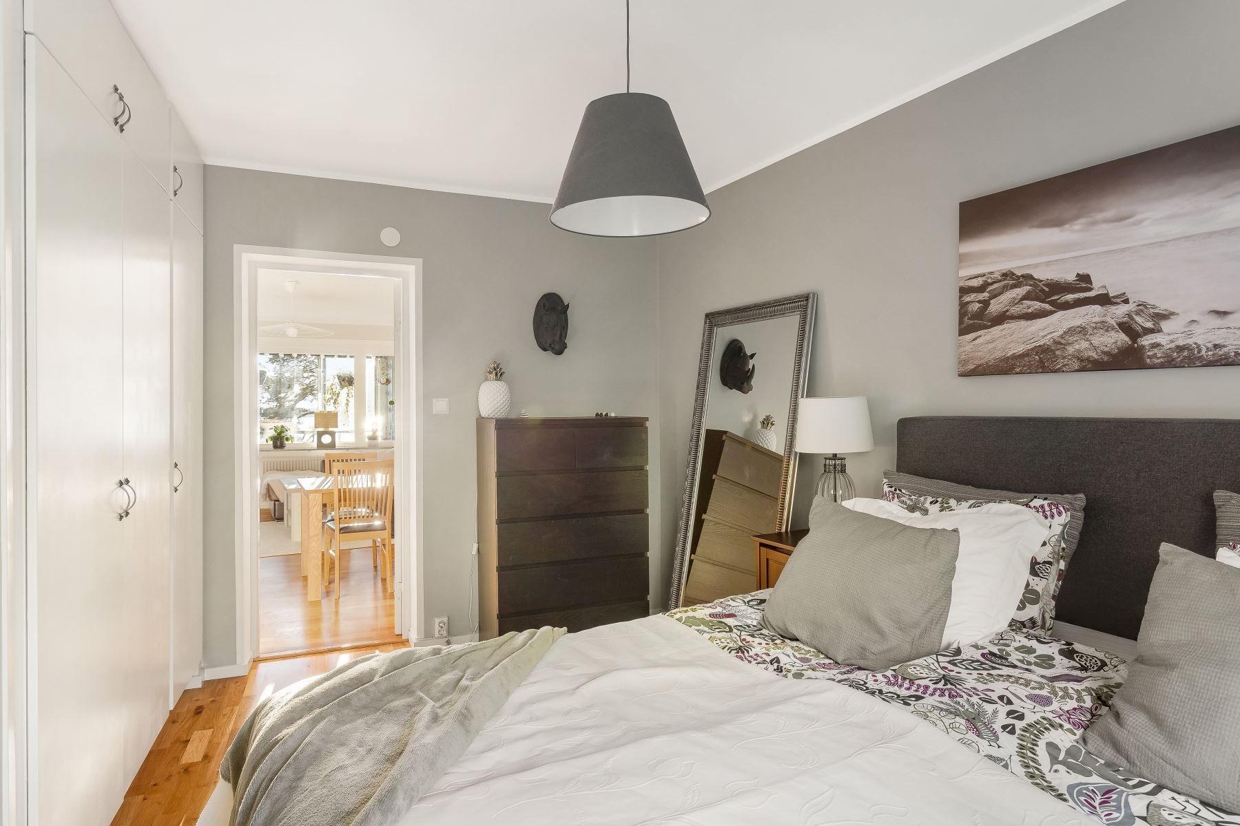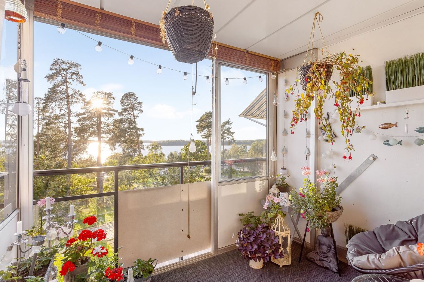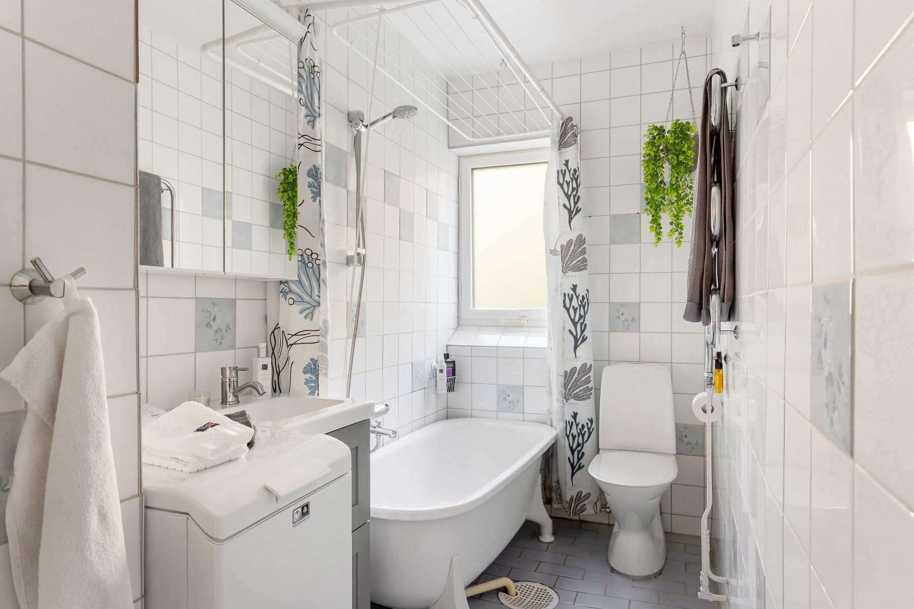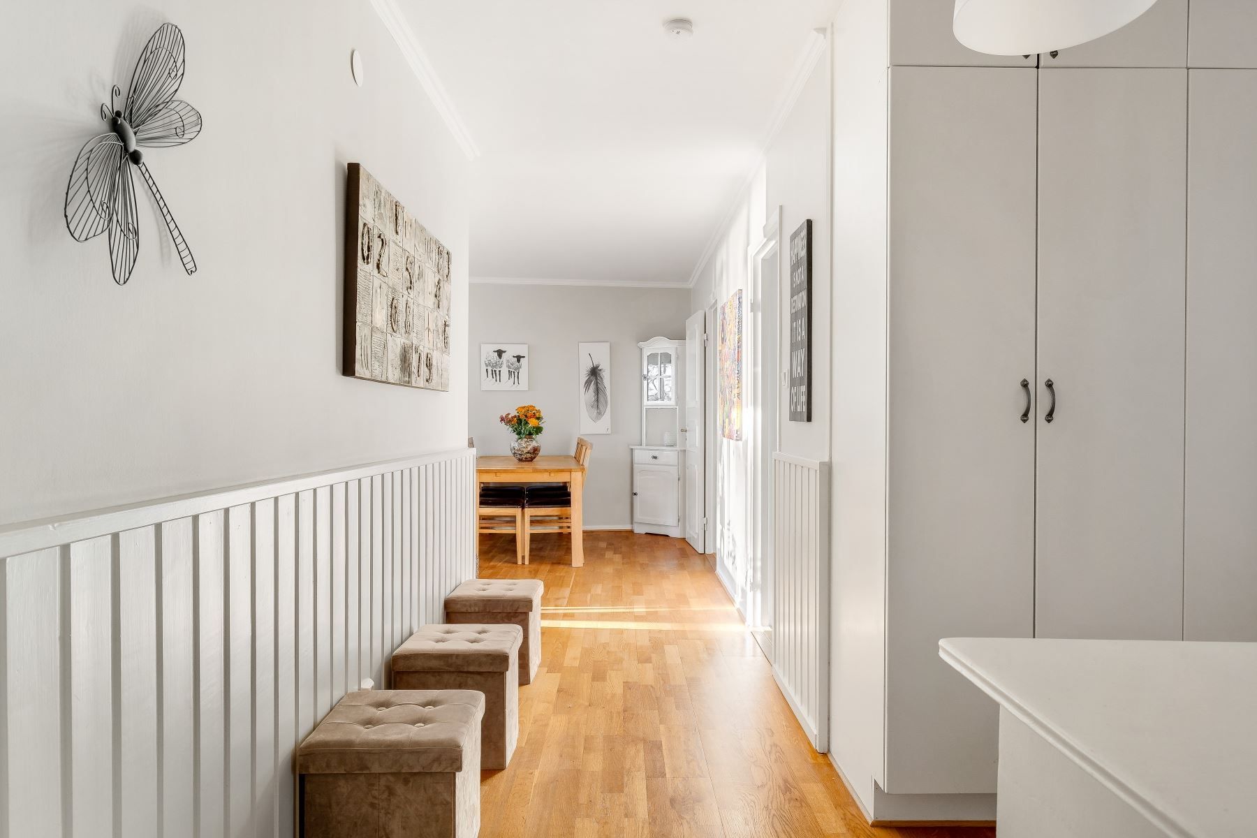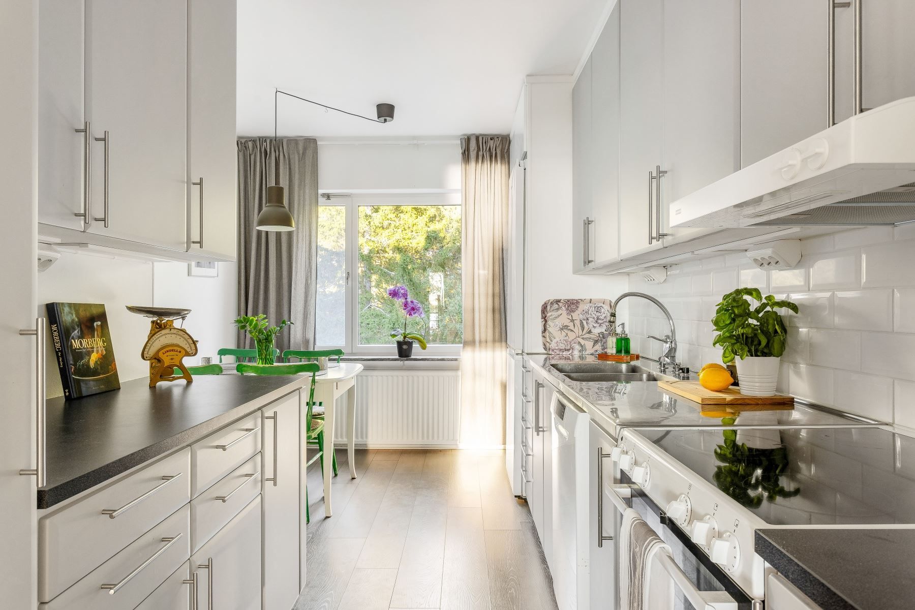 Det är lätt att förstå att folk väntar på att en lägenhet just här på Smedvägen jämna nummer ska bli till salu. Längan är nämligen belägen längst ner i området på återvändsgata med en strålande utsikt över Mälarens glittrande vatten och solnedgångens alla färger. Bostaden är genomgående och har baksidan mot lugn grönska. Tack vare inglasningen av balkongen fungerar den som ett extrarum från de tidiga vårsolstrålarna som skänker en behaglig temperatur, till långt in på hösten och tidig vår. På sommardagarna bjuder du enkelt över vännerna på grillafton, det finns gott om plats på föreningens innergård att grilla, eller om ni hellre går ner och sätter er vid klipporna vid vattnet som bara ligger några minuter bort. Till strandpromenaden är det endast ca 200m, där finns klippor där du gärna kan ta kvällsdoppet. Invändigt bjuder lägenheten på en rymlig hall med förvaring, två sovrum av bra storlek, kök med matplats, vardagsrum och badrum. Givetvis har du en vacker utsikt över Mälarens glittrande vatten även inifrån vardagsrummet. De generösa fönsterna ramar in naturen och Mälarutsikten tack vare bostadens fria läge.