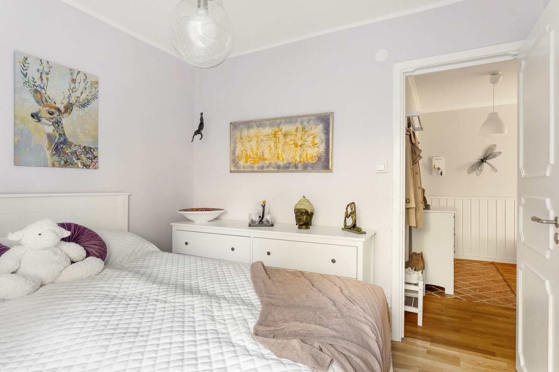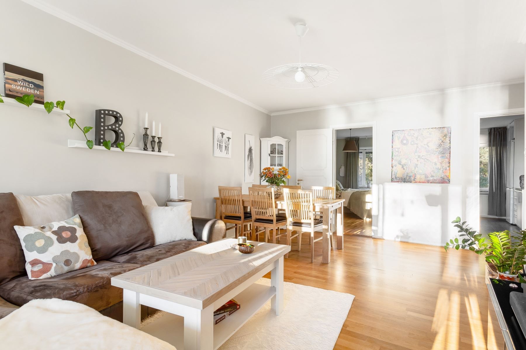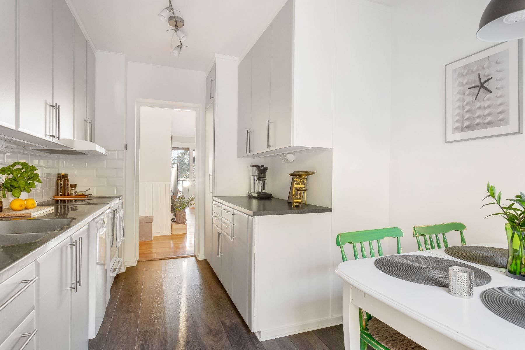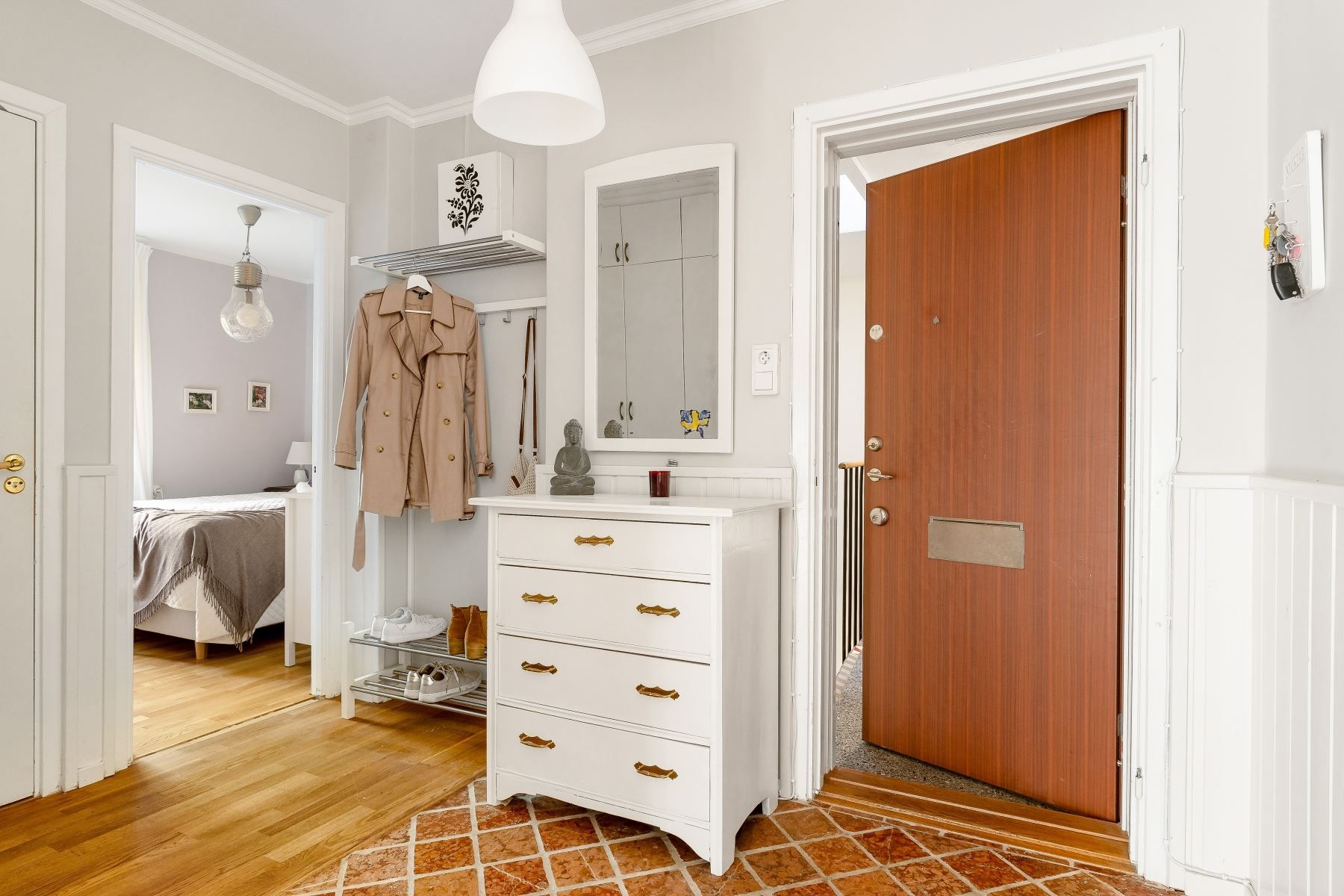 Det är lätt att förstå att folk väntar på att en lägenhet just här på Smedvägen jämna nummer ska bli till salu. Längan är nämligen belägen längst ner i området på återvändsgata med en strålande utsikt över Mälarens glittrande vatten och solnedgångens alla färger. Bostaden är genomgående och har baksidan mot lugn grönska. Tack vare inglasningen av balkongen fungerar den som ett extrarum från de tidiga vårsolstrålarna som skänker en behaglig temperatur, till långt in på hösten och tidig vår. På sommardagarna bjuder du enkelt över vännerna på grillafton, det finns gott om plats på föreningens innergård att grilla, eller om ni hellre går ner och sätter er vid klipporna vid vattnet som bara ligger några minuter bort. Till strandpromenaden är det endast ca 200m, där finns klippor där du gärna kan ta kvällsdoppet. Invändigt bjuder lägenheten på en rymlig hall med förvaring, två sovrum av bra storlek, kök med matplats, vardagsrum och badrum. Givetvis har du en vacker utsikt över Mälarens glittrande vatten även inifrån vardagsrummet. De generösa fönsterna ramar in naturen och Mälarutsikten tack vare bostadens fria läge.