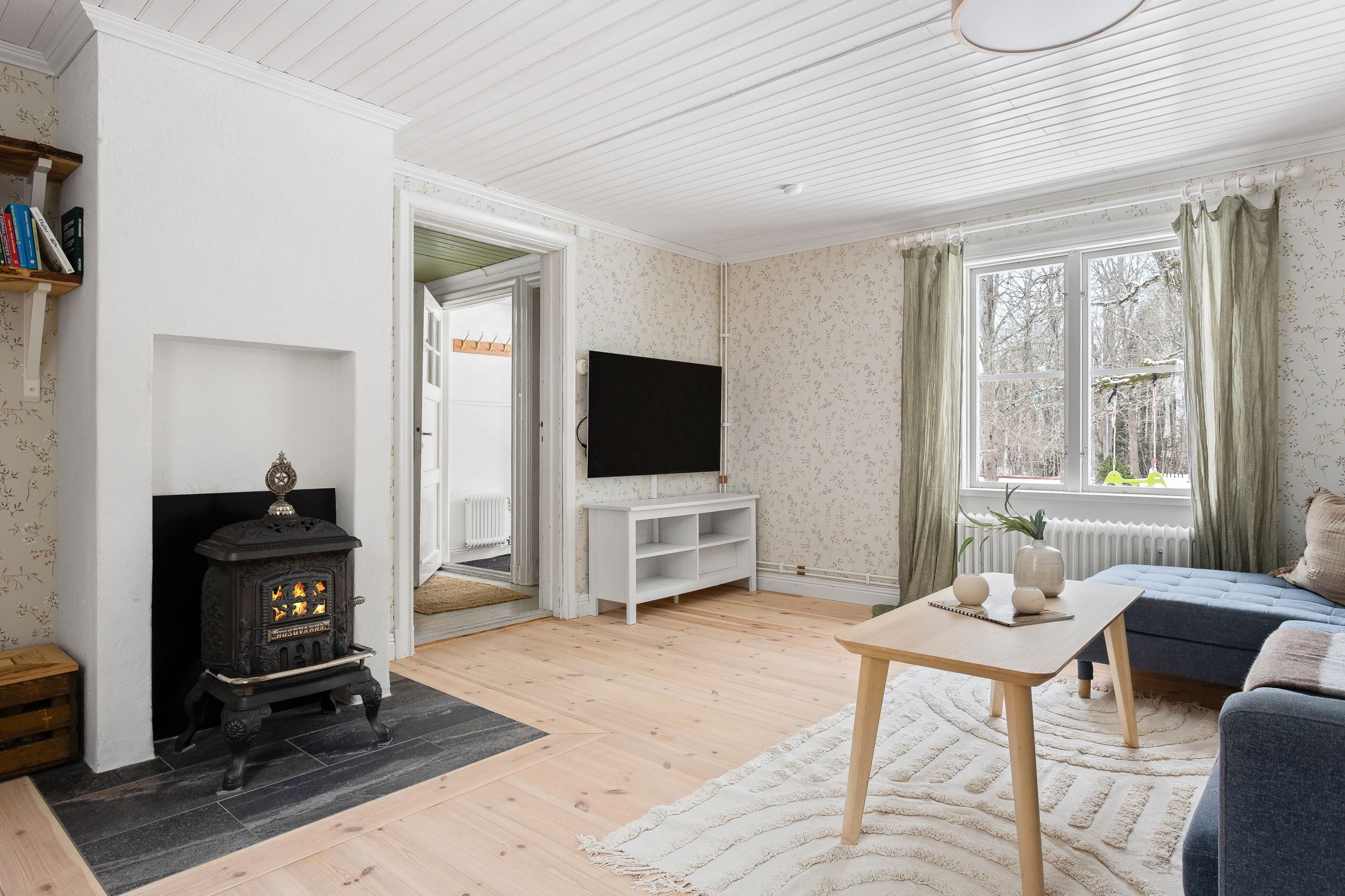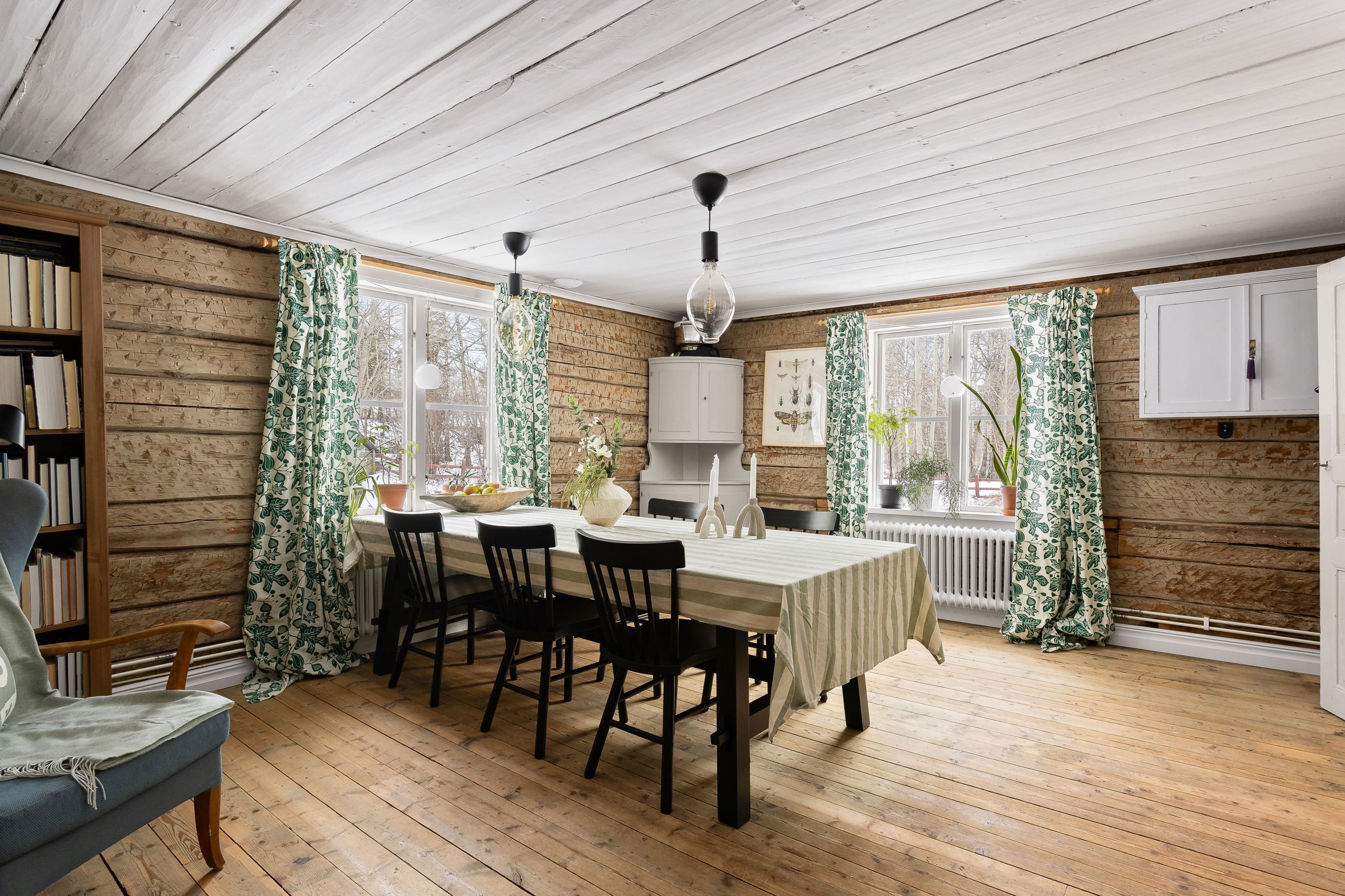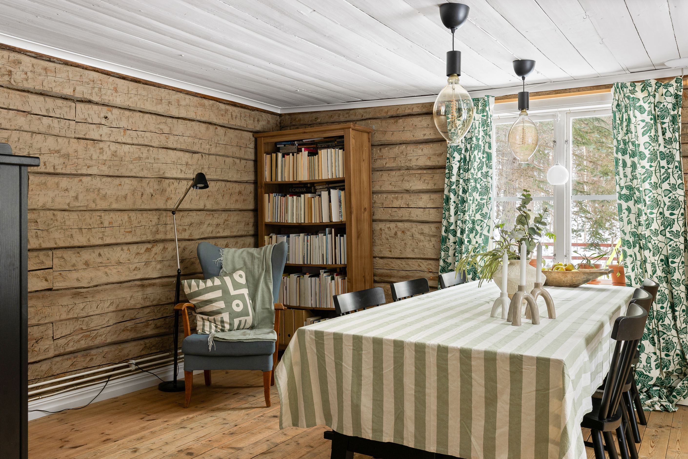 Strömsdal har sin historia långt tillbaka till 1800-talet och är vackert beläget i naturnära omgivning med endast en grusad körväg den sista biten fram till huset. Ändå är det bara 100 meter till närmaste busshållsplats, eller sju minuters cykeltur till pendeln. Grusvägen är en bit av den medeltida Enköpingsvägen och tillsammans med skogsdungen den går igenom innan man når fram till huset skapar det en rofylld miljö och en oas som sällan hittas endast 25 min från Sthlm C! Här kan du på nära håll följa årstidernas skiftningar, göra egen äppelmust och förvara i jordkällaren, odla i trädgårdslandet och njuta av alla de frukter och bär som finns på tomten. Här finns bara lugnet och även den mest stressade storstadsmänniskan kan omöjligt inte koppla av här. Detta är en fantastisk plats. De såpade trägolven, linoljan och timmerväggarna vittnar om den historia som varit och det känns både respektfullt och fint att få bo i något som också var verklighet för dem som bodde här för 150 år sedan. Tack vare Q-märkningen så finns husets historia väl bevarad och det är unikt att få möjlighet att bo och leva i denna kulturhistoriska miljö. Inom cykelavstånd når du Kallhälls pendeltågsstation, Mälarens glittrande vatten för svalkande dopp eller marinan för dig som drömmer om en båt.