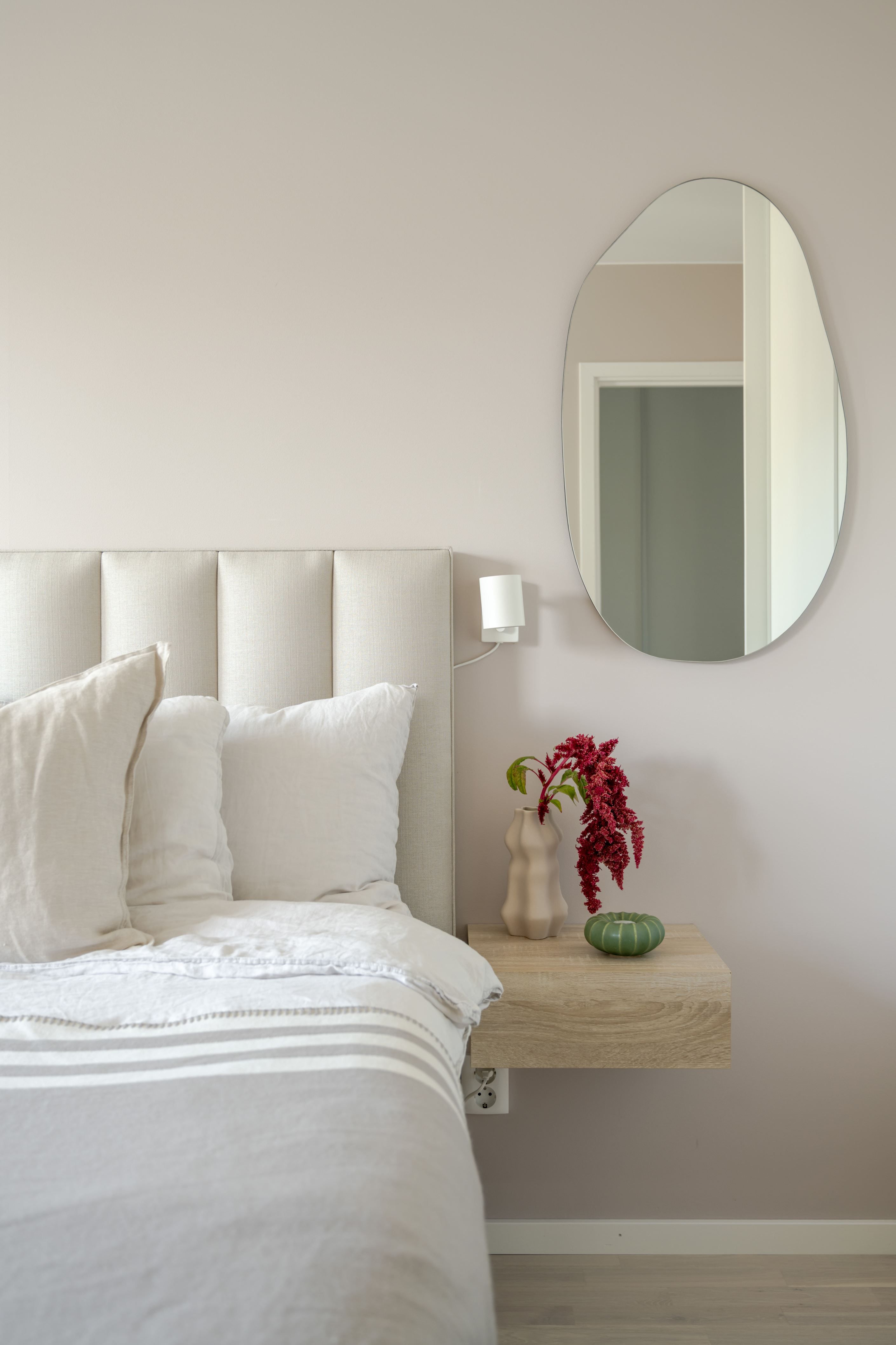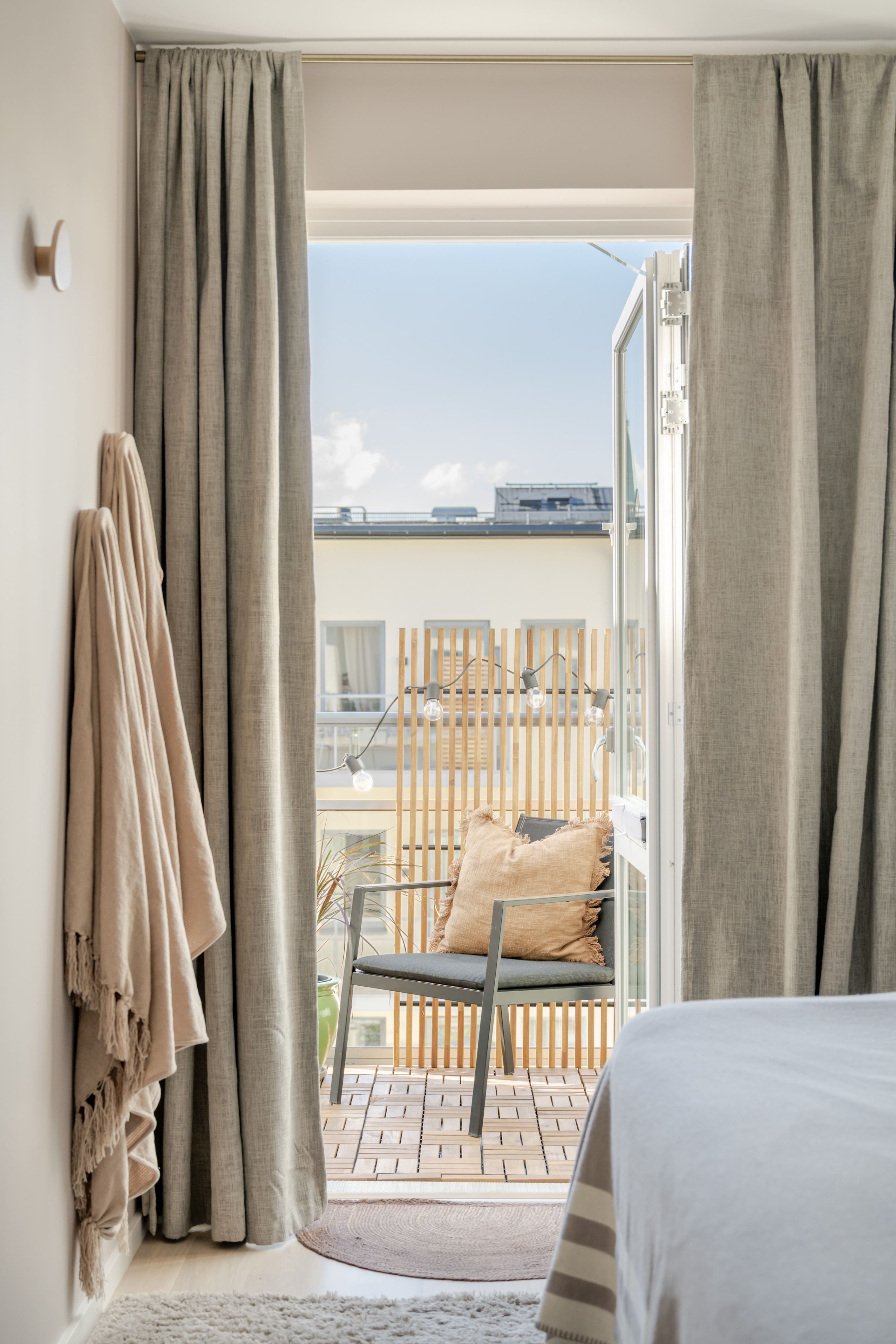 De två sovrummen vetter mot föreningens grönskande och välskötta innergård – en oas för dig som värdesätter lugn och ro. Här sover du ostört med fönstret eller balkongdörren öppen under varma sommarkvällar. Master bedroom är generöst tilltaget med en rymlig garderob bakom skjutdörrar längs ena väggen. Det mindre sovrummet rymmer säng, skrivbord och förvaringsmöbler, och i anslutning till sovrummen finns ytterligare en praktisk garderob med skjutdörrar.