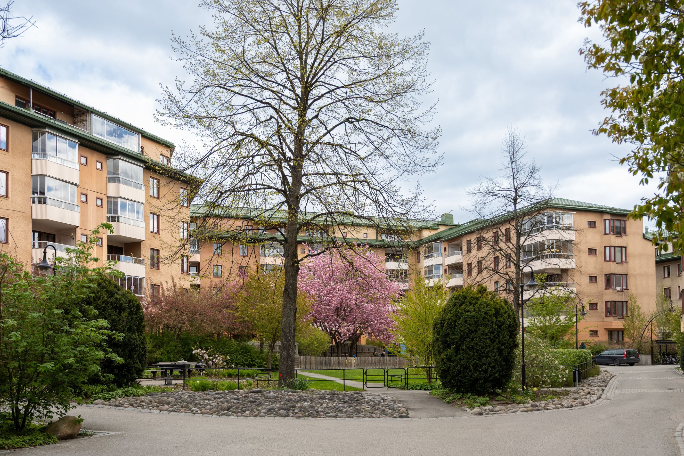 Den generösa balkongen i väst- och sydvästläge blir under sommarhalvåret en förlängning av vardagsrummet och bjuder på vacker utsikt över föreningens grönskande gård. Här finns gott om plats för både sittgrupp och odlingar. Här bor du i ett lugnt och familjevänligt område med bilfria gårdar, naturskön grönska och kajen utanför porten. Det är ett lugnt område med ett av innerstadens lägsta decibelvärden och väldigt ren luft.