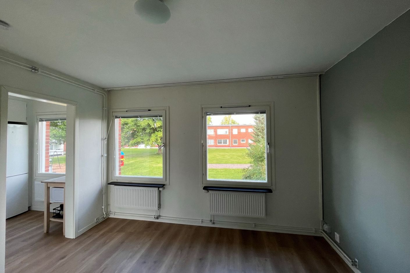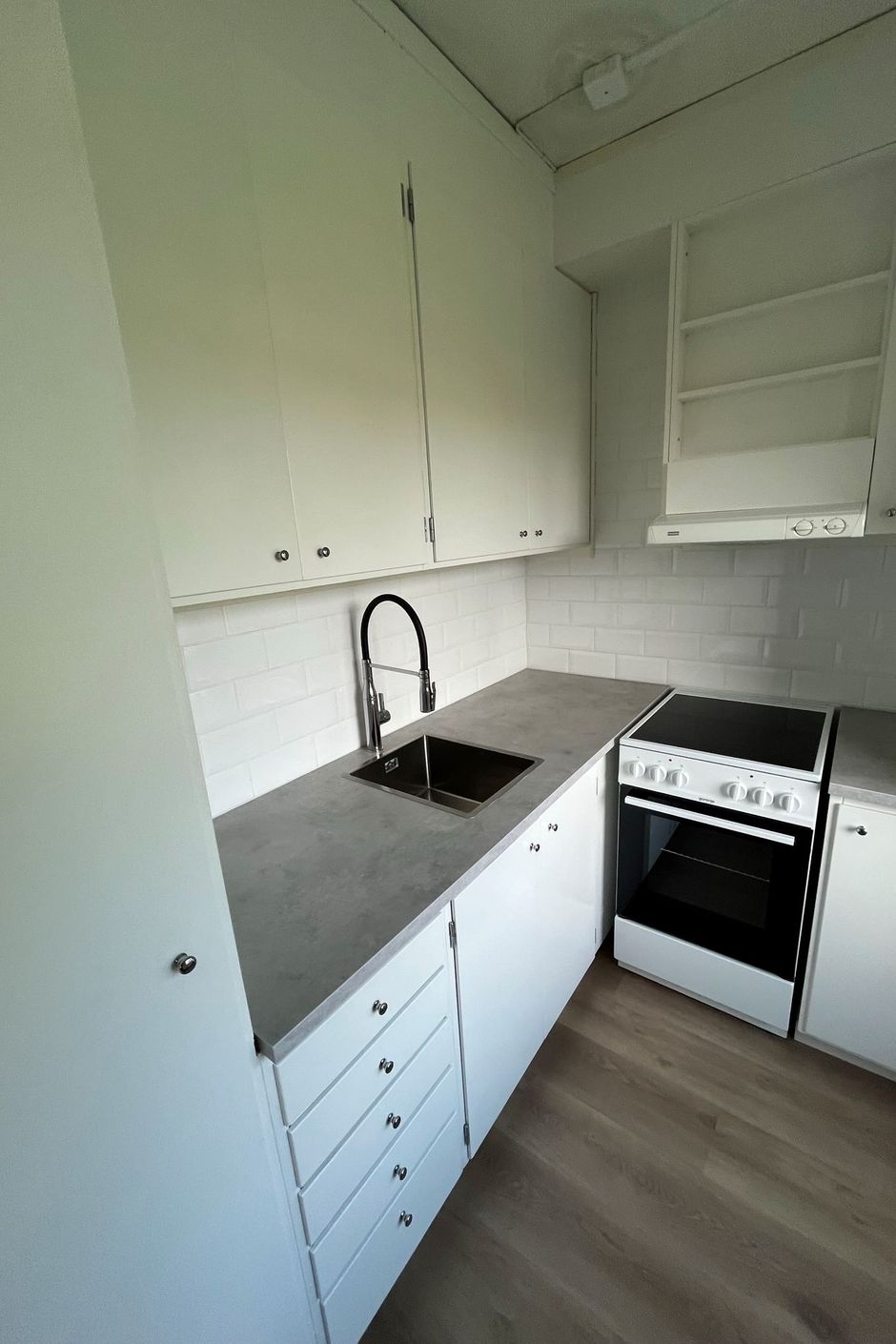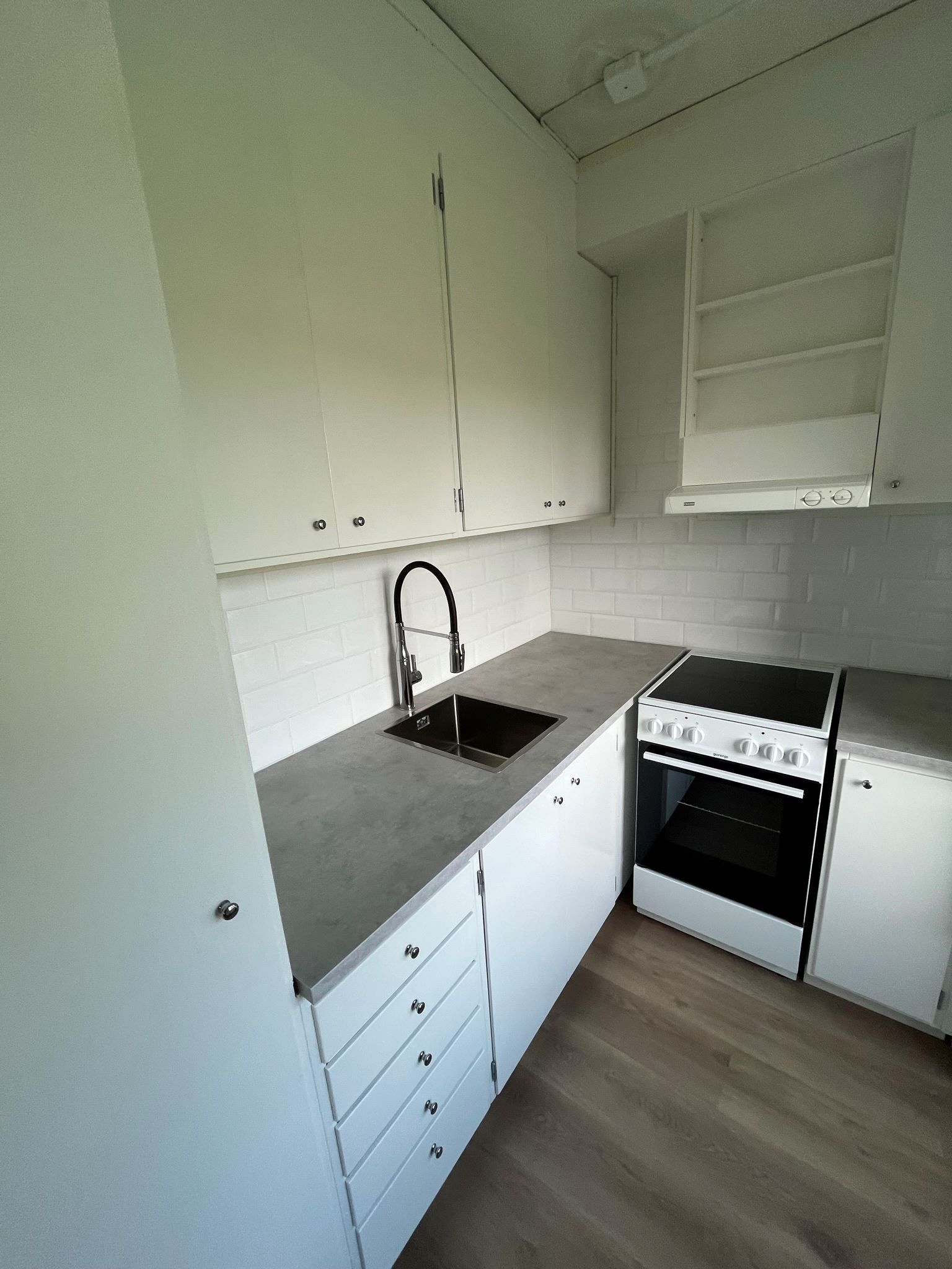 Lägenheten bjuder på en smart planerad yta där varje kvadratmeter tagits tillvara. Det ljusa allrummet har plats för både soffa, säng och matplats – här finns gott om ljusinsläpp tack vare de stora fönstren och utsikten mot grönskande omgivningar. Köket är funktionellt med bra arbetsytor och förvaring, perfekt för såväl vardagsmatlagning som kvällsfika. Badrummet är fräscht och lätt att hålla i ordning, och du har dessutom tillgång till både förråd och gemensamma utrymmen i föreningen.