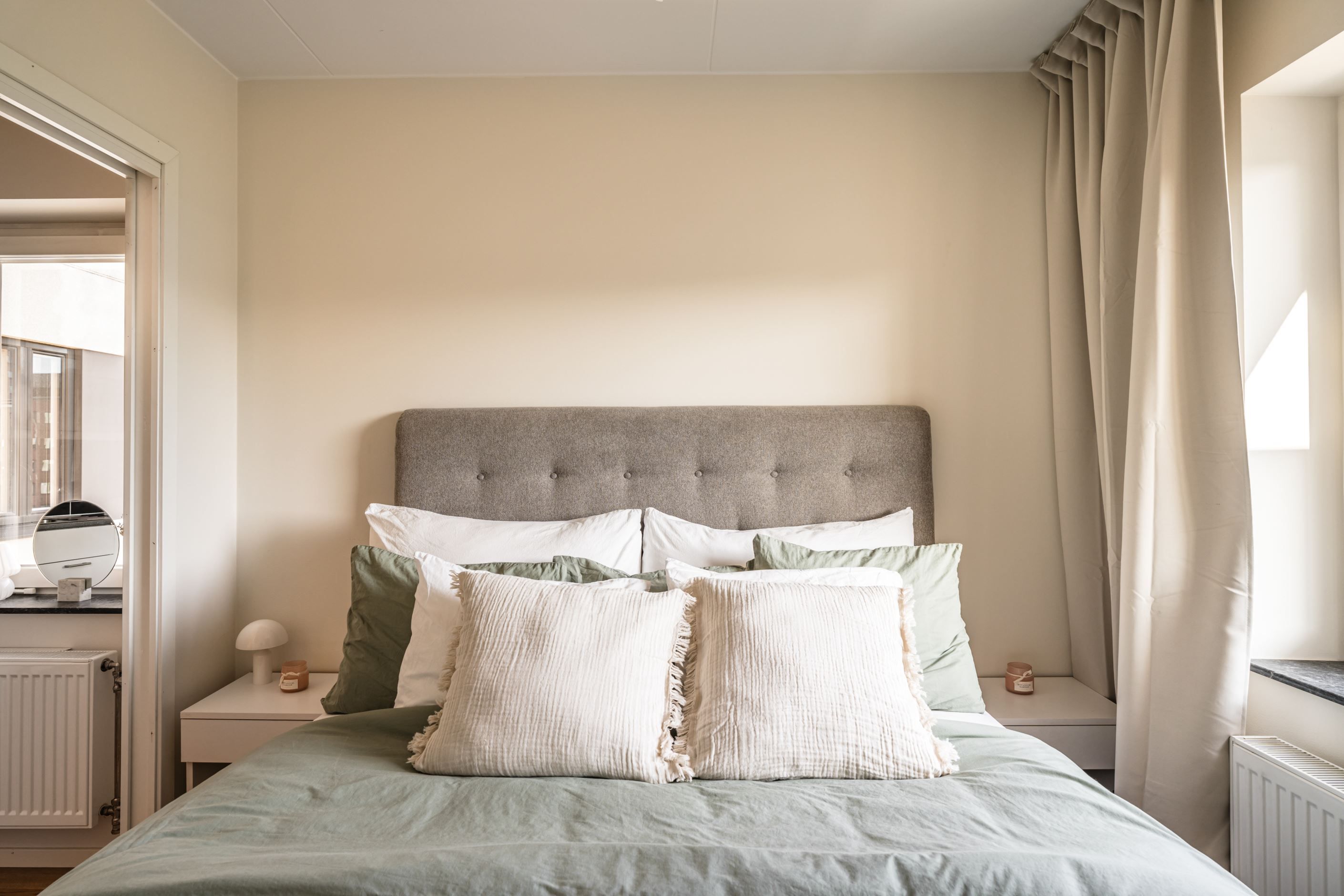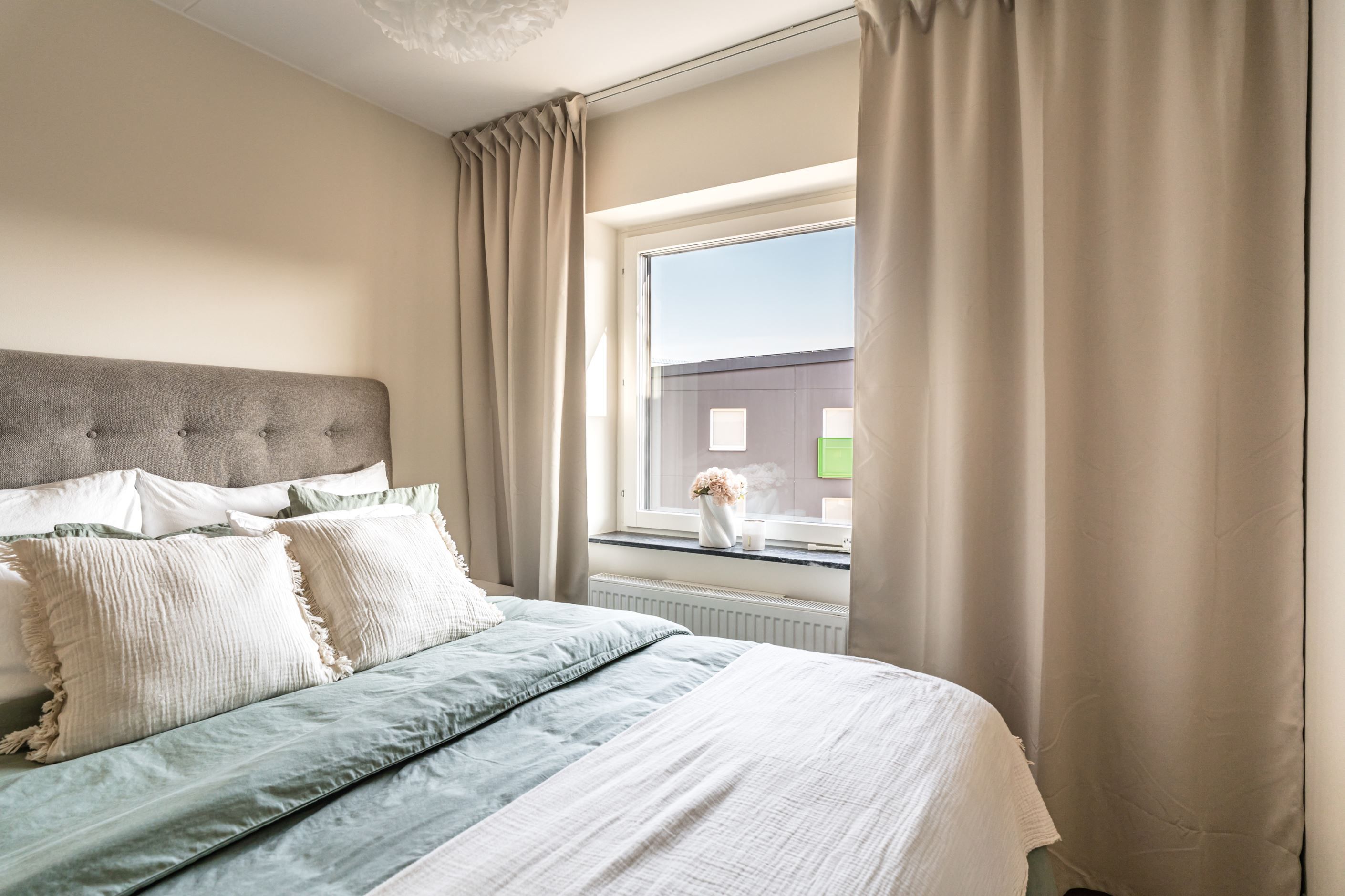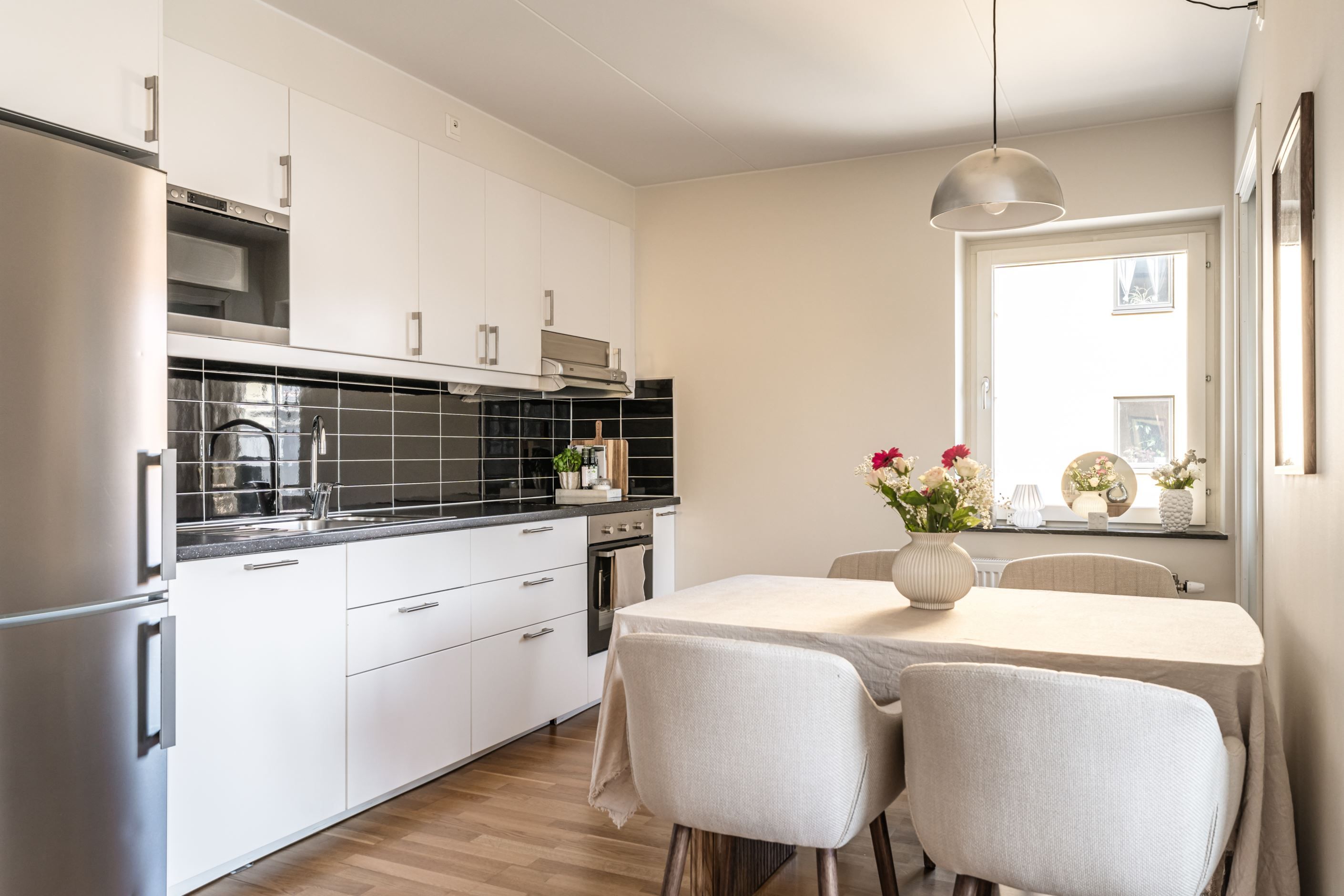 En smart planerad och ljus 2:a med en unik planlösning som kombinerar funktion och trivsel på bästa sätt. Här har man på ett genomtänkt sätt satt upp en vägg mellan vardagsrum och sovrum för att skapa en mer avskild och harmonisk sovdel – perfekt för den som vill ha lite extra lugn och ro.