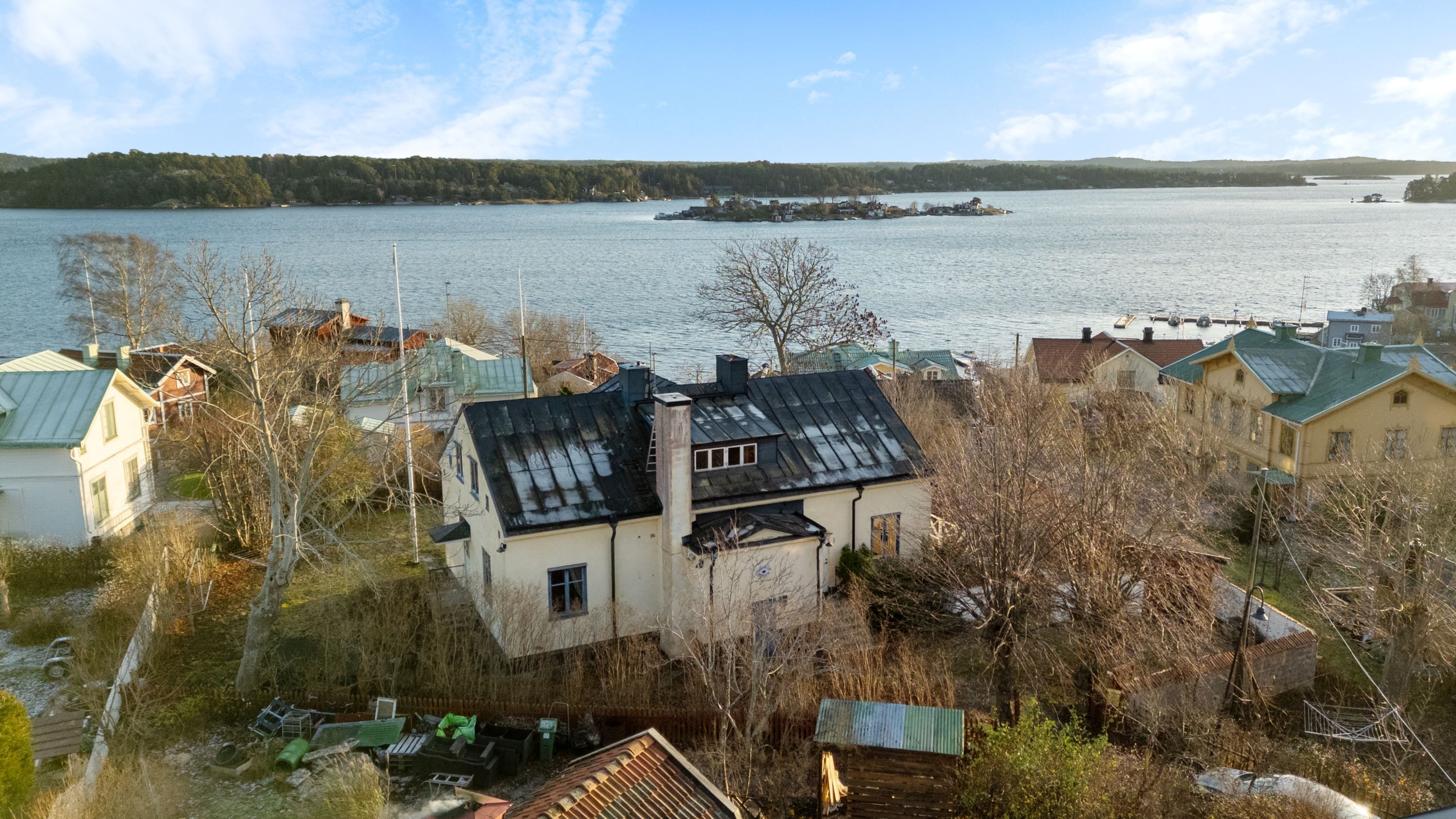 Trädgården är lummig, levande och generös och erbjuder plats för lek, odling, avkoppling och sommarkvällar i gemenskap. Skärgårdens lugn är ständigt närvarande, och från delar av huset öppnar sig en vacker utsikt över både skärgårdslandskapet och den glittrande Jungfrufjärden. Ljuset och havets närvaro följer huset genom hela dagen.