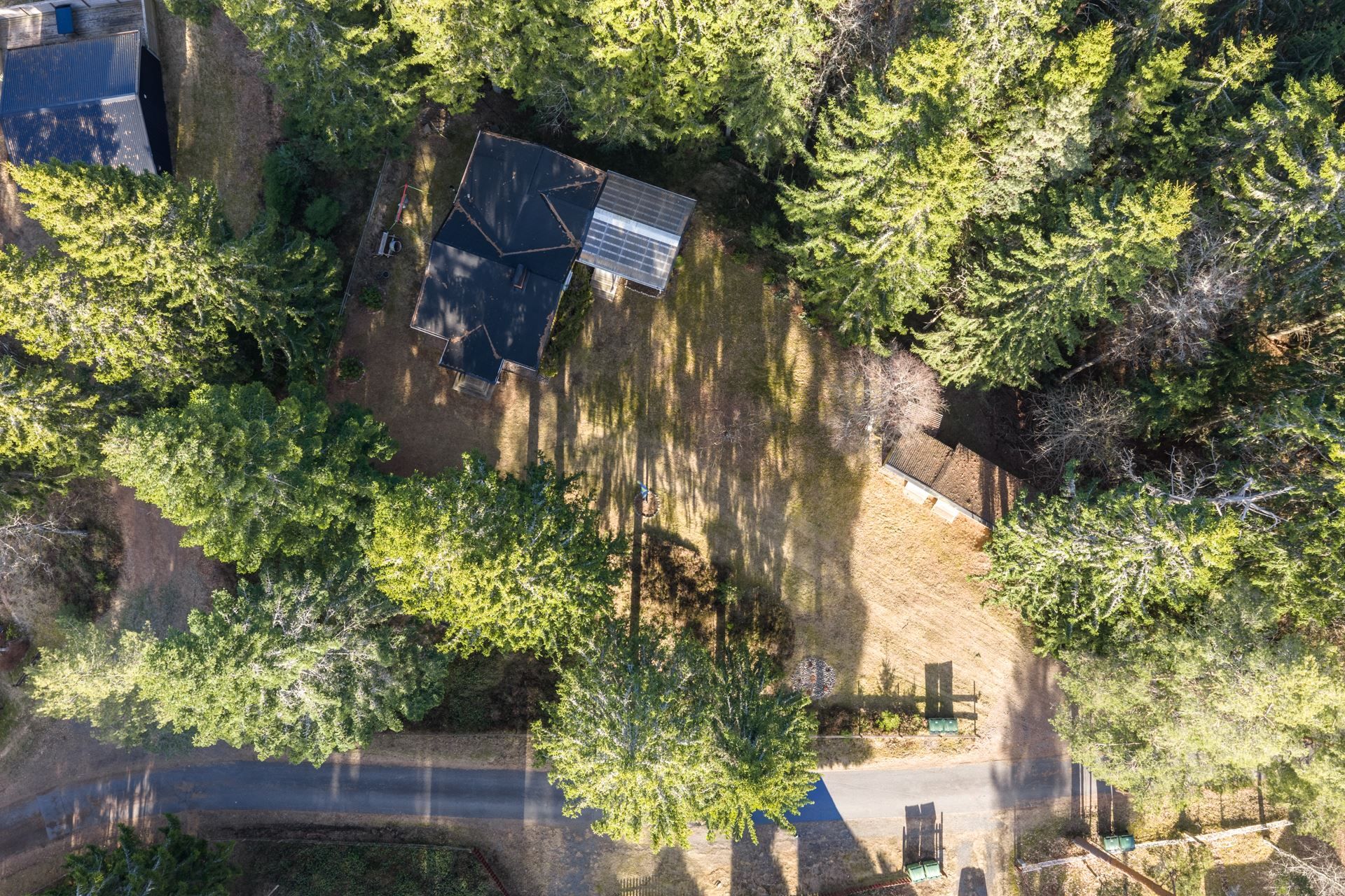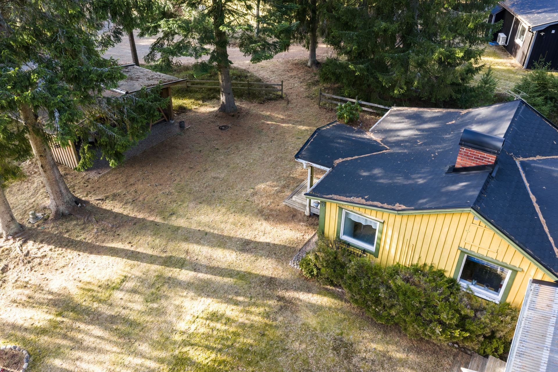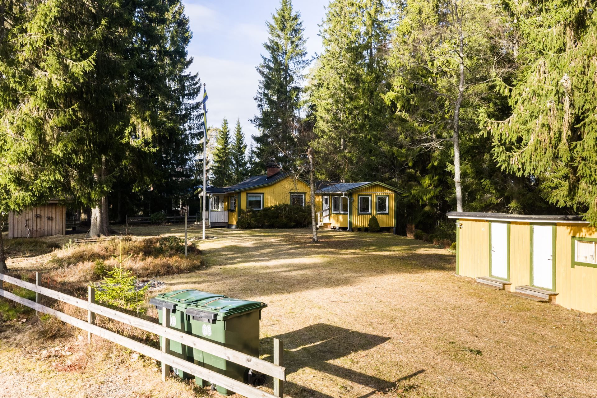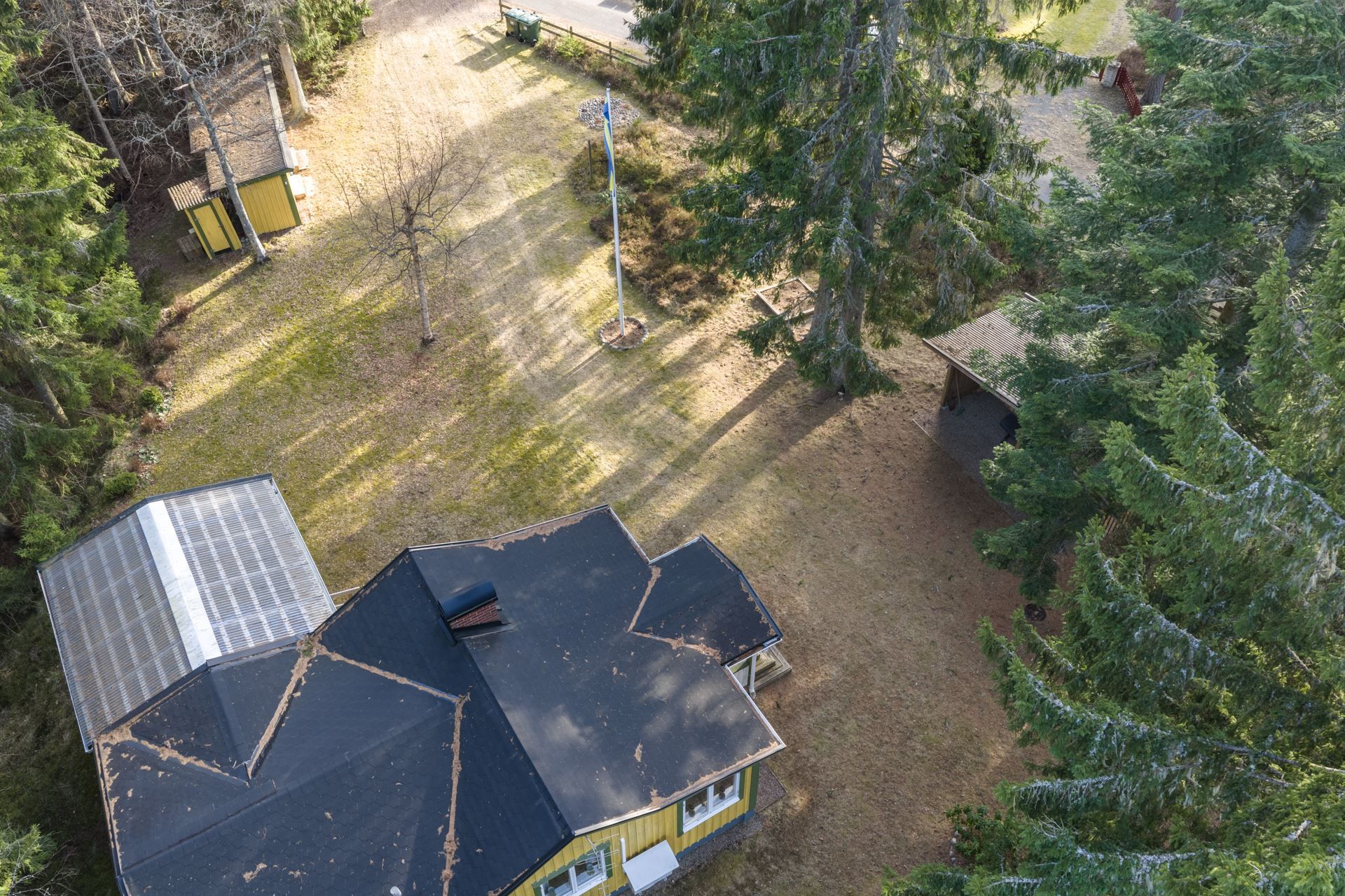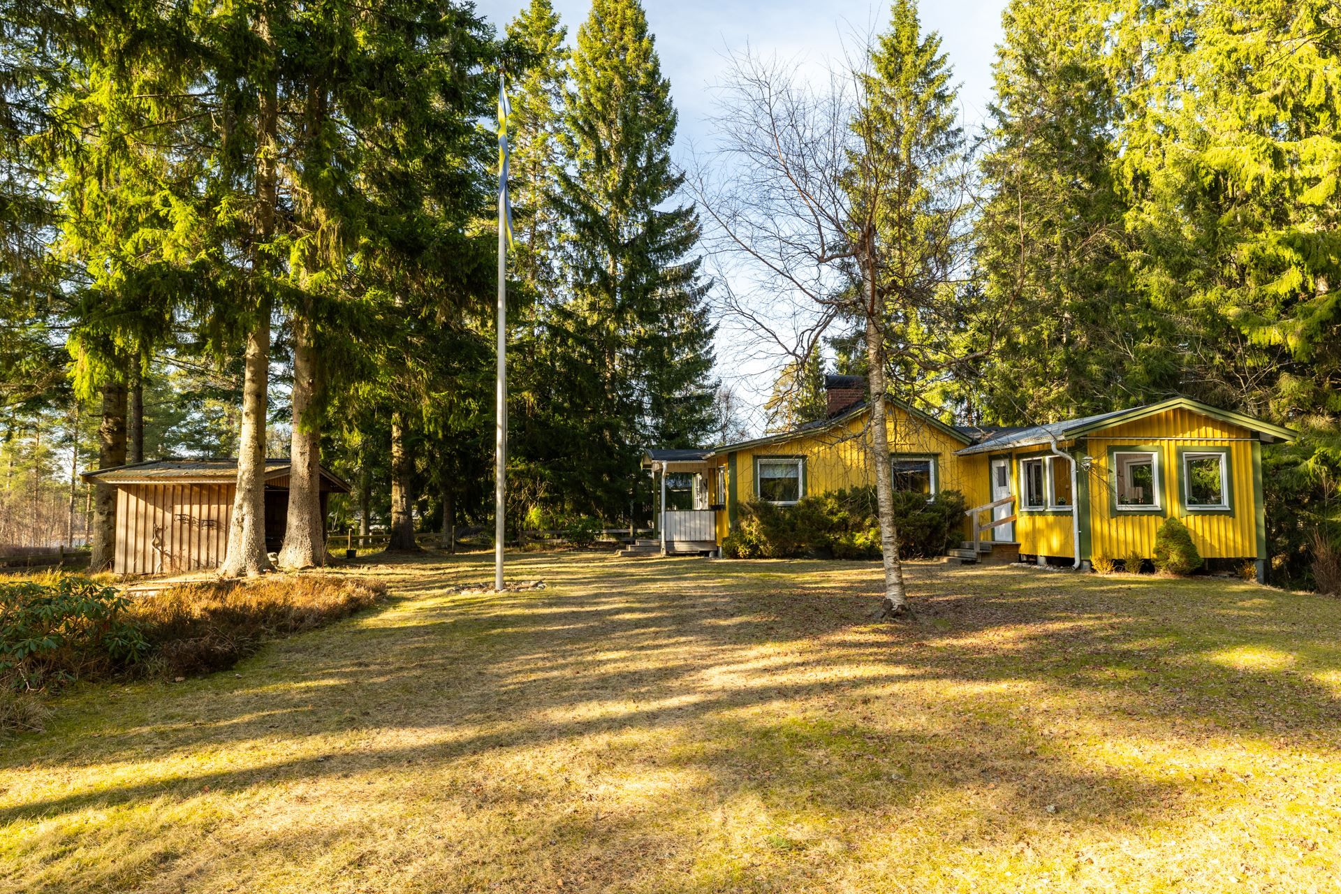 Tomten erbjuder gott om utrymme för både avkoppling och aktiviteter och här finns även en förrådsbyggnad samt plats för bilar på tomten.