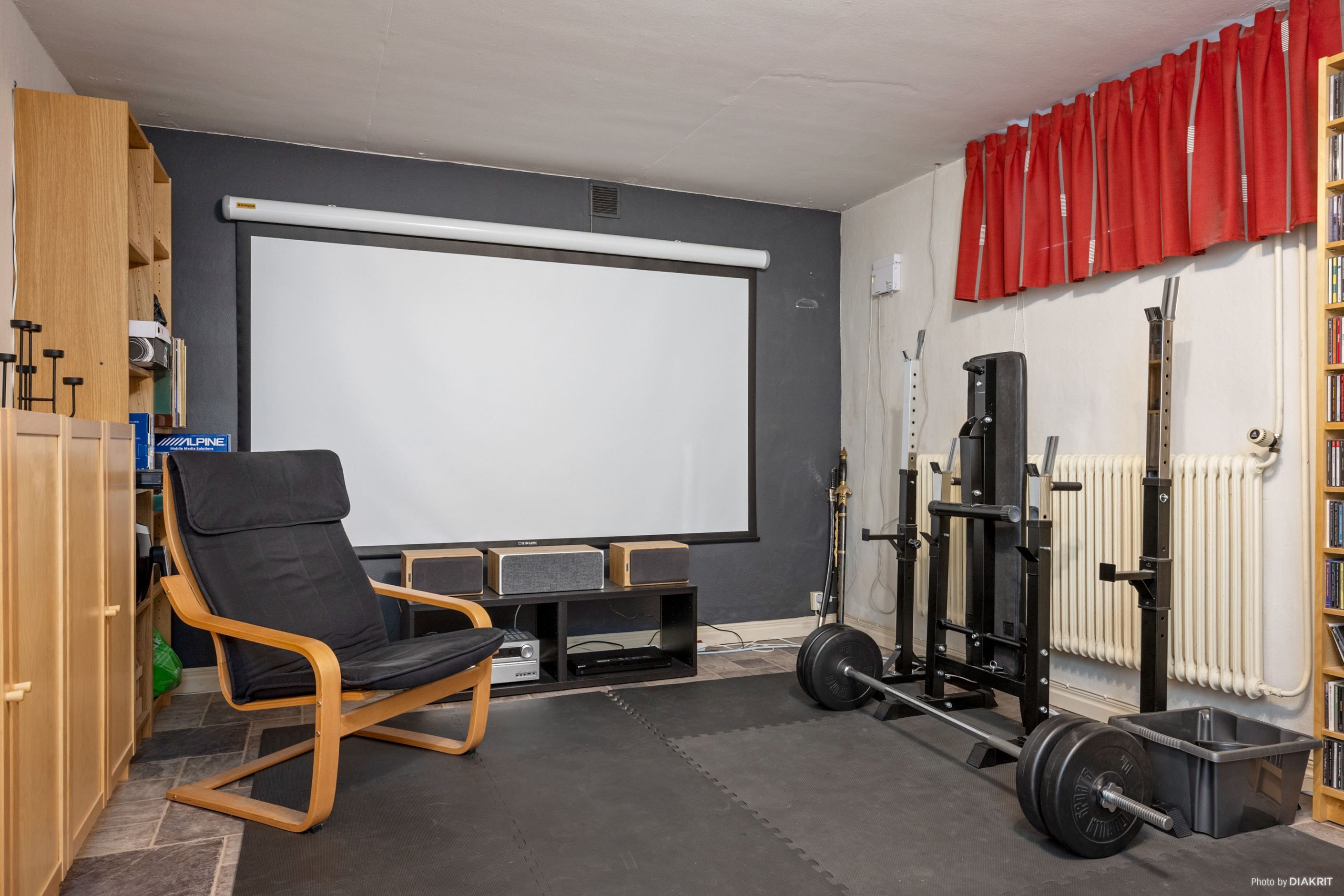 Här finns 4 rum varav 2 sovrum men om så önskas så kan man få till 3 sovrum. Källaren erbjuder både biorum och relaxavdelning med dusch, badkar och bastu.