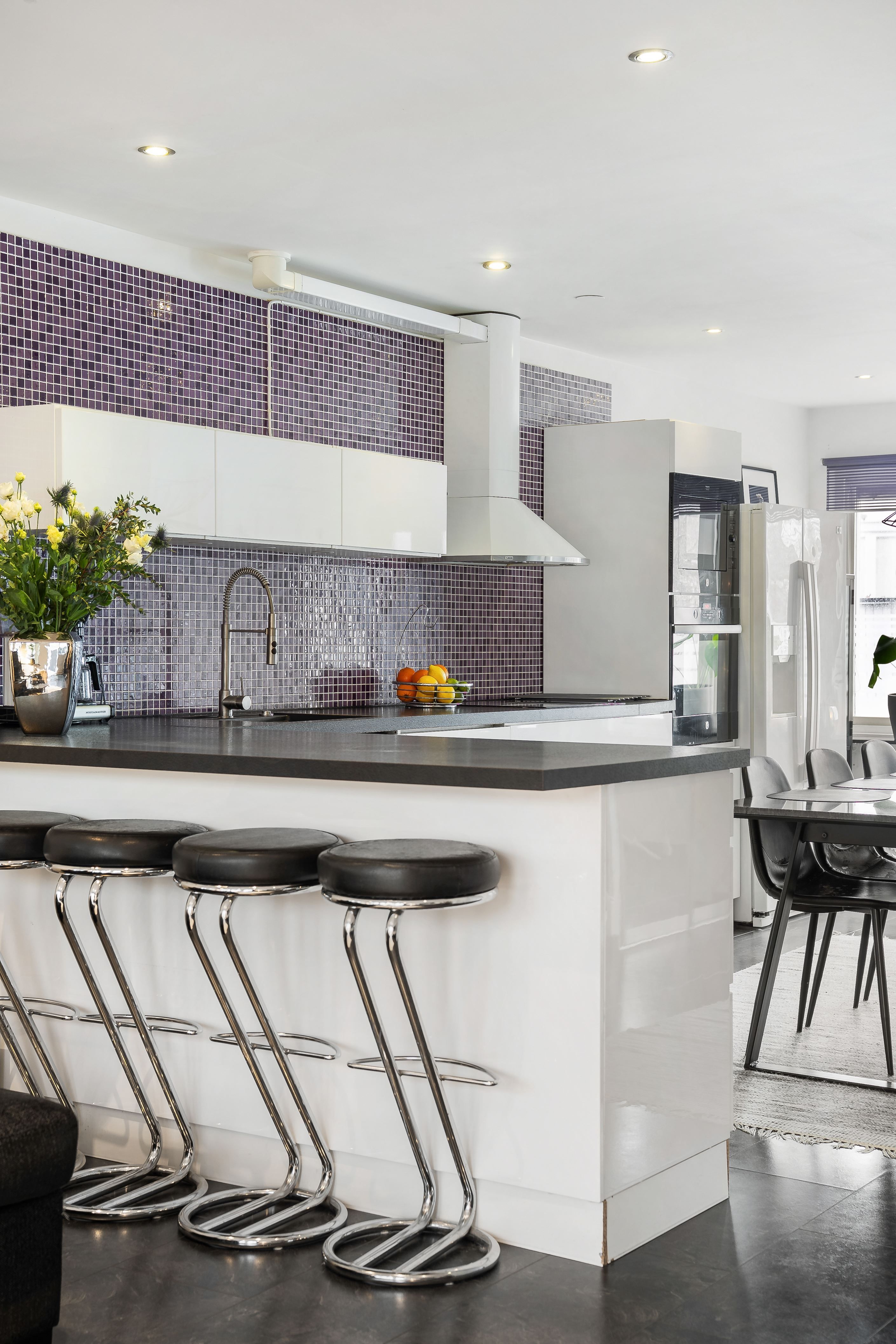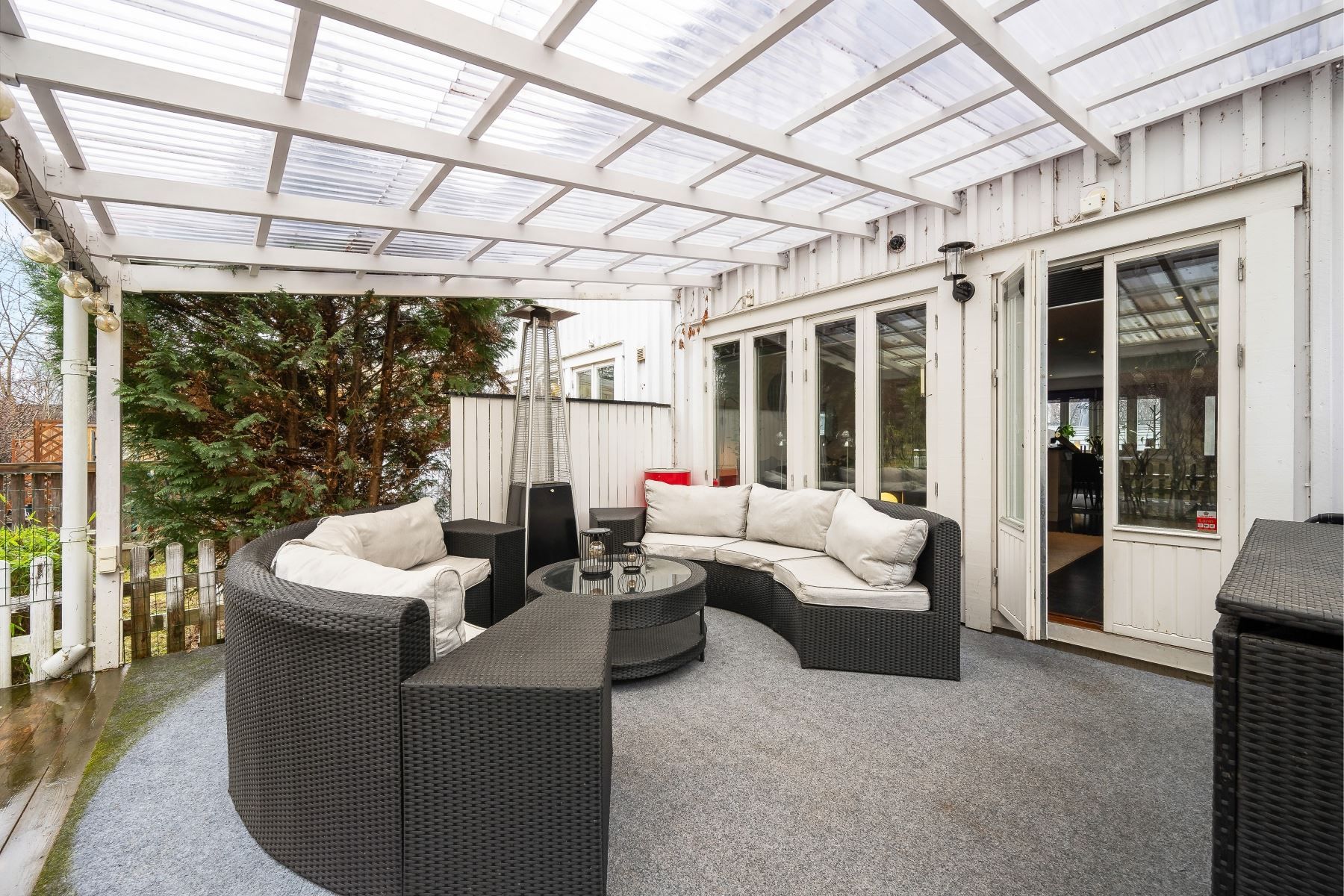Bostaden är fördelad på 4 rum och kök med genomtänkta ytor och generöst ljusinsläpp. Uteplatserna på fram- och baksidan skapar fina möjligheter för både trivsamma sammankomster och avkoppling i ett soligt och insynsskyddat läge.