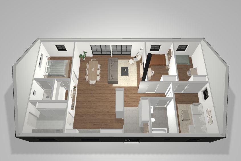 Husets design är ett genomarbetat förslag, men det finns möjlighet att i samråd med entreprenören anpassa detaljer efter dina önskemål. Golven pryds av vacker parkett och materialvalen är valda med omsorg för att uppnå både kvalitet och lång livslängd.