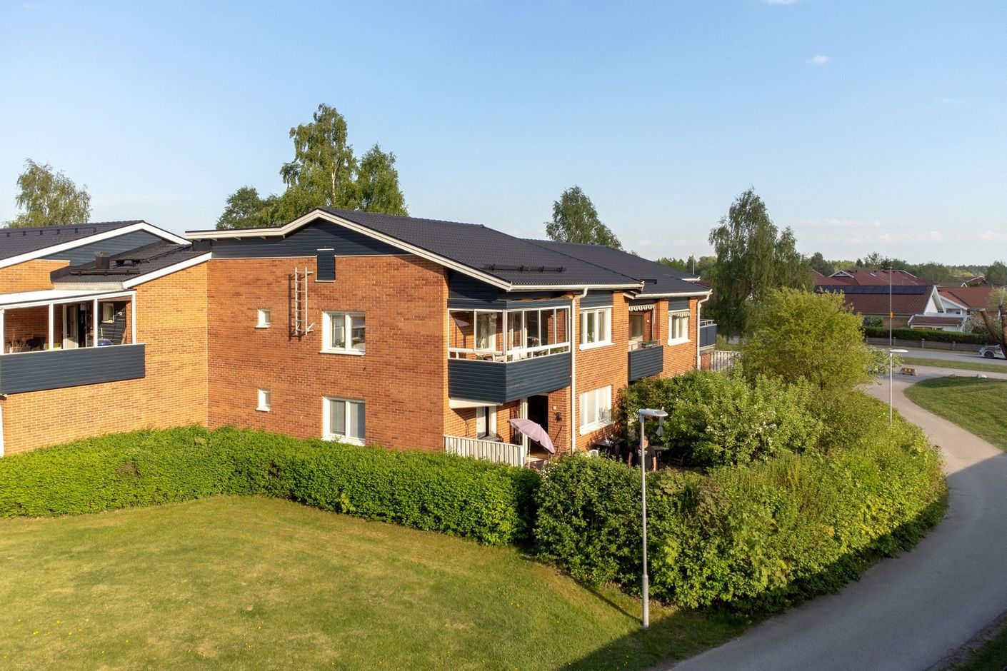 Egen entré, gavel och inglasad balkong