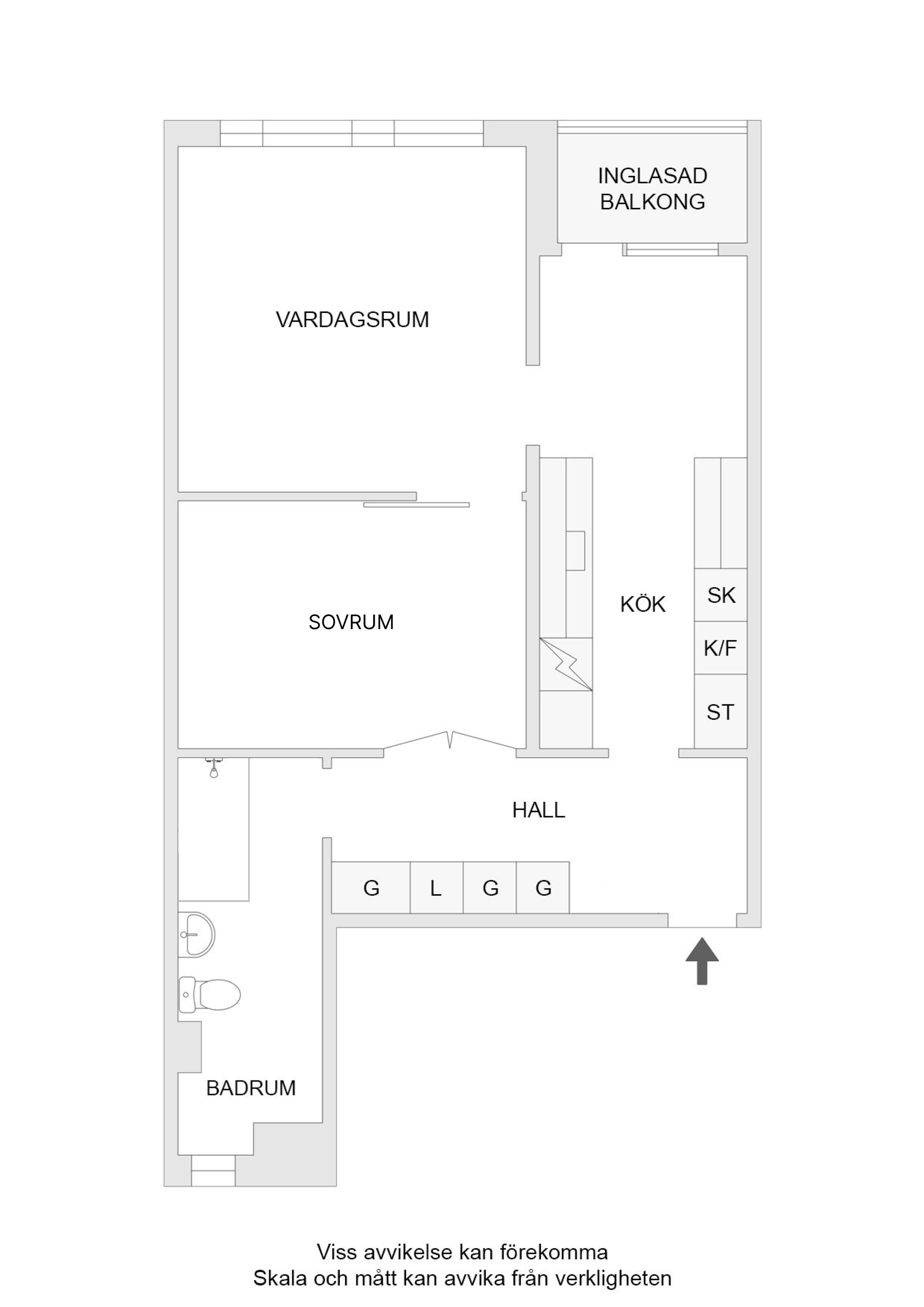 Vardagsrummet är smart avdelat av uppbyggd vägg och skapar en naturlig uppdelning mellan sovdel och social yta. Här finns plats för både säng, soffa och umgänge utan att kompromissa med känslan av rymd. Vidare finns ett stort badrum och i hallen finns bra förvaring som gör vardagen lättare att hålla ordning på.