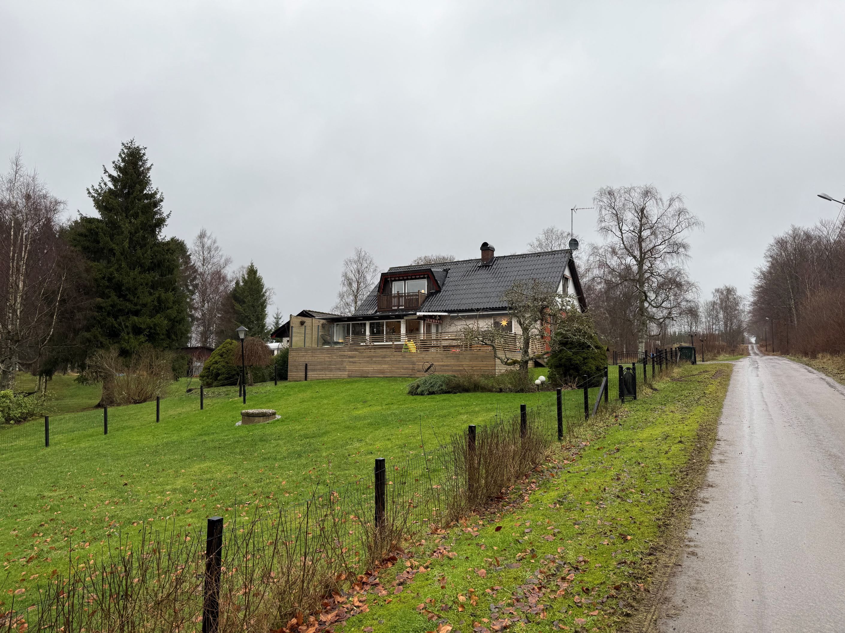 Från vardagsrummet nås ett generöst uterum (ej vinterbonat) som förlänger sommarsäsongen och skapar en självklar plats för umgänge. Utanför fortsätter hemmet att imponera med ett stort trädäck med nedsänkt utespa, perfekt för avkoppling under stjärnklara kvällar.