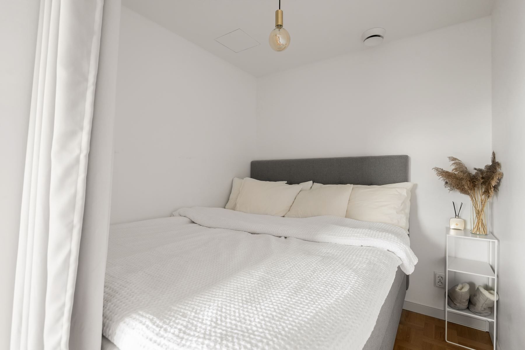 När det nya äntligen känns personligt! Planlösningen är maximerad och ingen kvadratmeter har här gått åt spillo. Genomgående fina materialval där äkta holländsk parkett möter hög takhöjd samt panoramafönster. Vardagsrum och kök i öppen social planlösning som rymmer matbord och soffgrupp invid tv-möblemang. Separat sovdel i anslutning. Fantastisk och inglasad balkong där du kan njuta av ett glas gott och en härligt grillad måltid, även plats för en större loungegrupp. Tack vare inglasningen av den rejäla balkongen, har du här ett extra rum året runt! Ingen lägenhet har i föreningen om den här storleken sålts med inglasning tidigare.