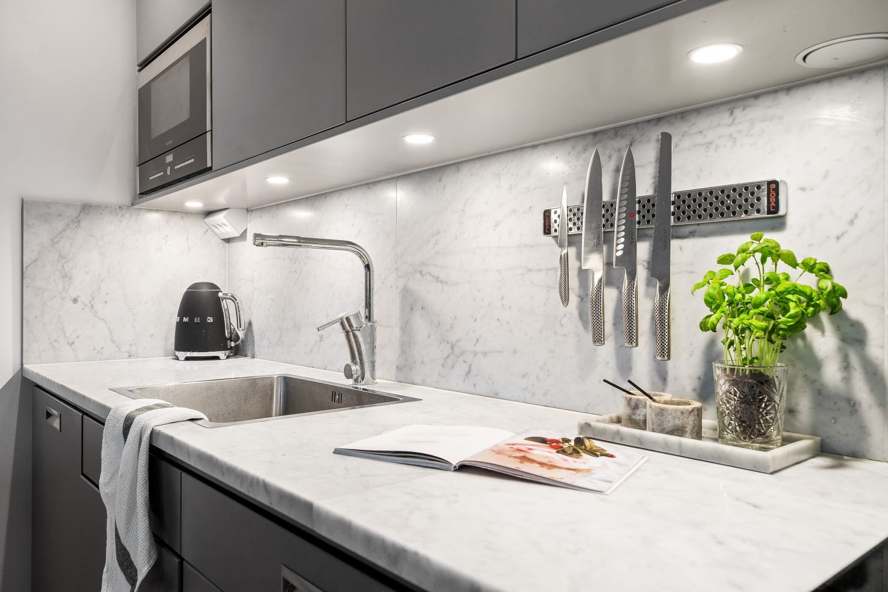 - Byggt 2014 av Wallenstam i hög kvalitet, designat av TV-profilerna Simon & Thomas.