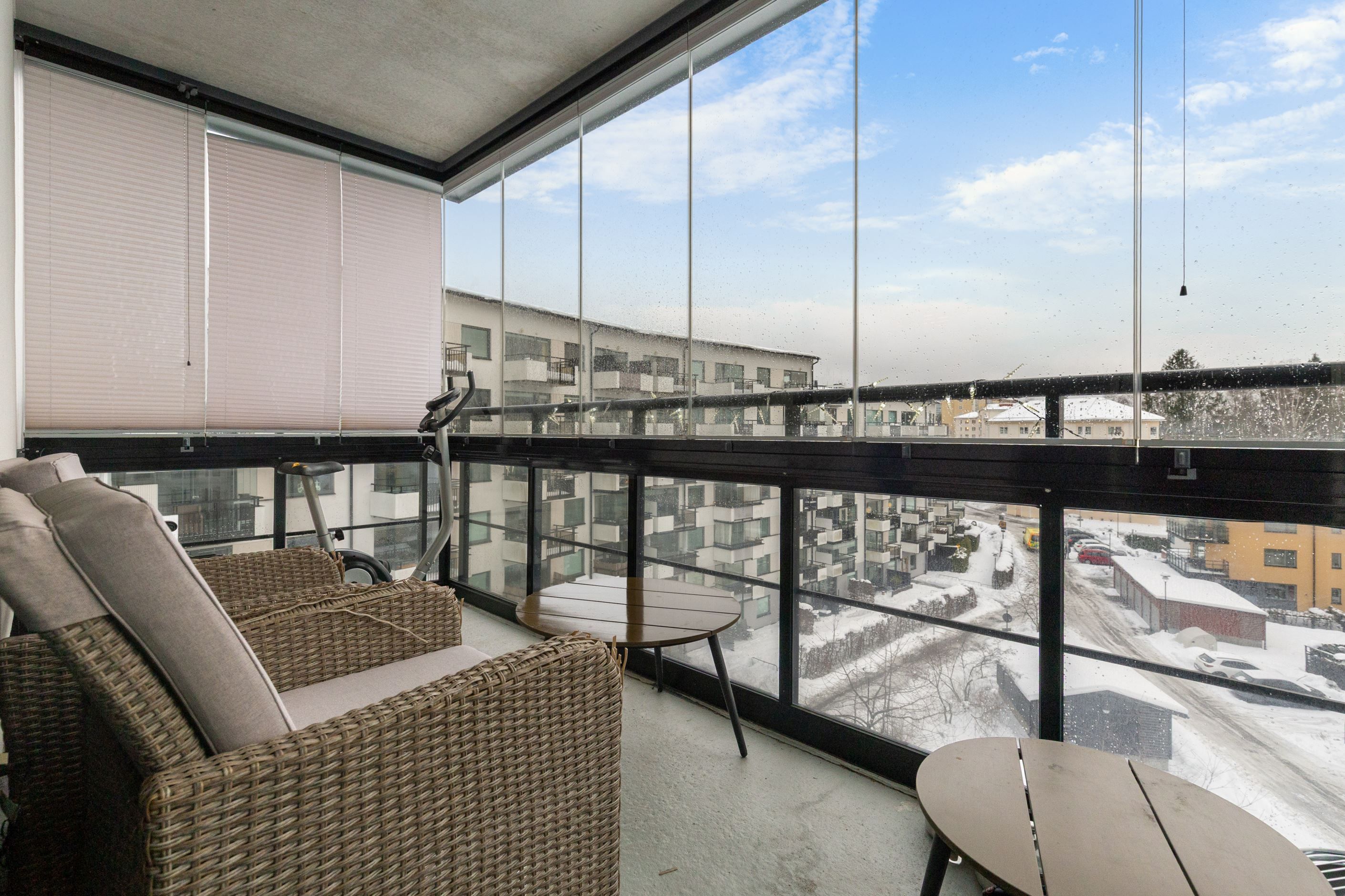 Det rymliga vardagsrummet leder ut till en inglasad balkong i bästa solläge, perfekt som ett extra rum större delen av året. Lägenheten är i gott skick med en smart planlösning, generösa sovrum och funktionellt kök med plats för matgrupp, två bad/duschrum.