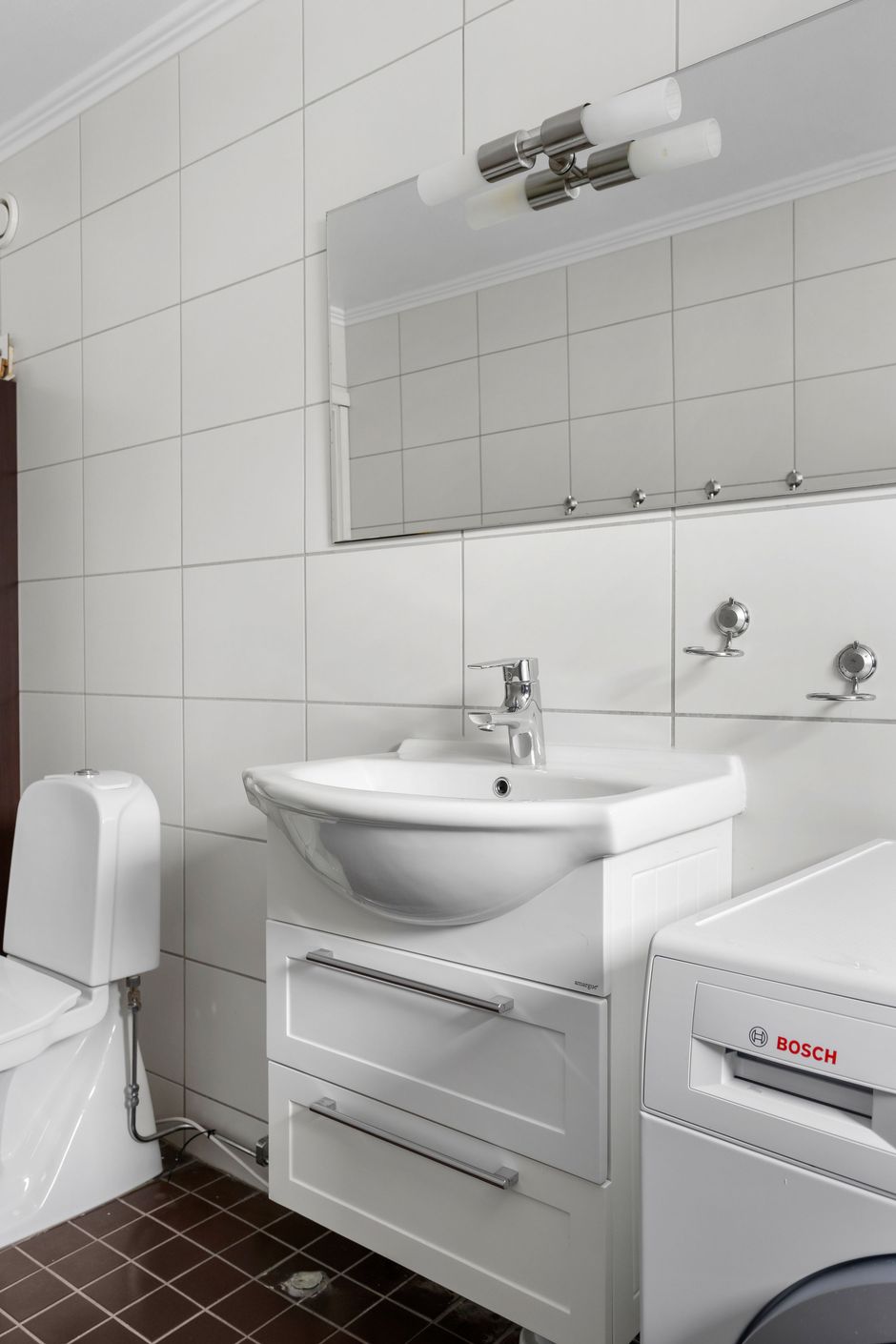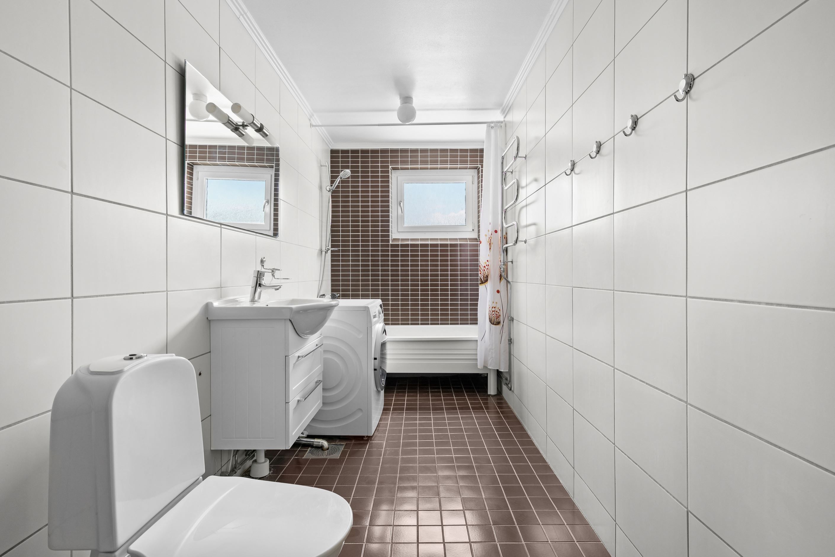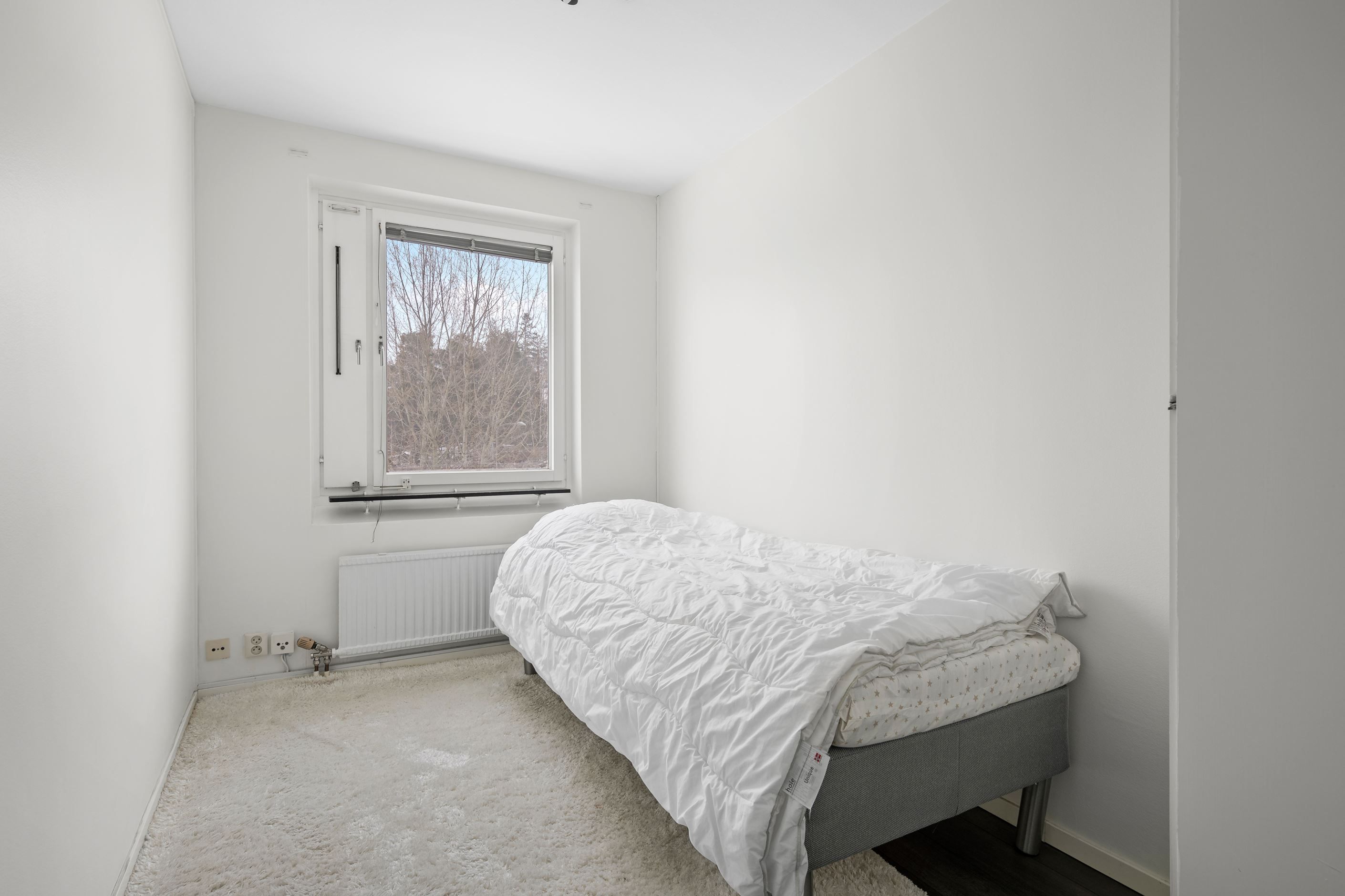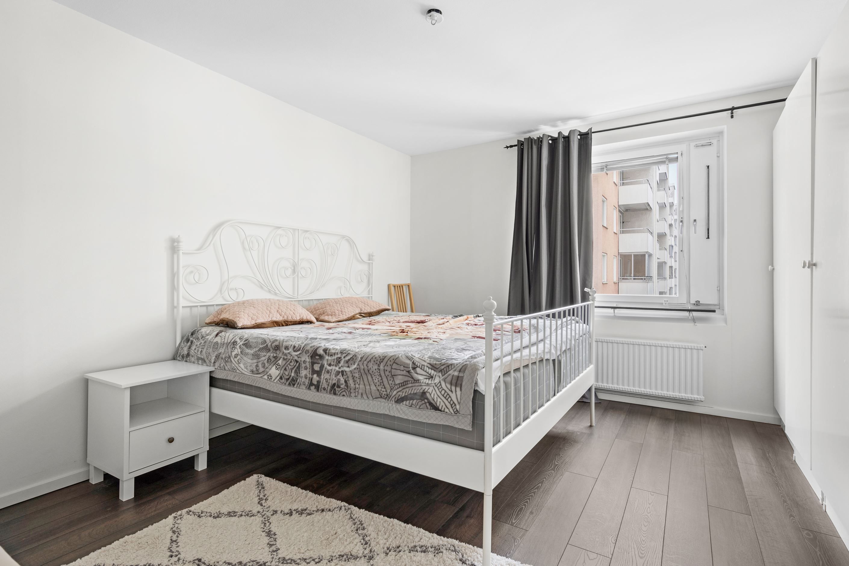 Bostaden erbjuder en välkomnande hall med gott om plats för avhägning. I anslutning till hallen ligger badrummet som är utrustat med dusch, tvättmaskin, toalett, handfat, kommod och vädringsfönster. Vidare finner vi ett stilrent och fräscht kök med gott om arbetsytor och förvaring där den maskinella utrustningen består av kyl/frys, integrerad ugn och micro, spis, fläkt och diskmaskin. Vardagsrummet erbjuder generösa ytor för både soffgrupp och matplats. De stora fönsterpartierna släpper in rikligt med ljus och skapar en luftig känsla. Stort sovrum med säng i de flesta storlekar. Här finns även plats för garderober och skrivbord om så önskas. Det mindre sovrummet är också rymligt och kan även användas som barnrum, gästrum eller kontor.