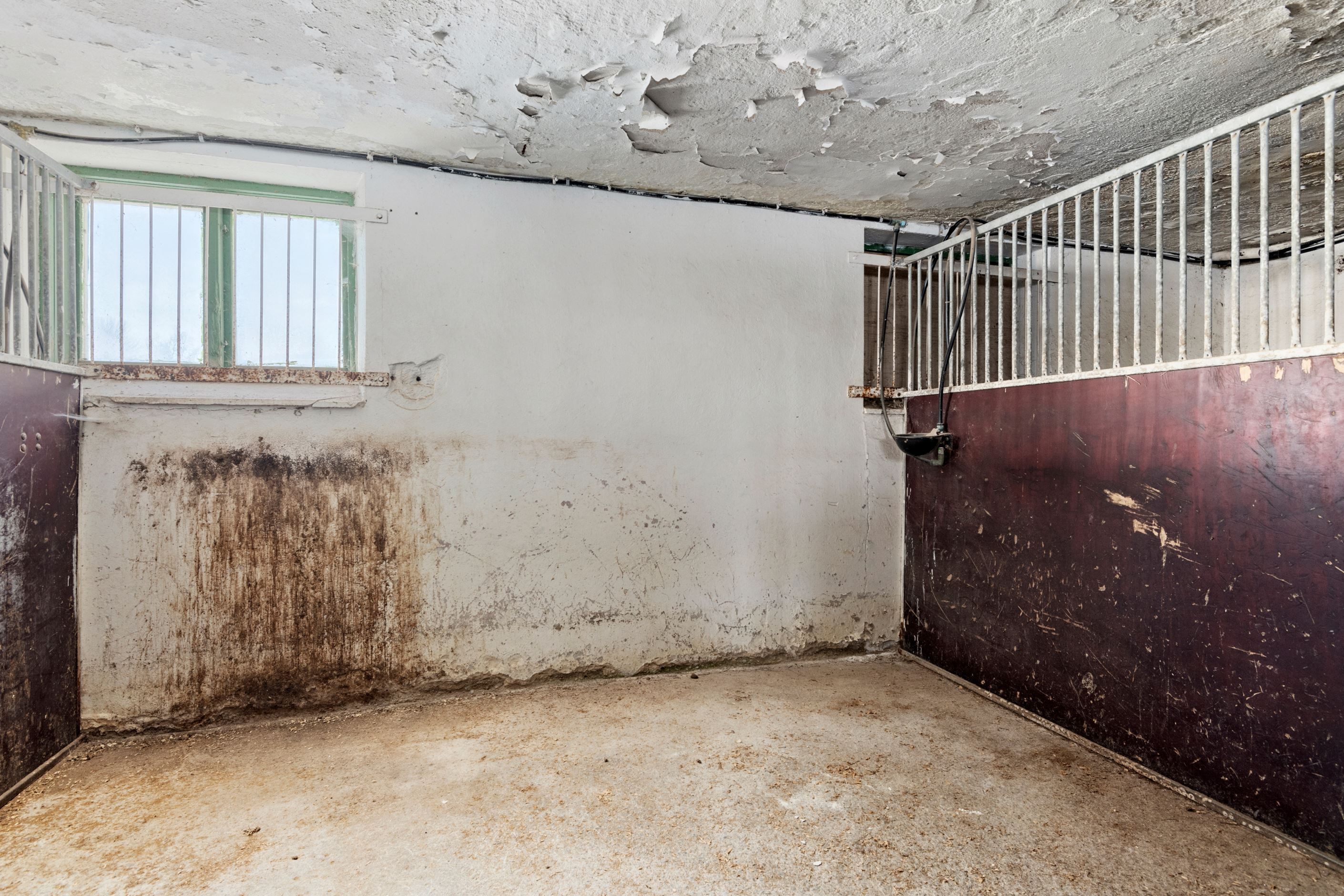 Här har det tidigare bland annat drivits ridskola och travstall. Det finns ca. 15 stycken hästboxar kvar samt det mesta av det som krävs för att ha hästar. Ladugården är i bra skick och har enorma ytor i flera våningar samt ett dubbelgarage.
